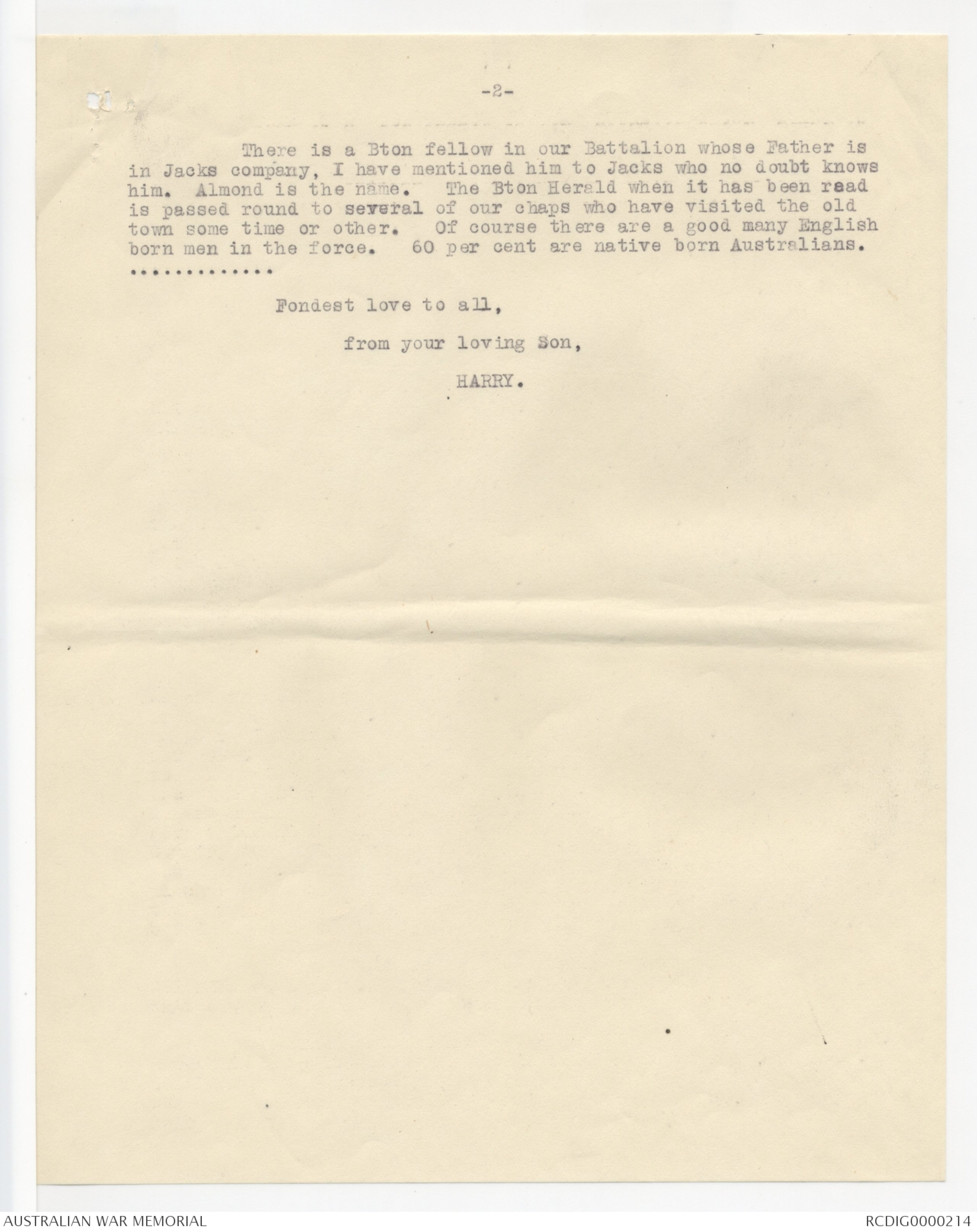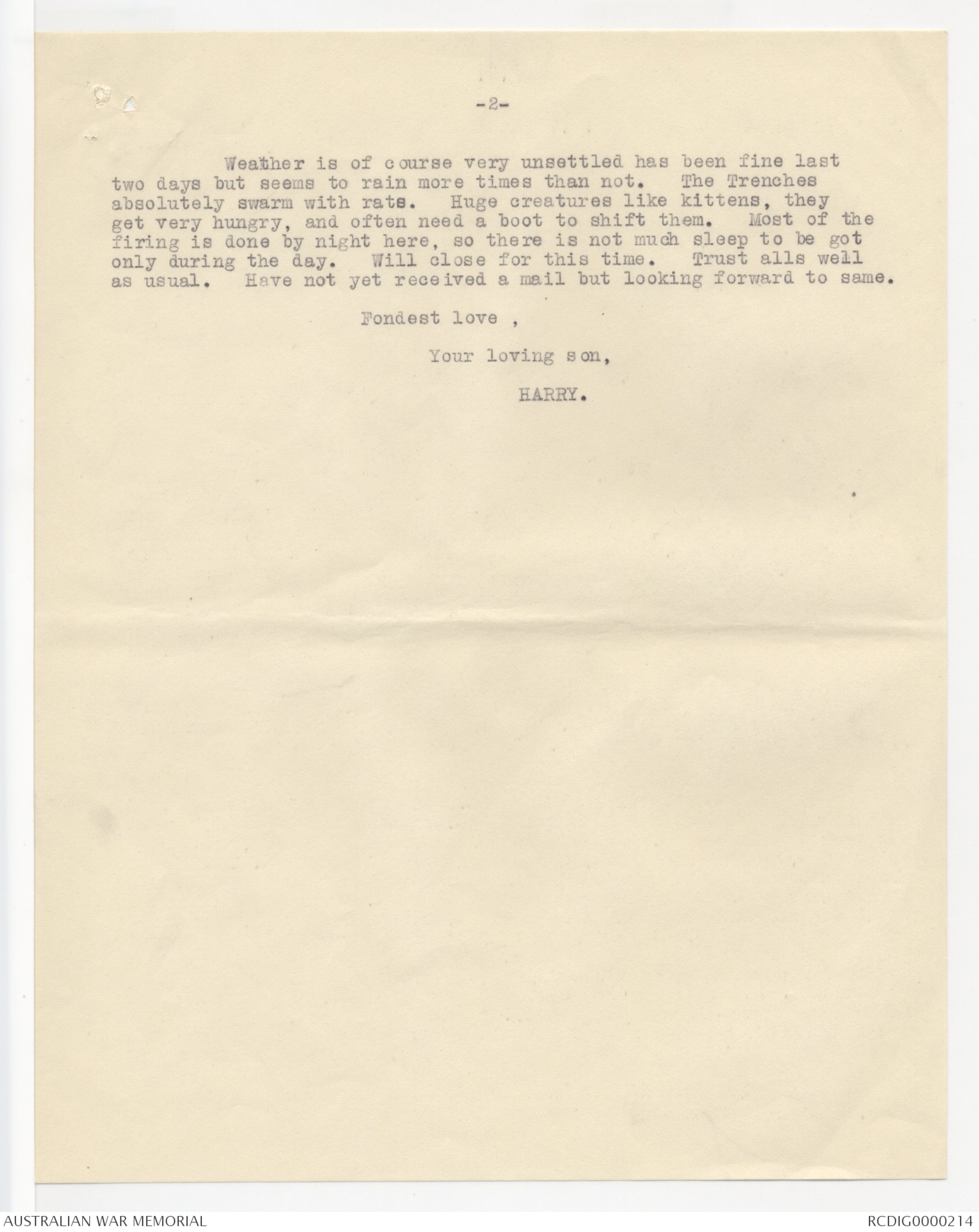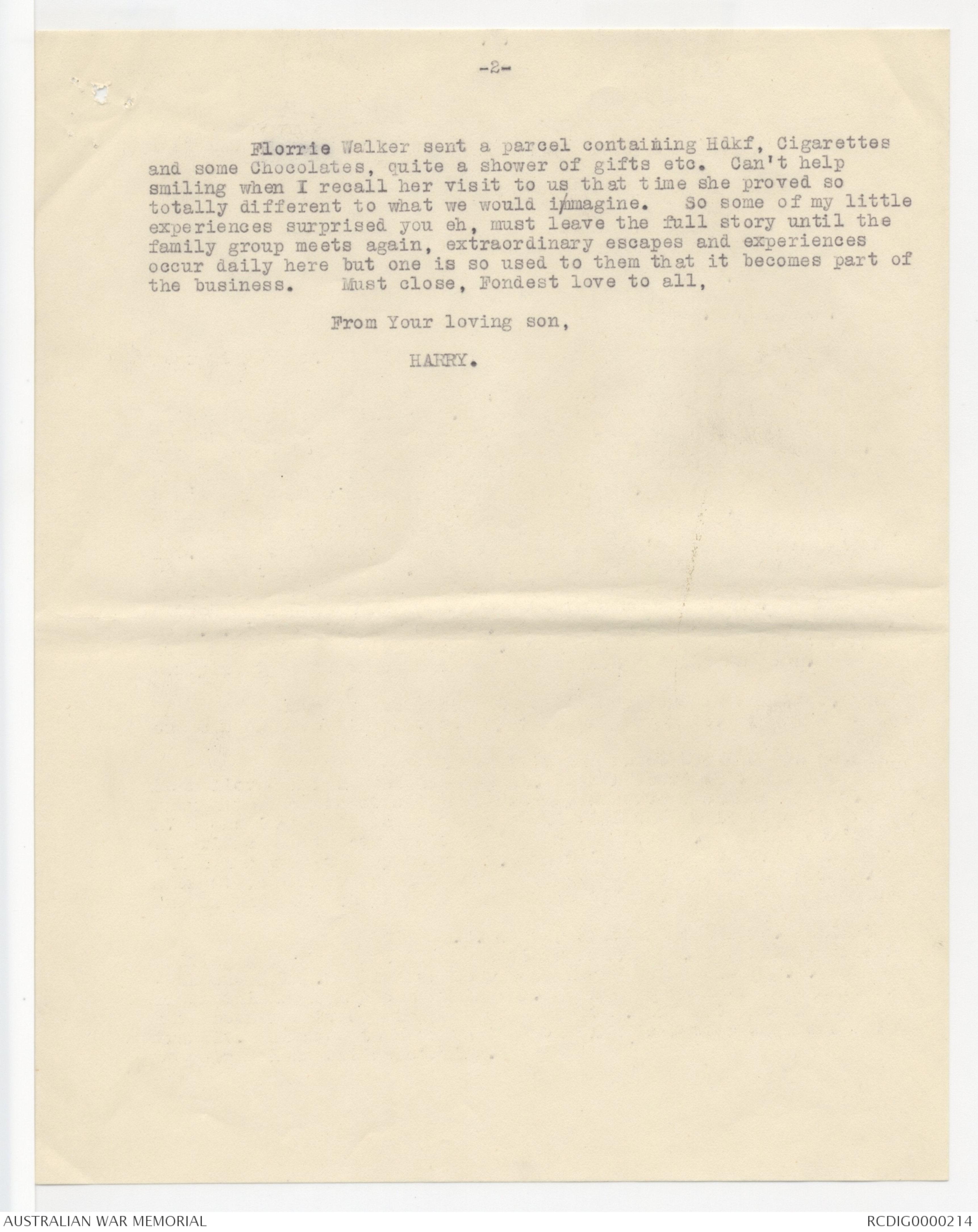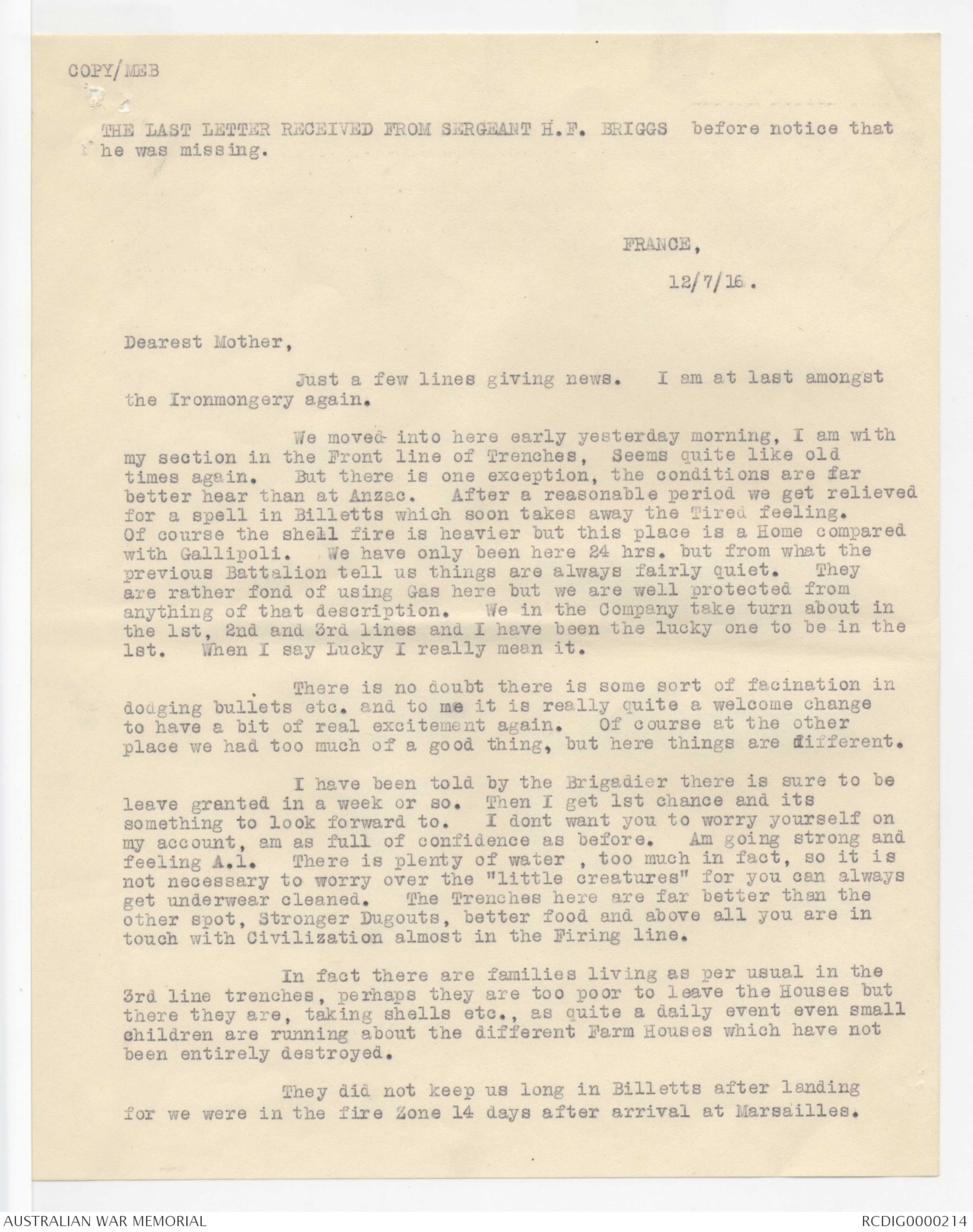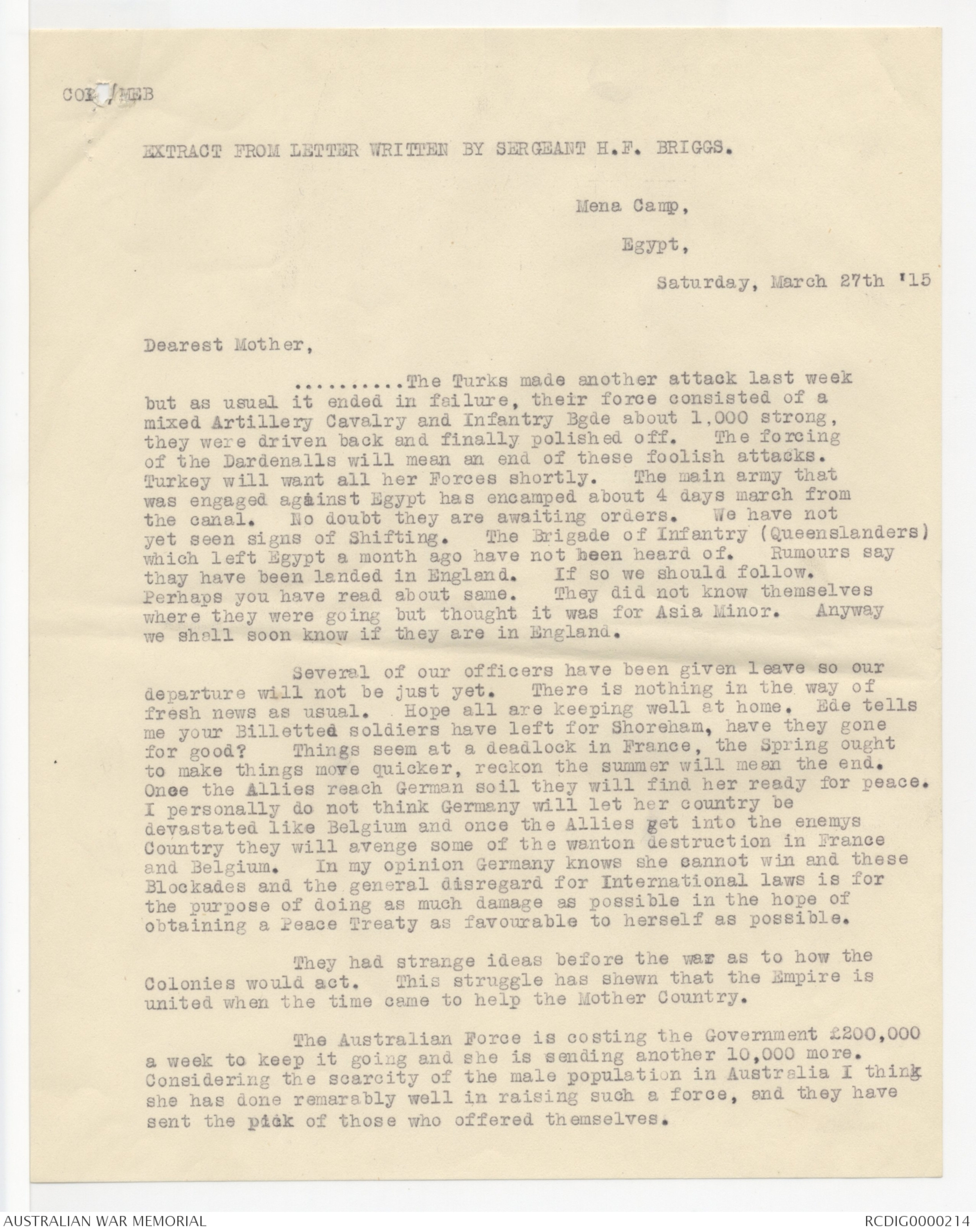 Letter written by Sergeant H.F. Briggs serving with the Australian