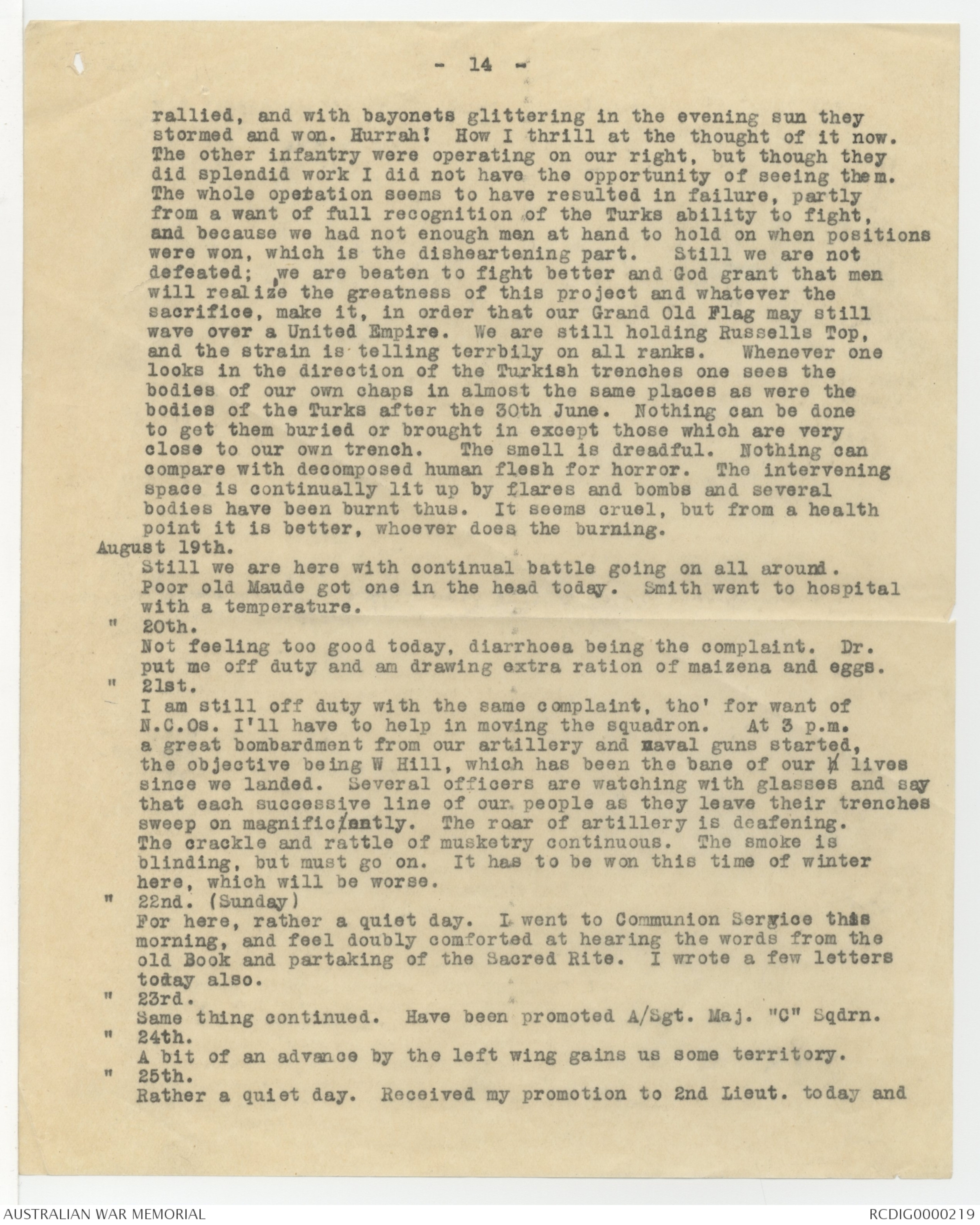 Rather a quiet day. Received my promotion to 2nd Lieut. today and