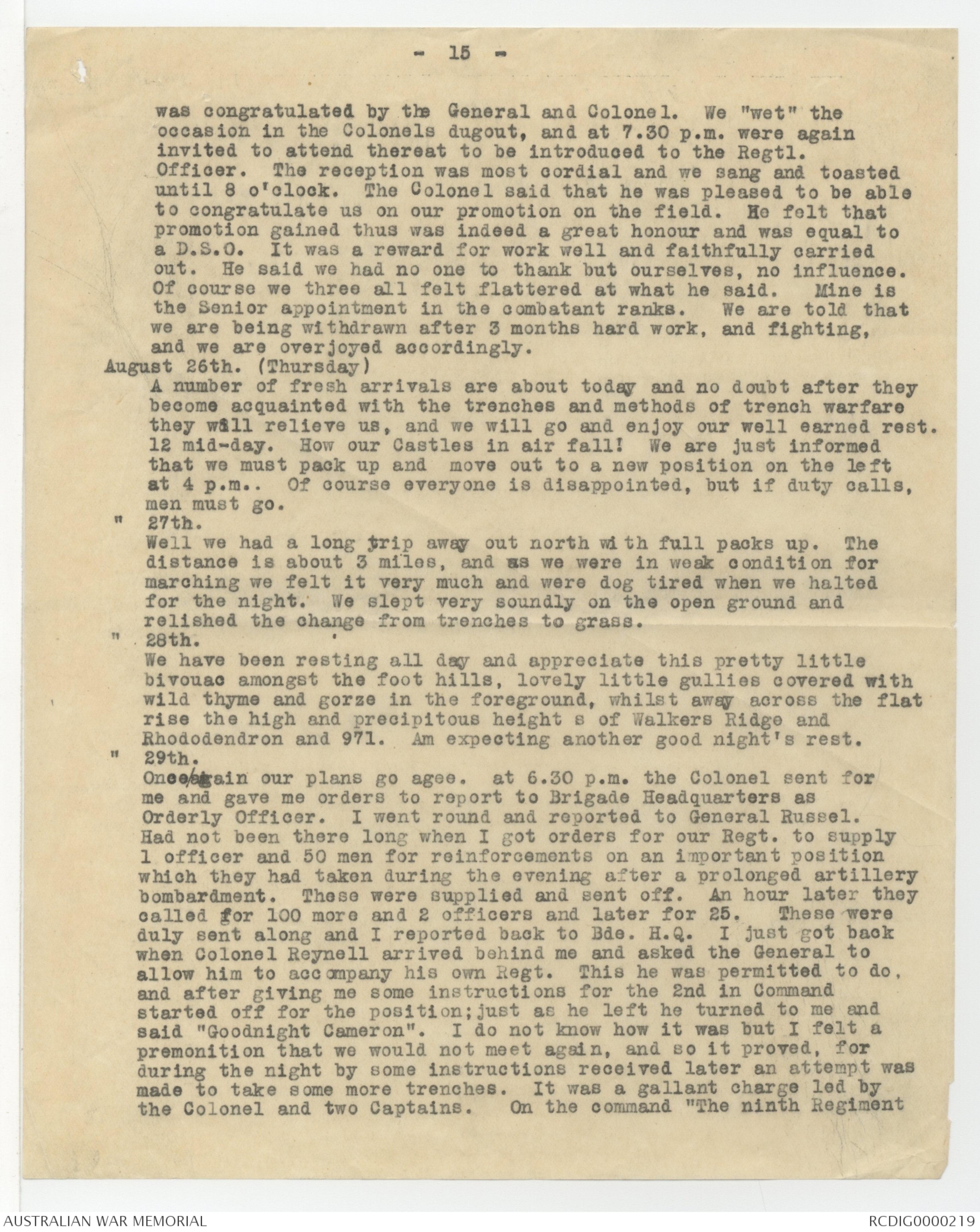 duly sent along and I reported back to Bde. H.Q. I just got back