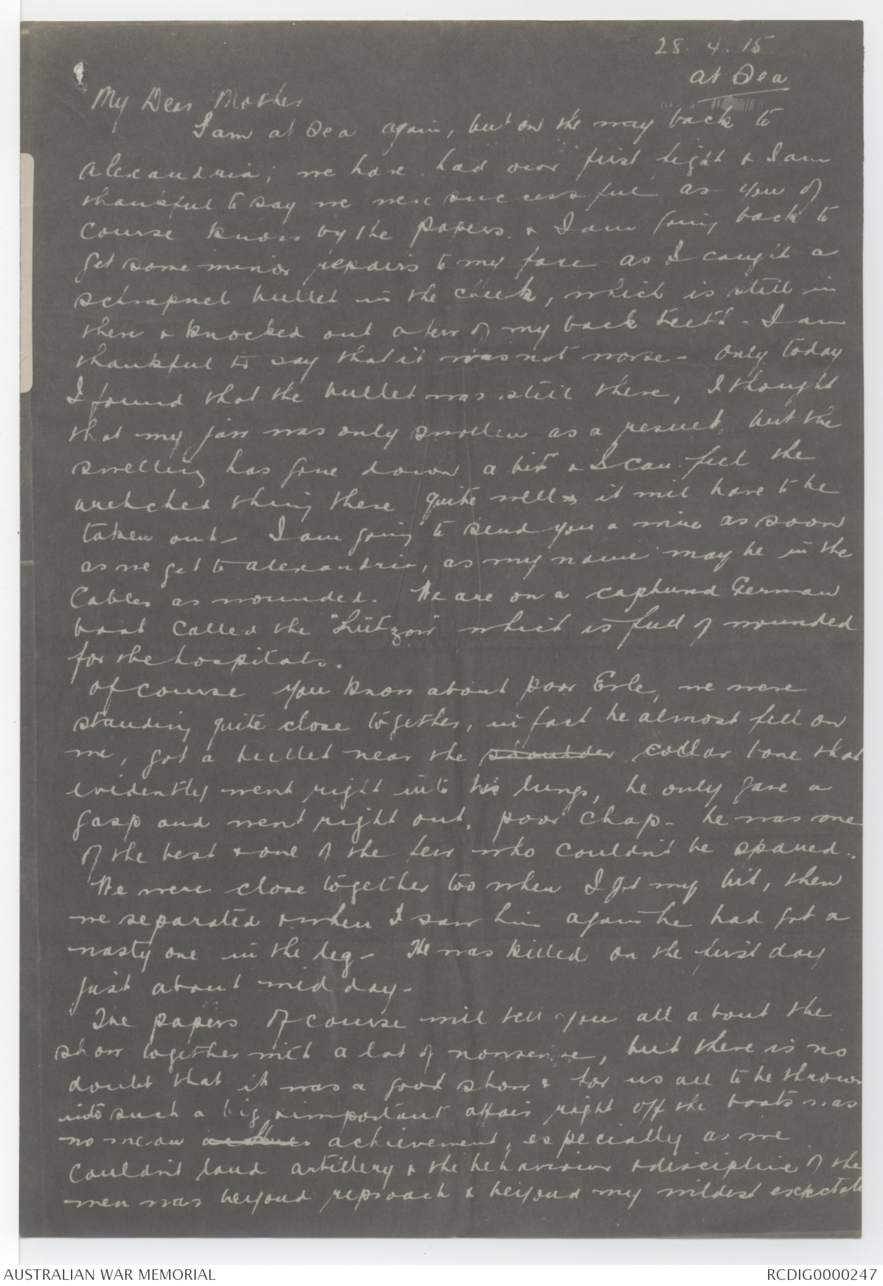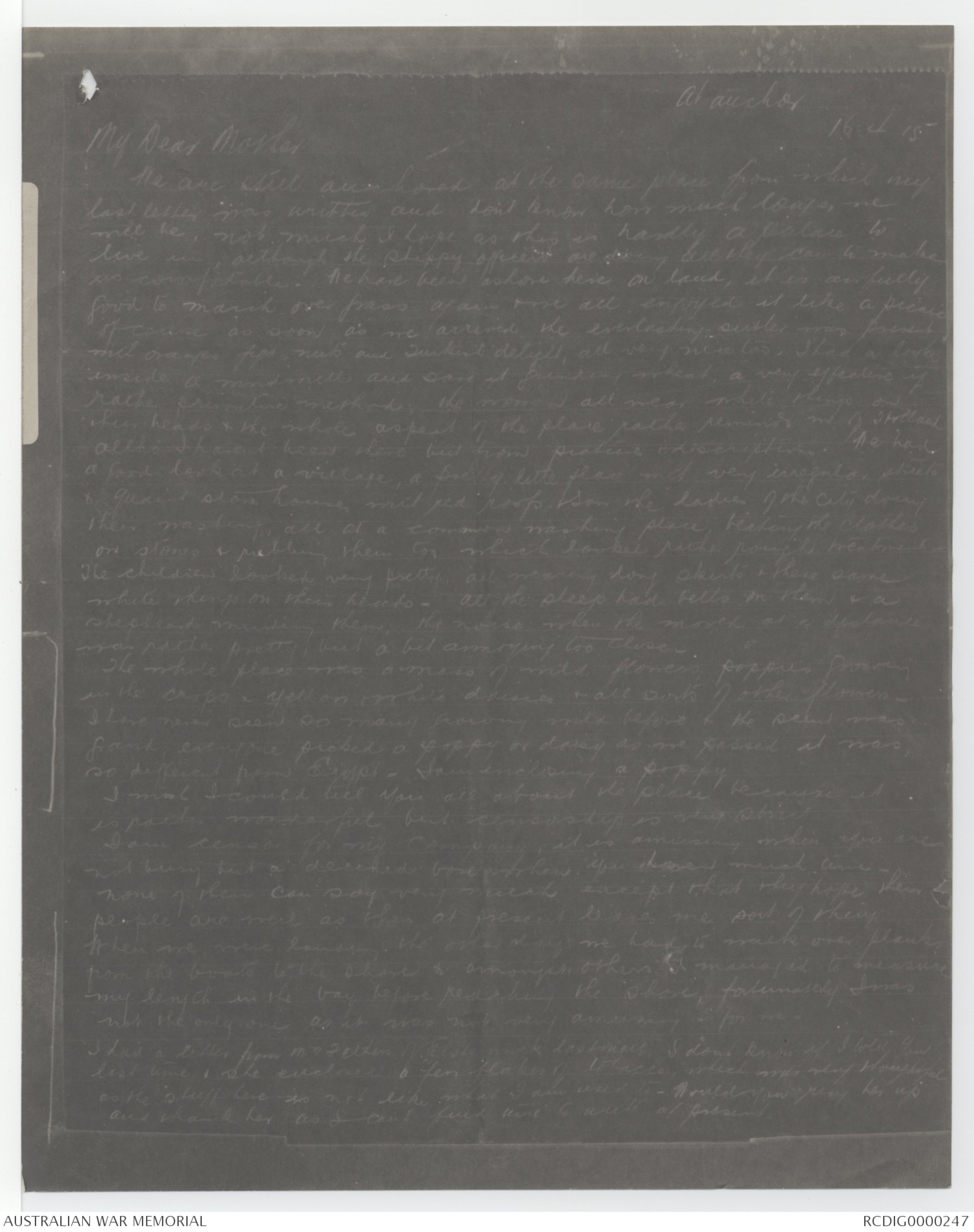 Letters from Robert Pearce Flockart to his Mother, 1915 - Part 1