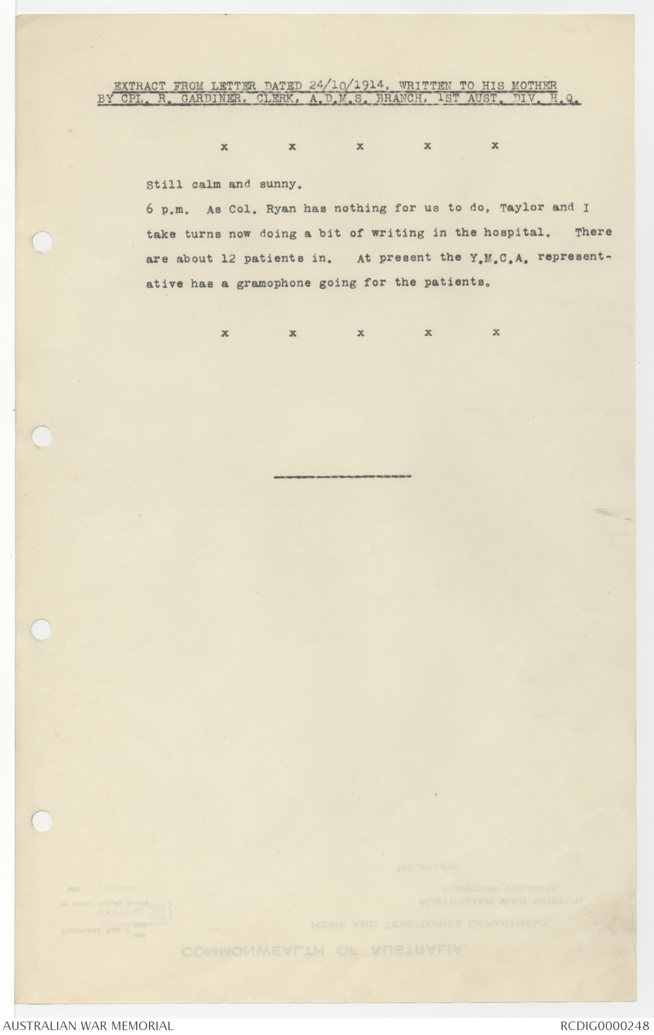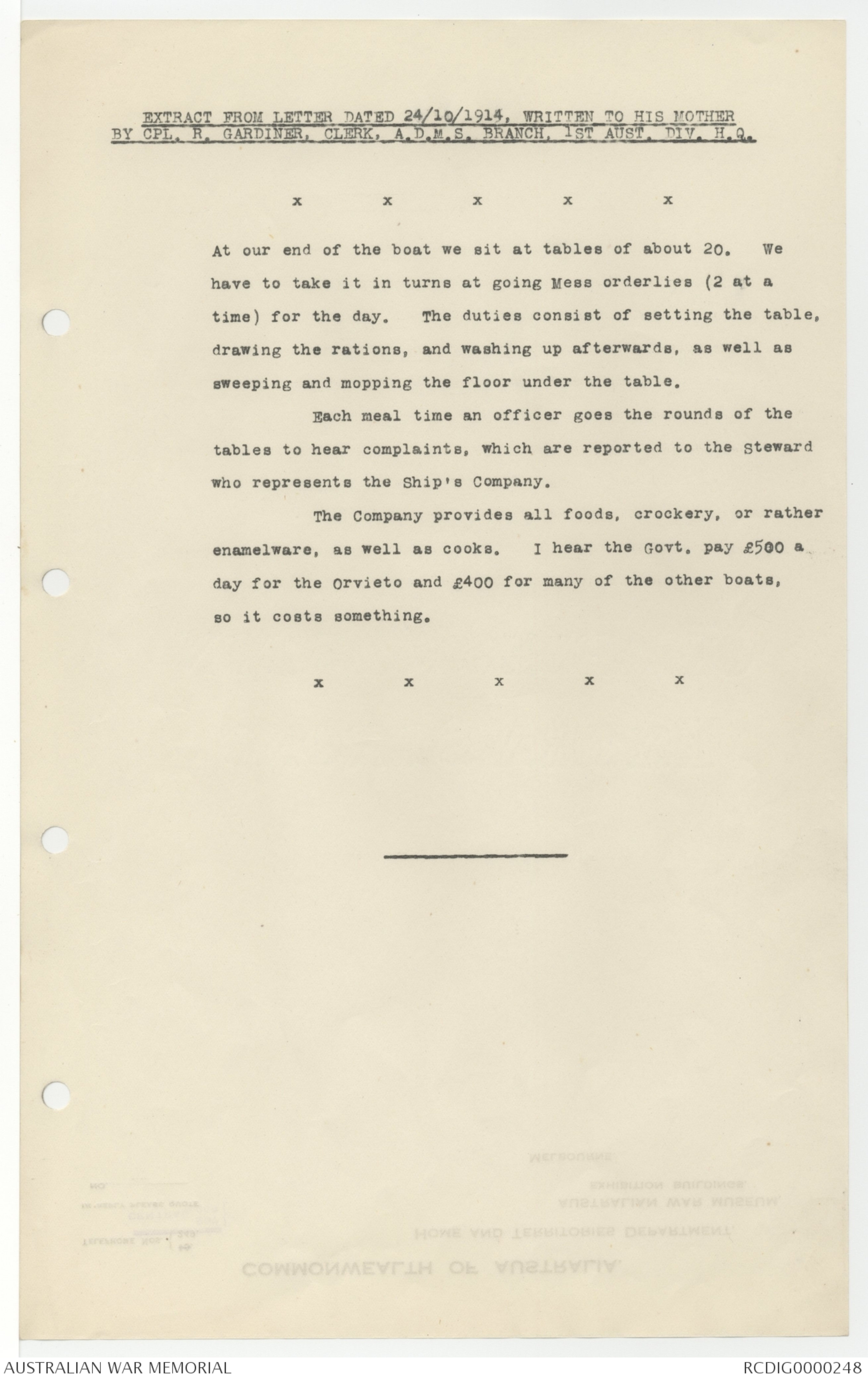 EXTRACT FROM LETTER DATED 24/10/1914, WRITTEN TO HIS MOTHER