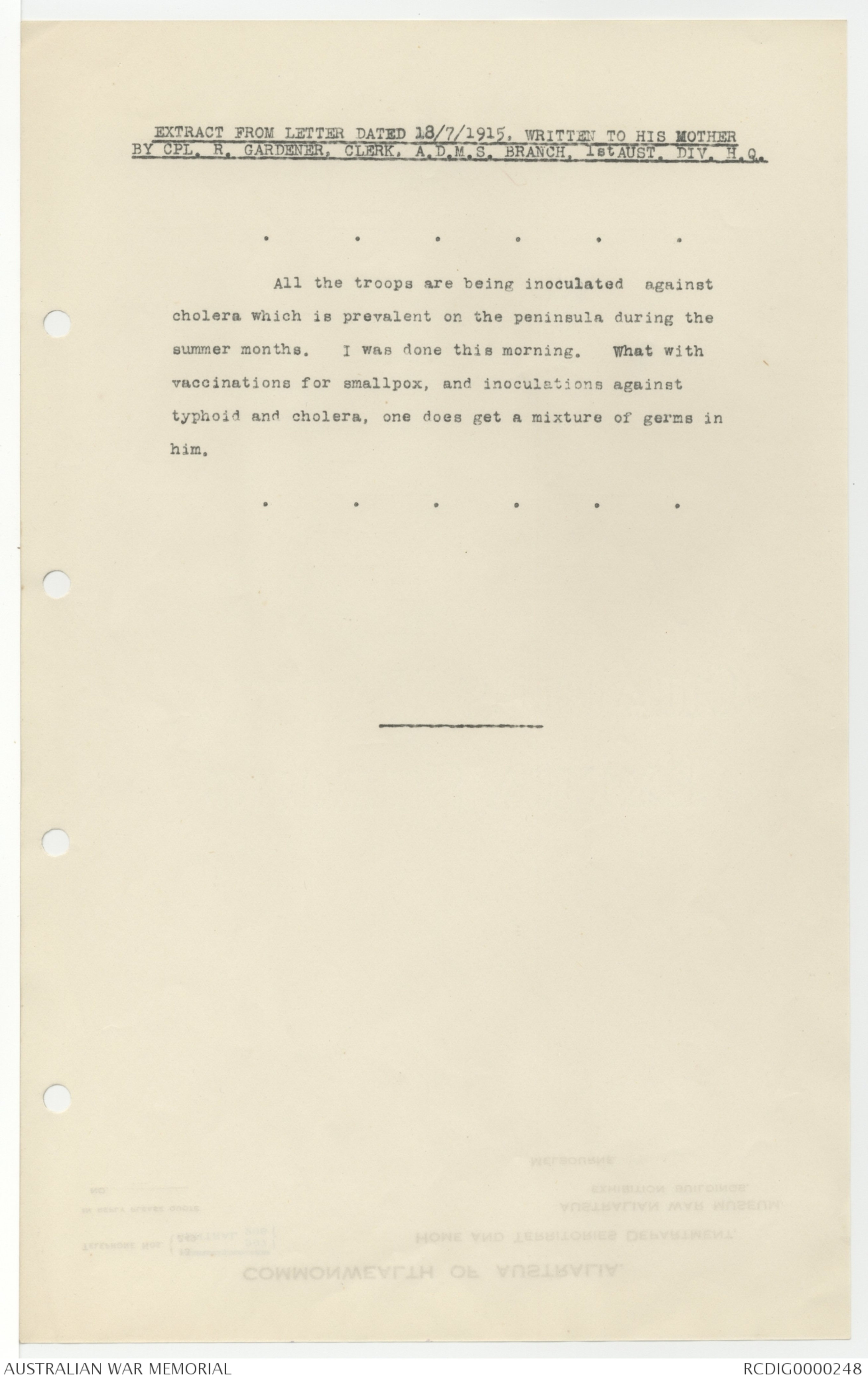 EXTRACT FROM LETTER DATED 18/7/1915, WRITTEN TO HIS MOTHER