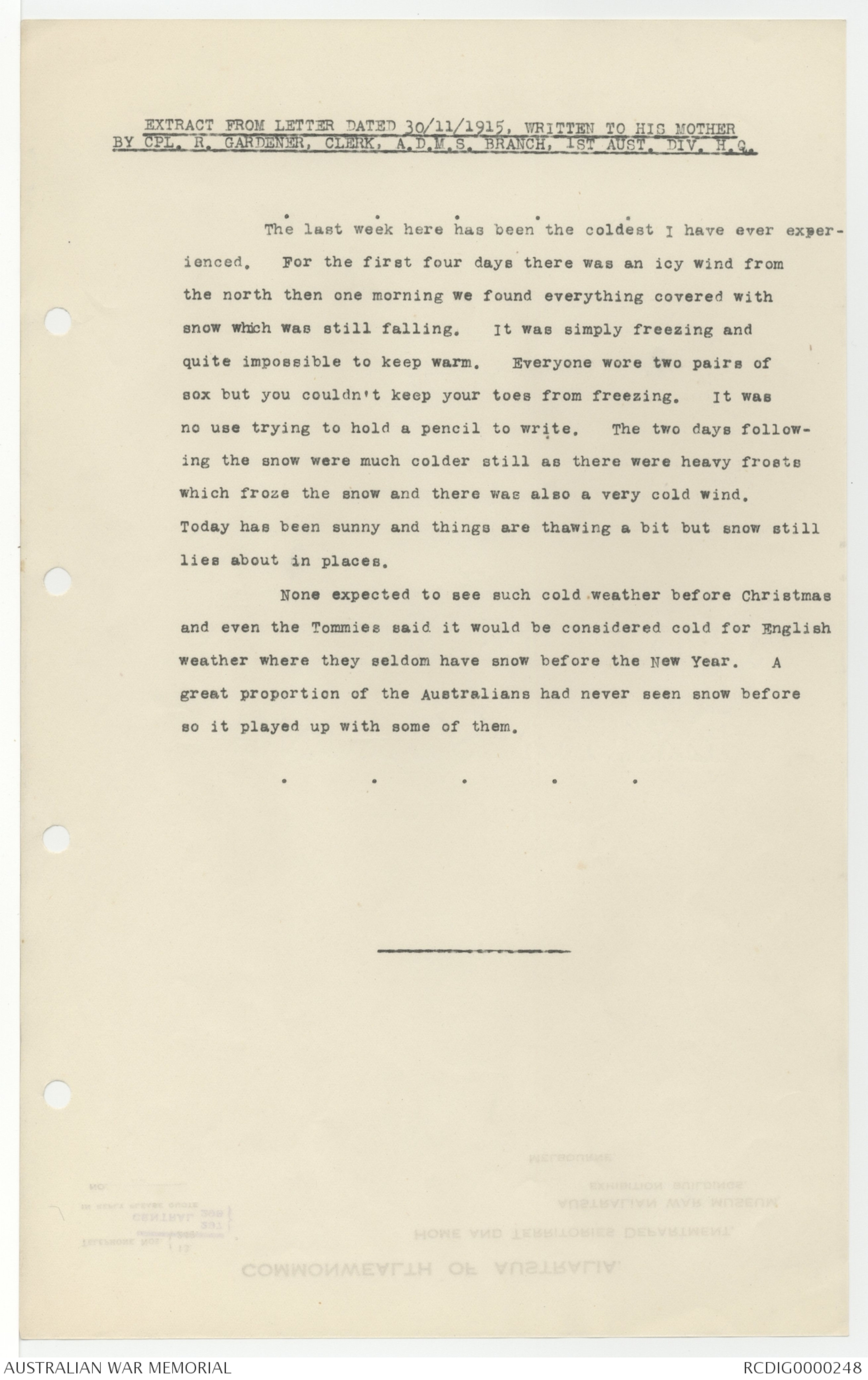EXTRACT FROM LETTER DATED 30/11/1915, WRITTEN TO HIS MOTHER