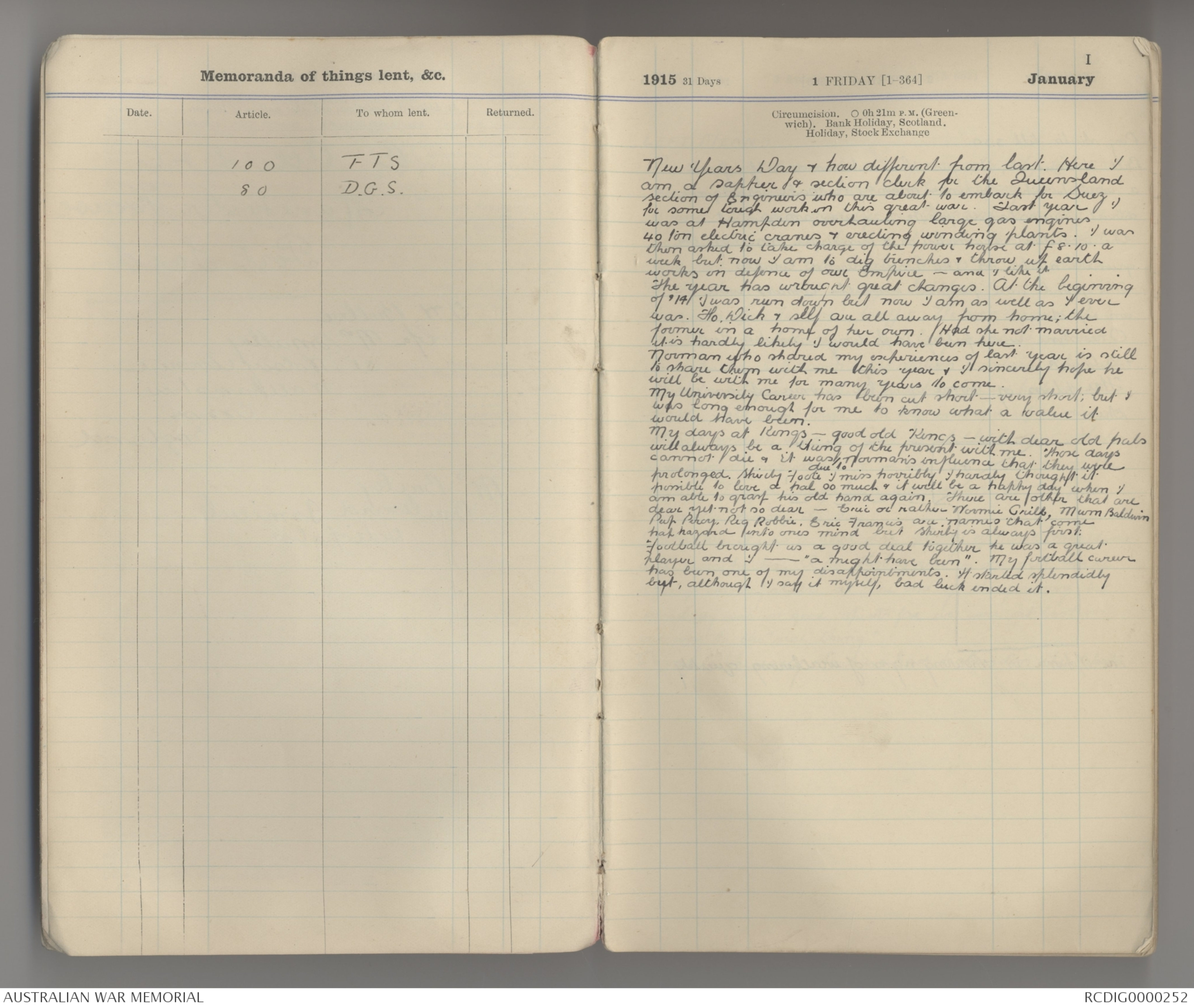 Diary of Frederick Trouton Small, 1915 - Part 1
