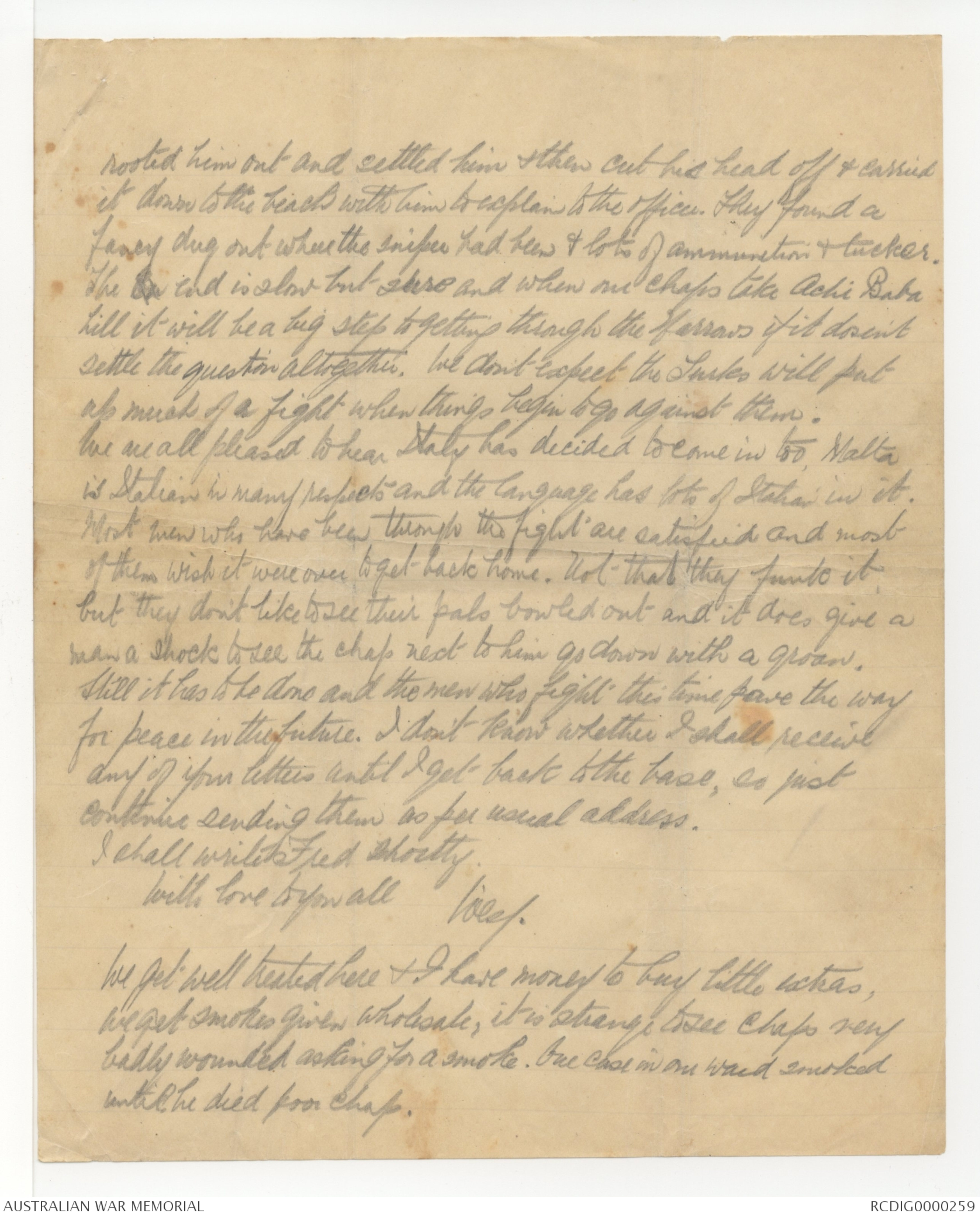 Letters from John Wesley Hetherington to his Family, 1914-1915 - Part 6