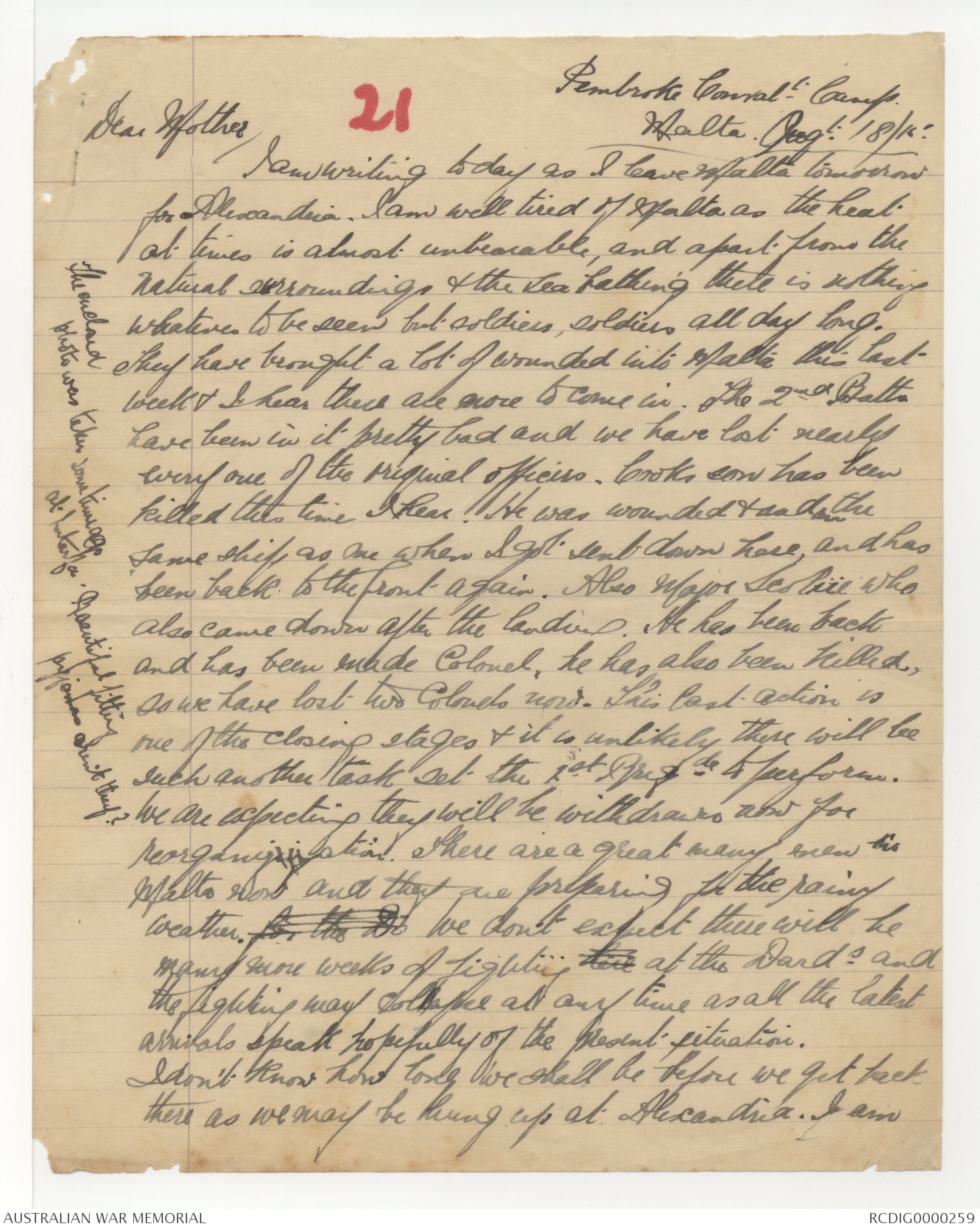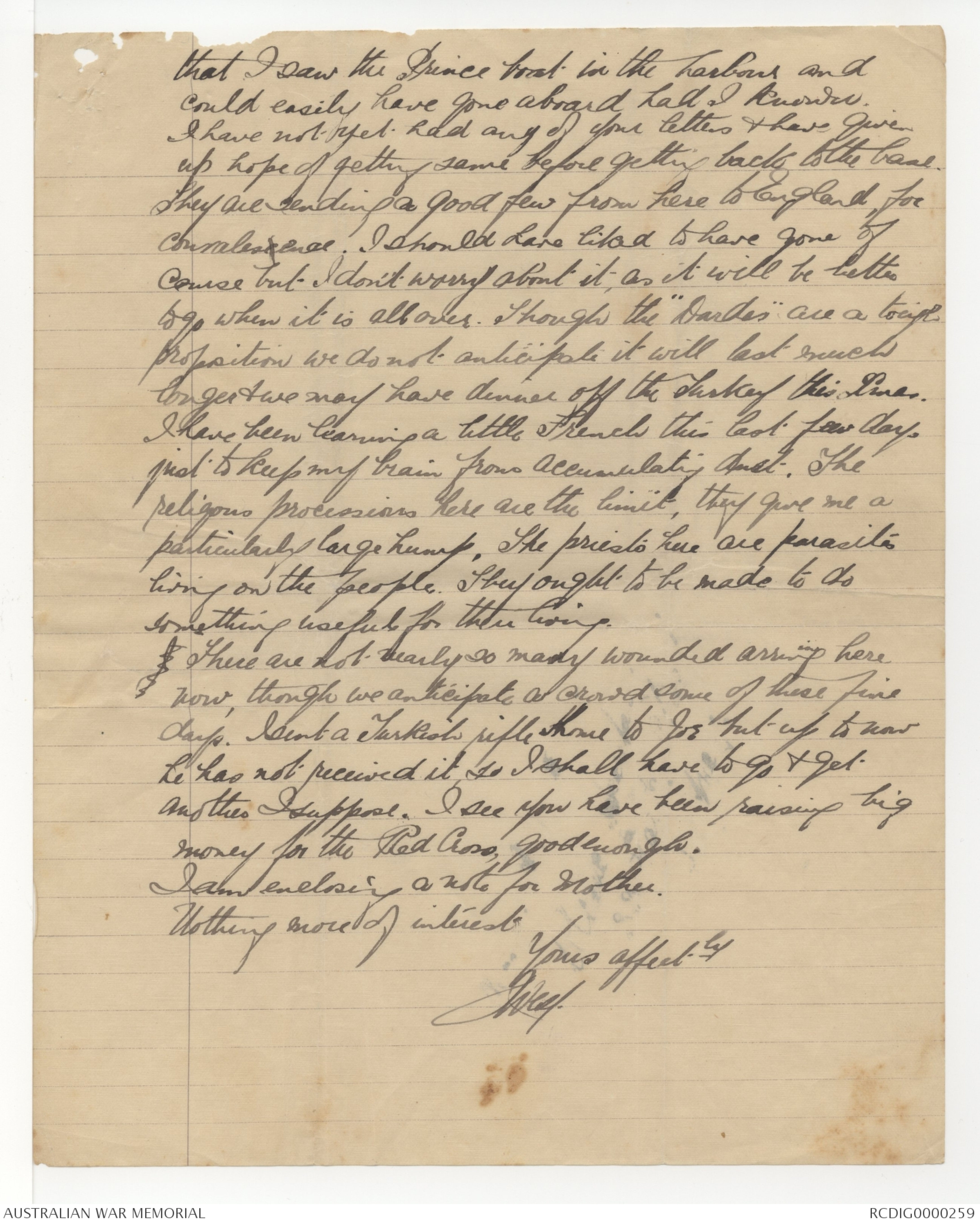 Letters from John Wesley Hetherington to his Family, 1914-1915 - Part 7