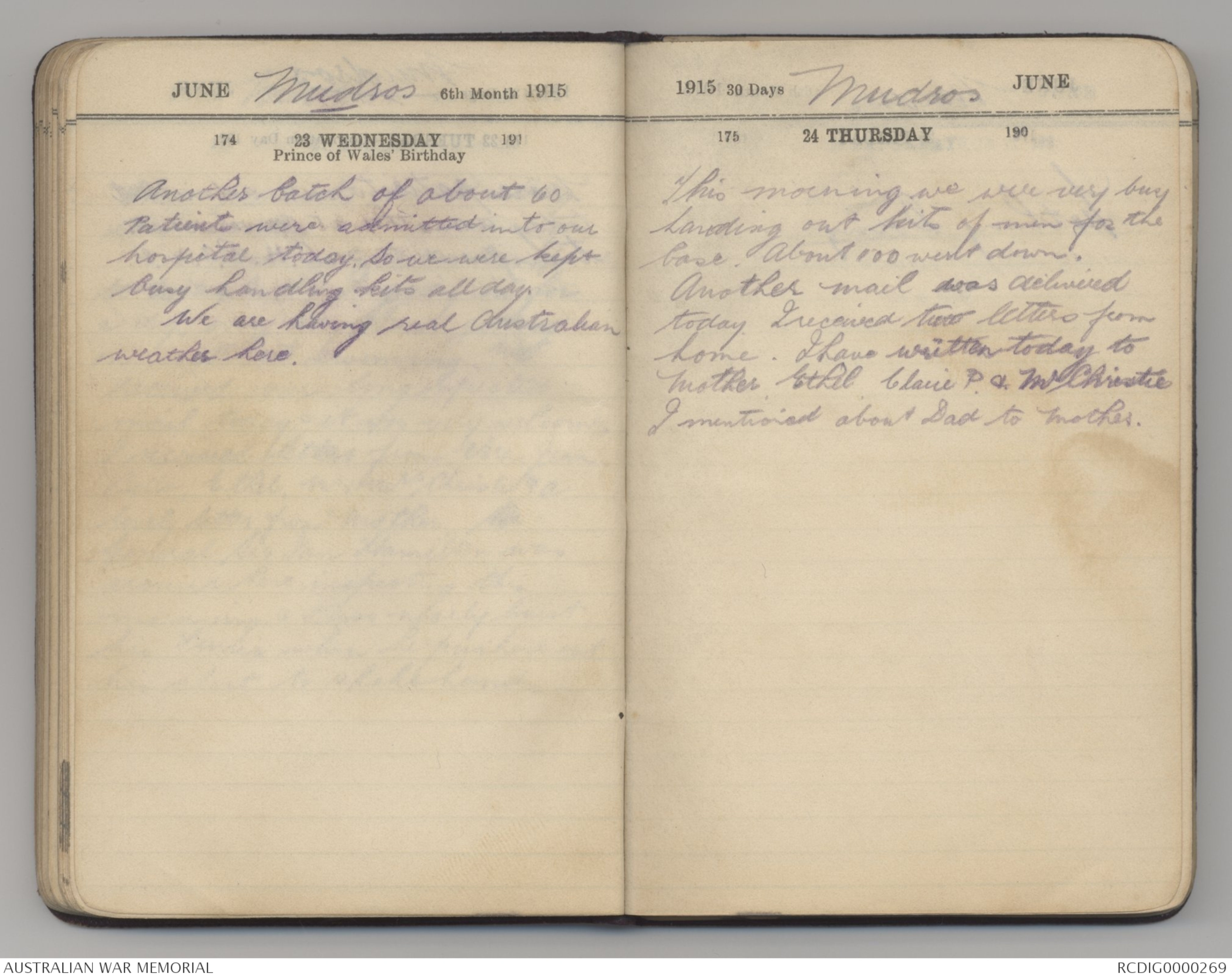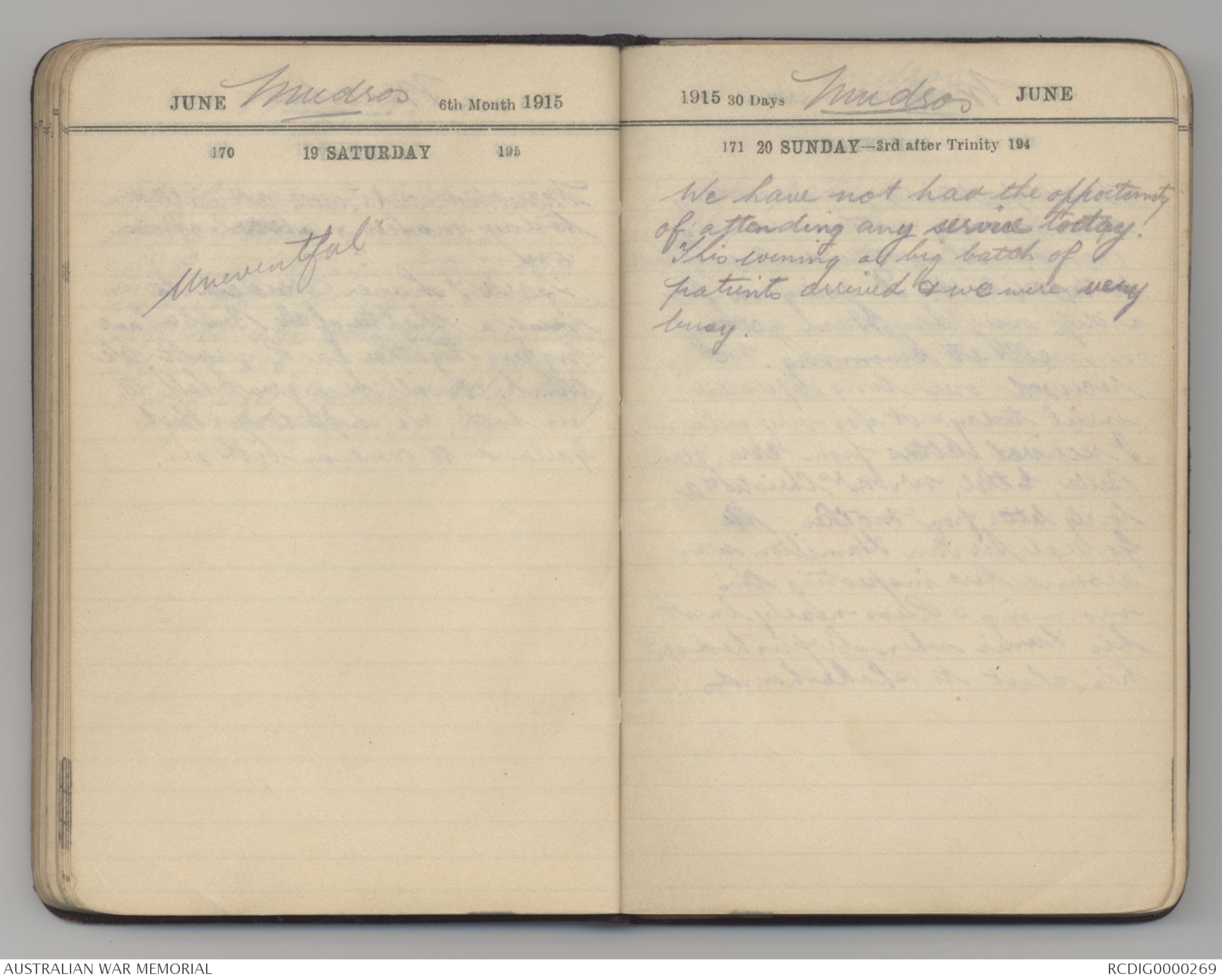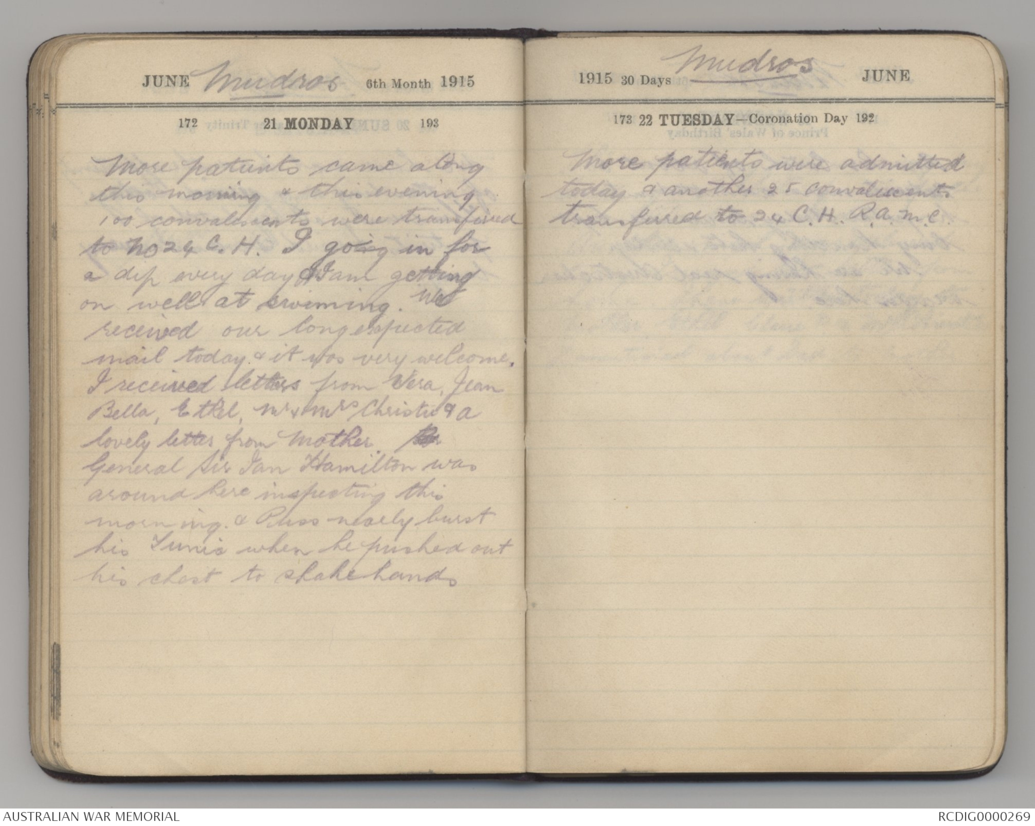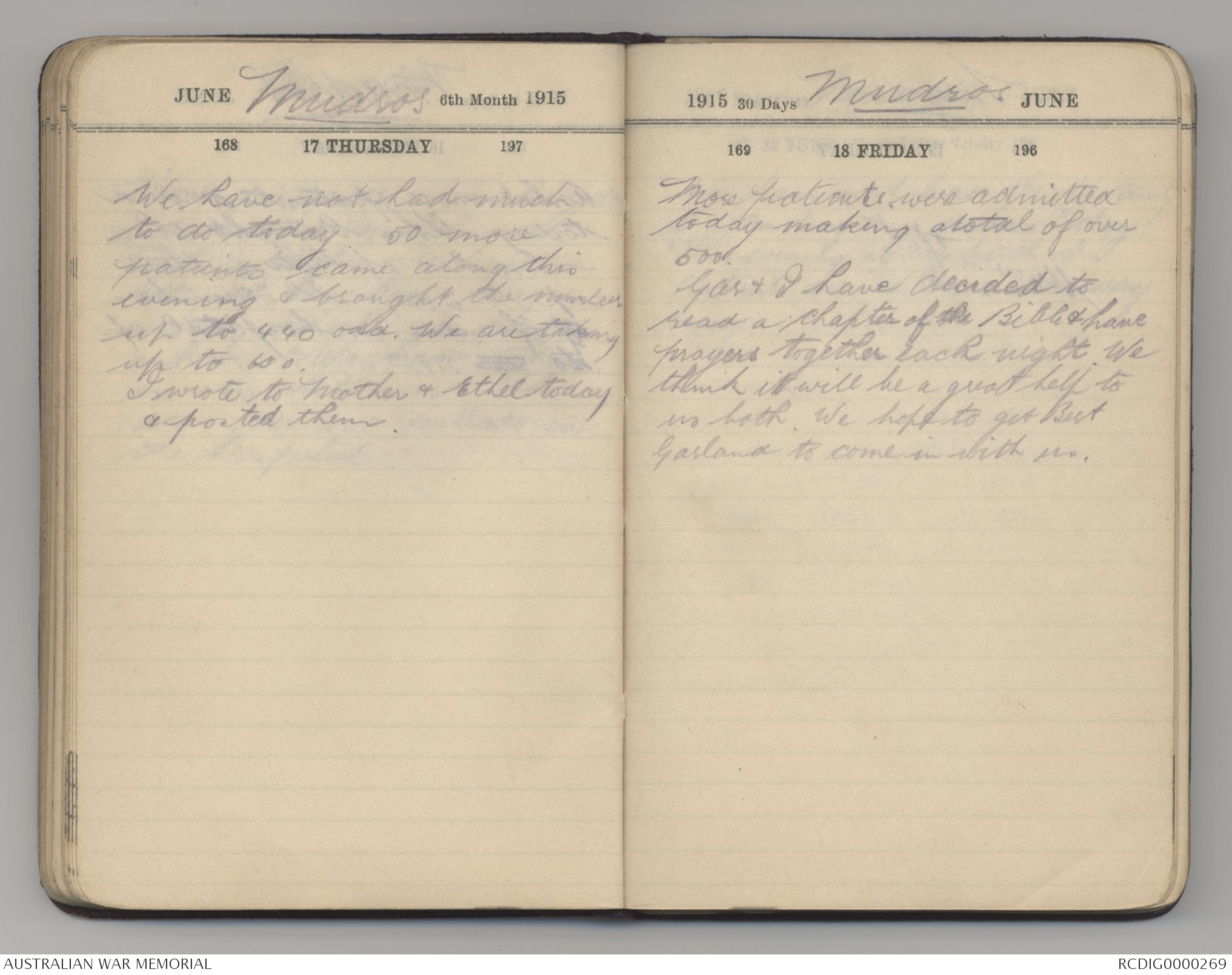 JUNE Mudros 6th Month 1915