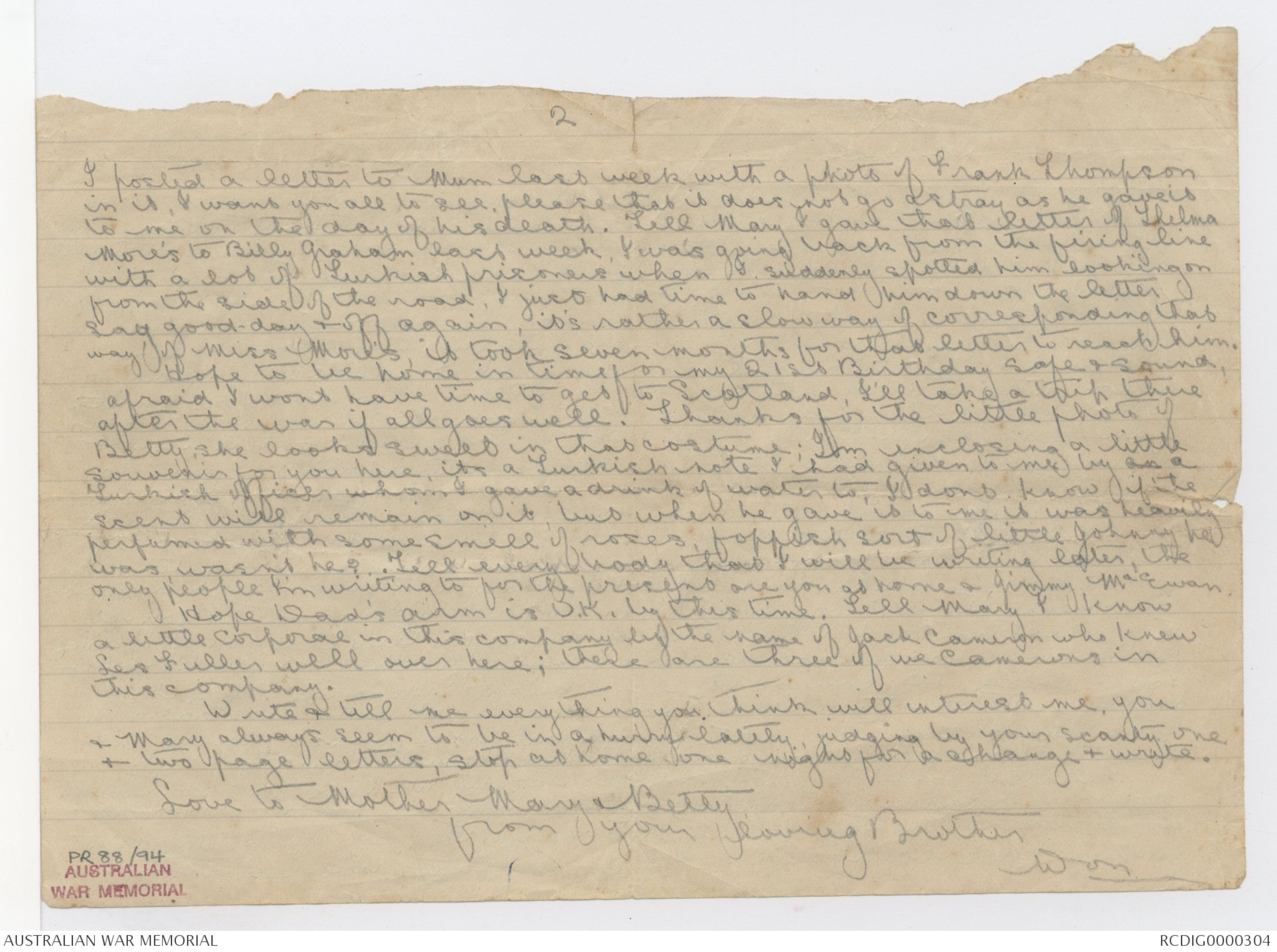 I posted a letter to Mum last week with a photo of Frank Thompson