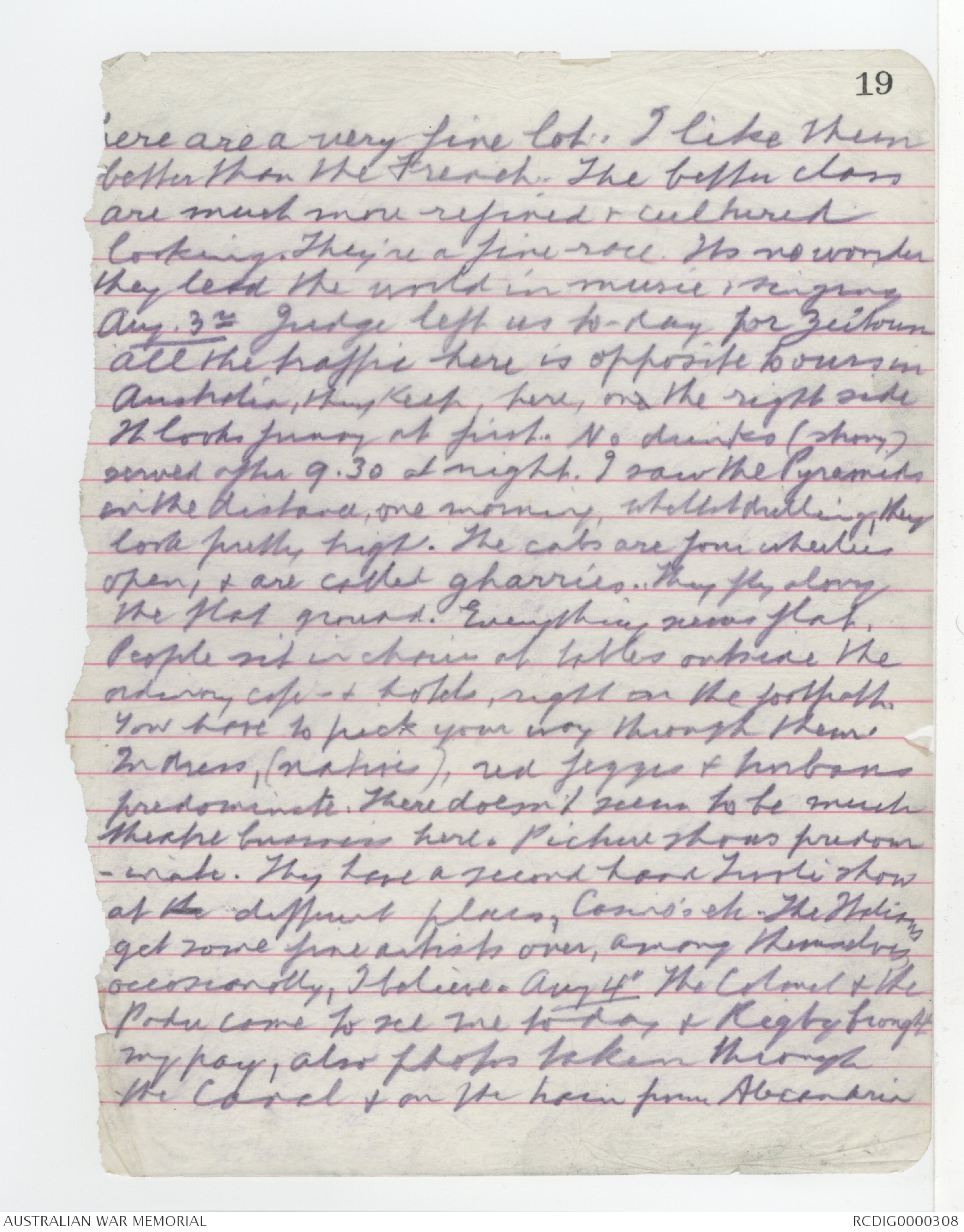 Aug. 3rd Judge left us to-day for Zeitoun