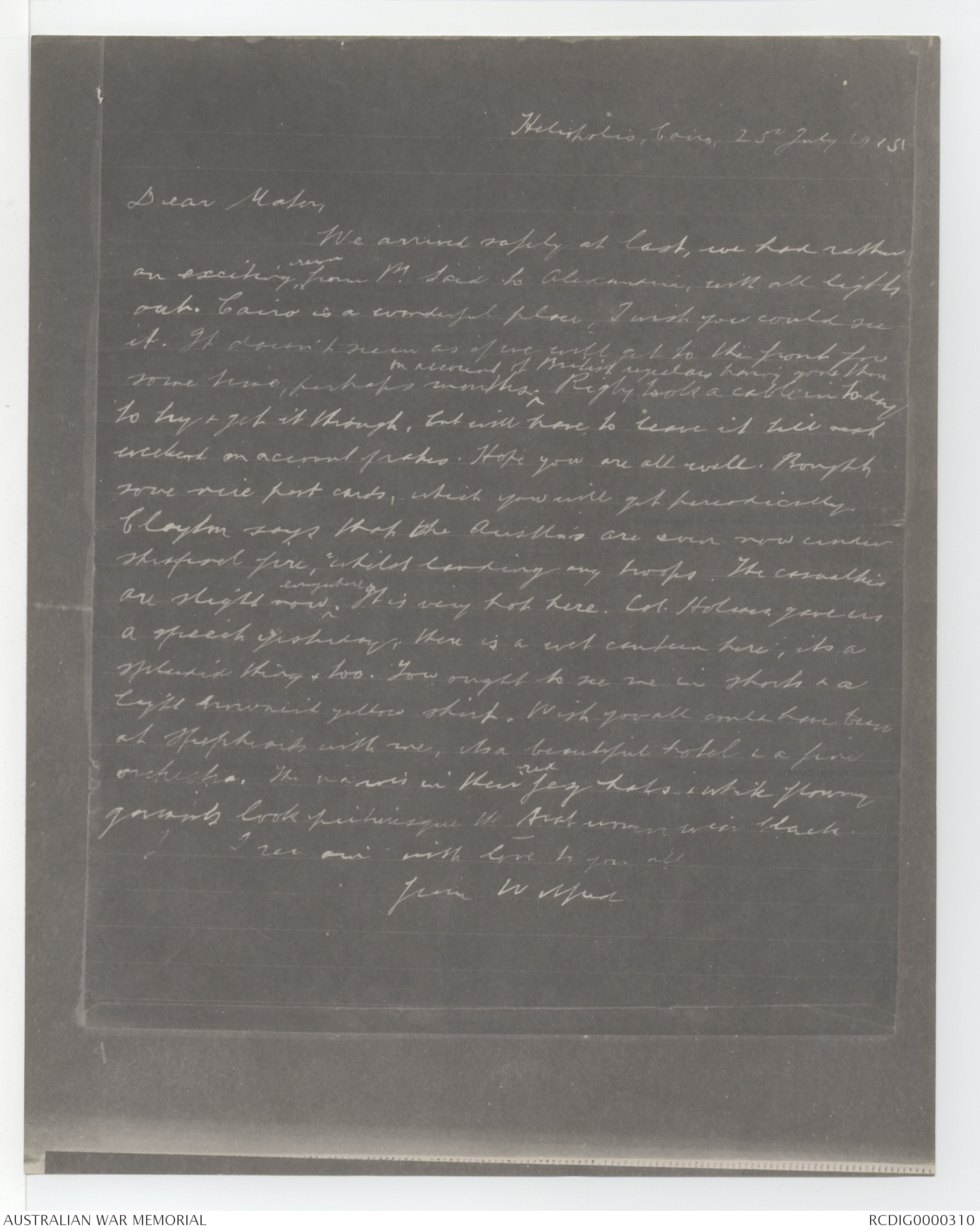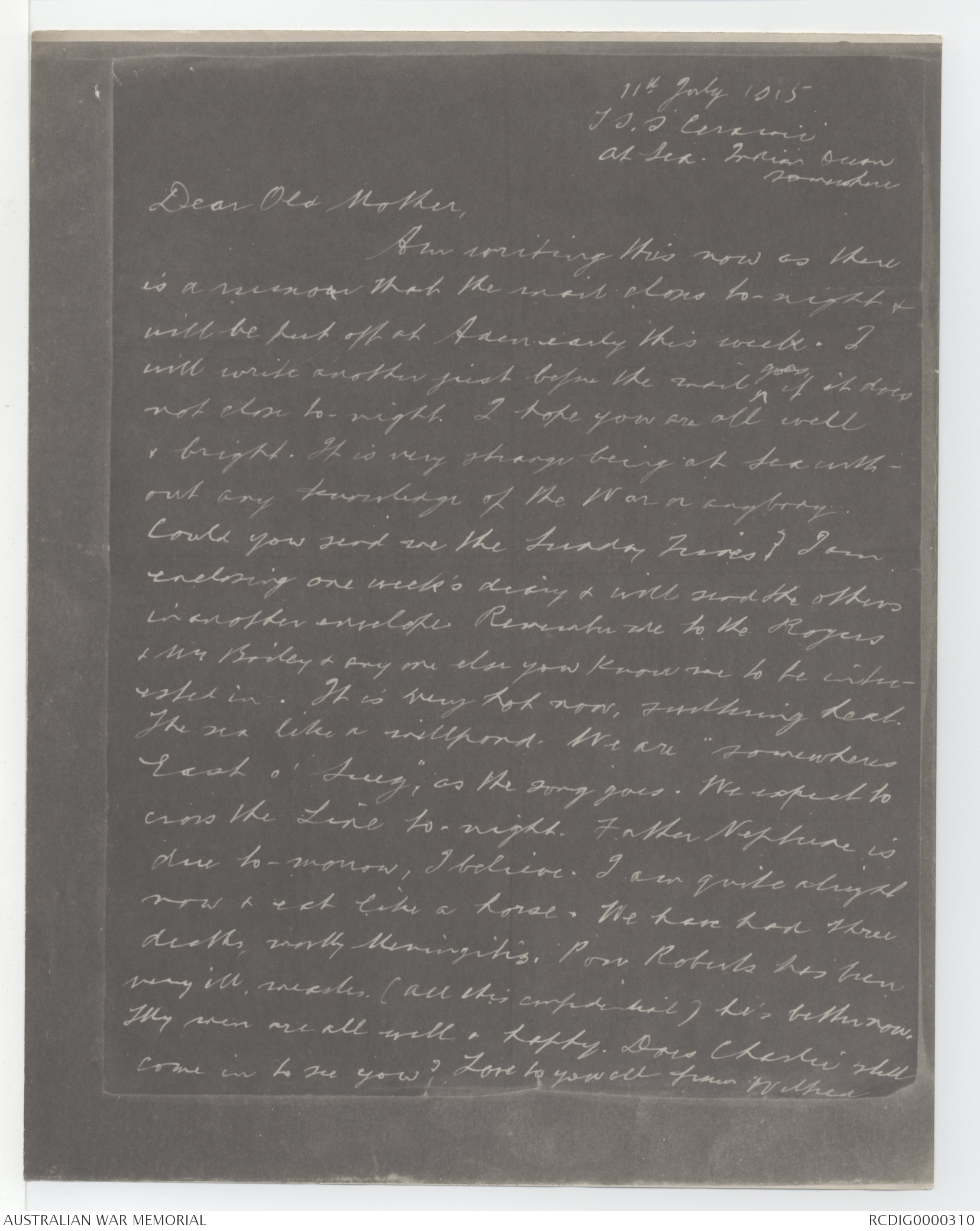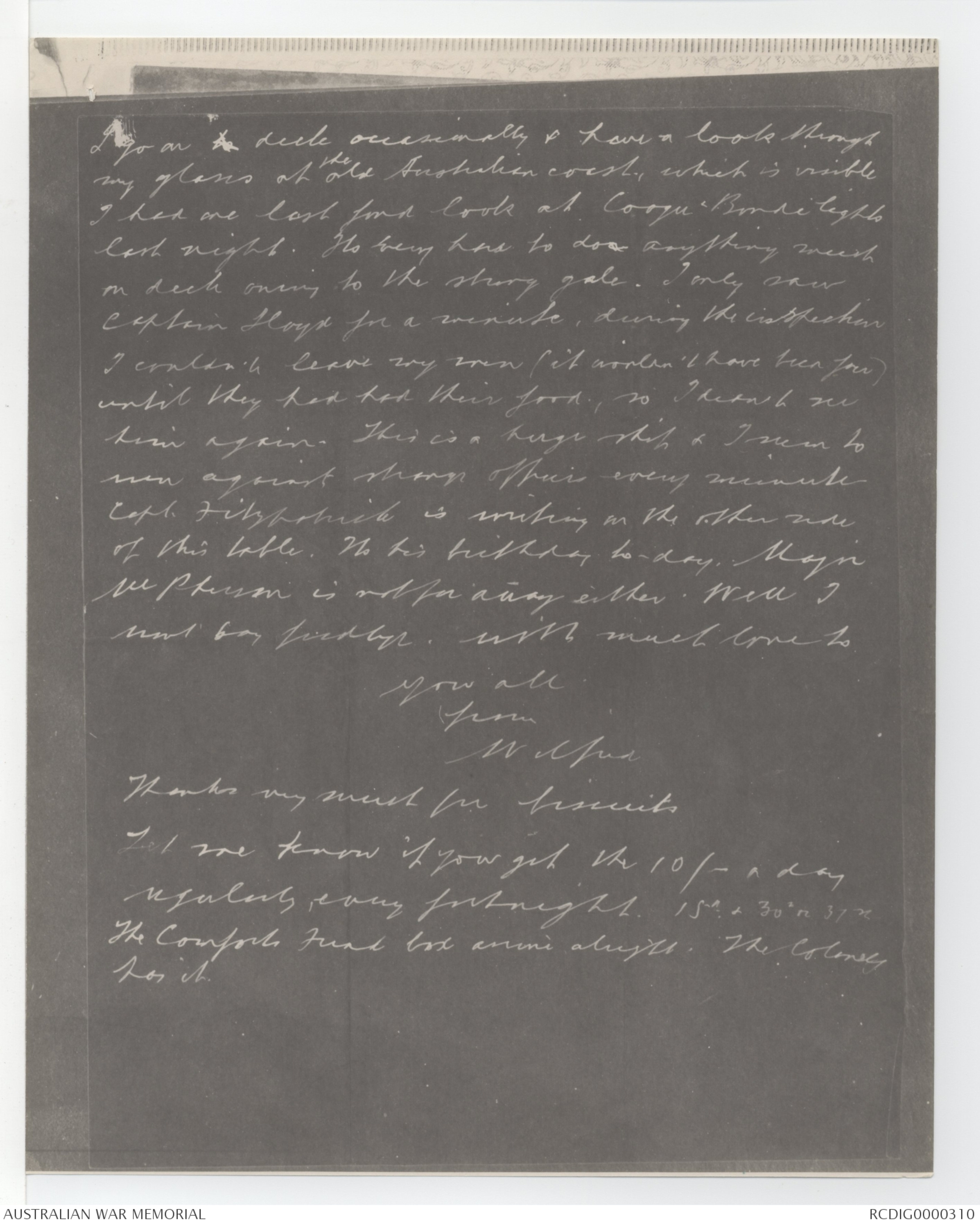 so I am writing to-day as a boat leaves for Australia to-morrow.