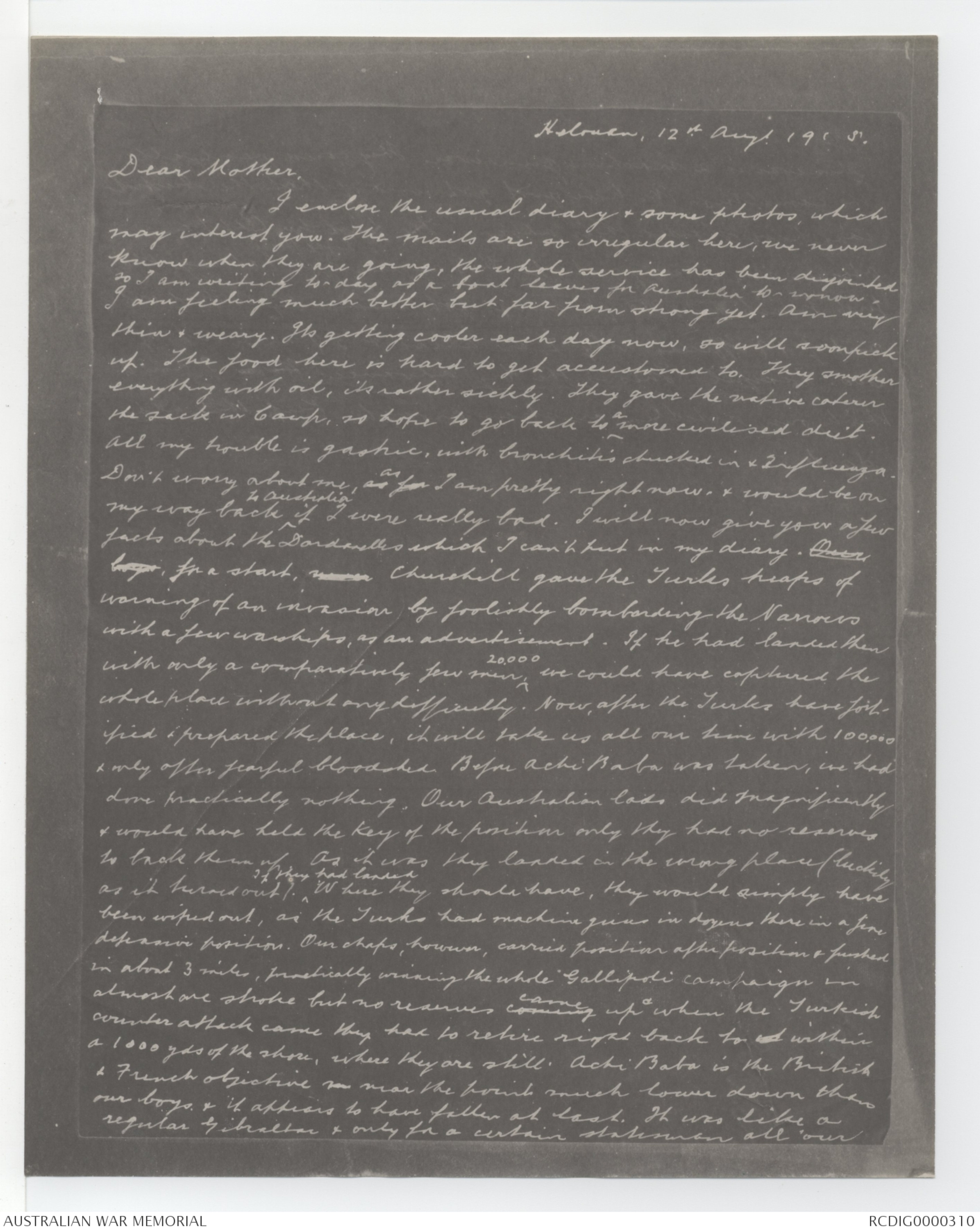 facts about the Dardanelles which I can't put in my diary. Overxxx for a start, xxxx Churchill gave the Turks heaps of