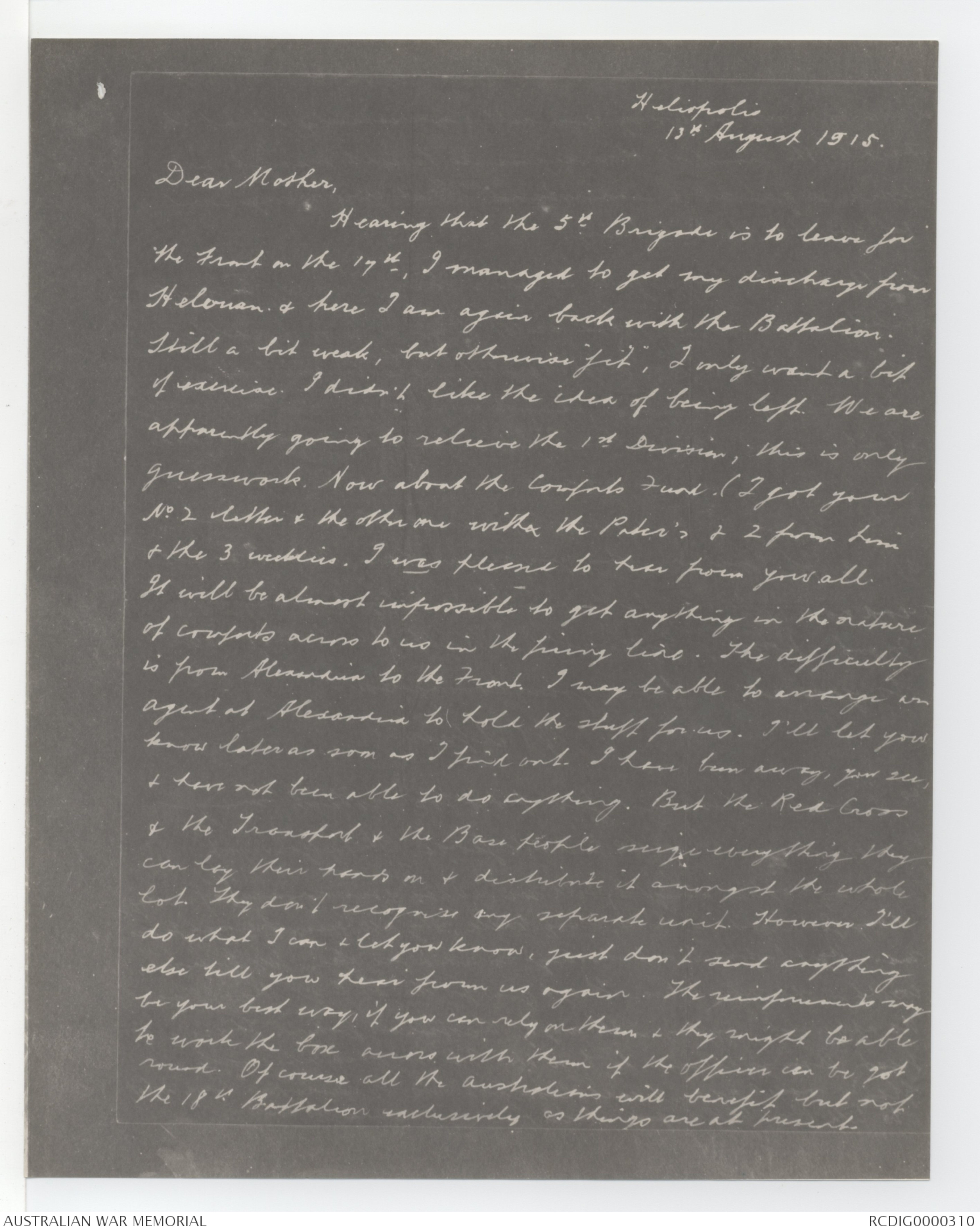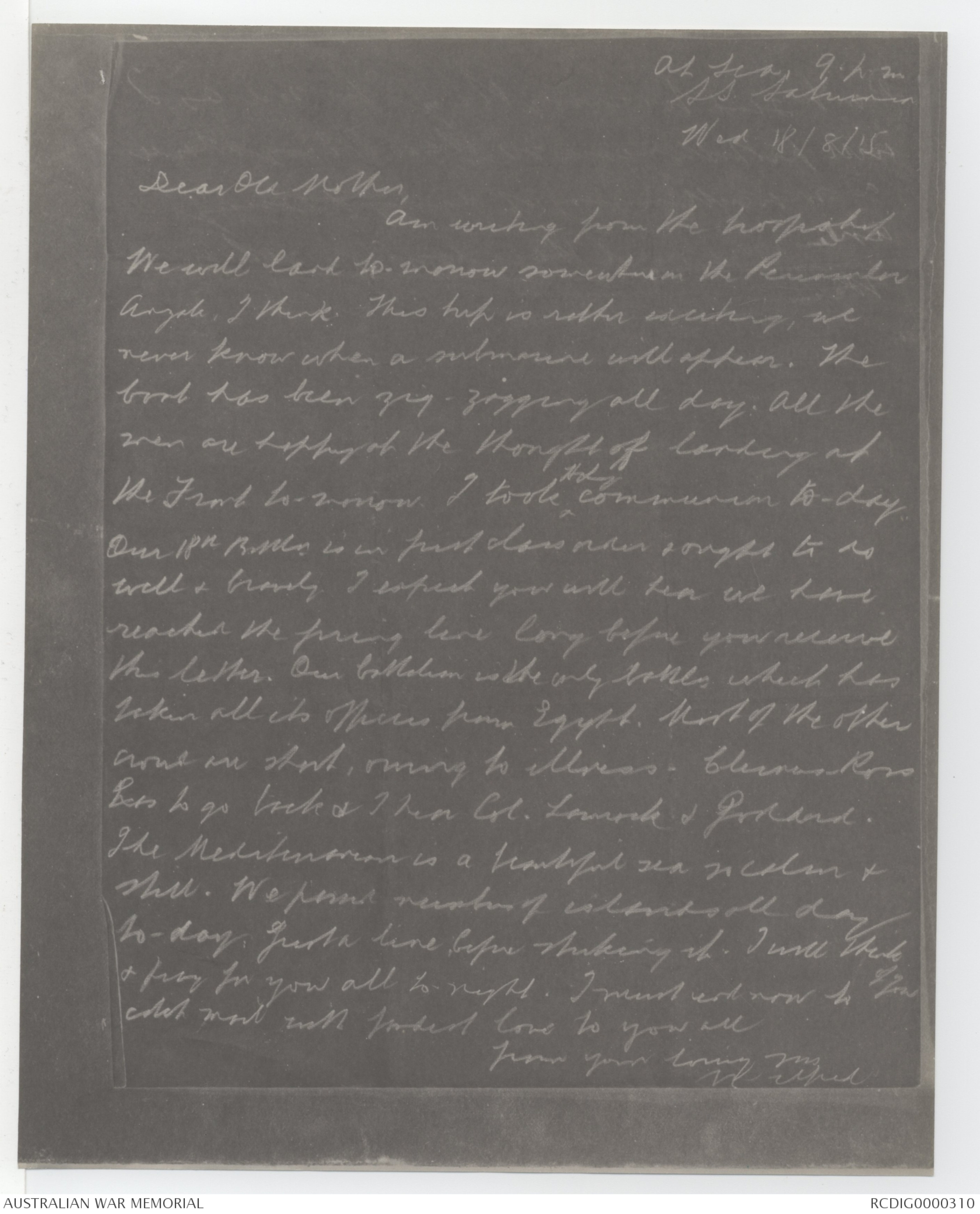 Letters from Wilfred Emmott Addison to his Mother, 1915 - Part 2