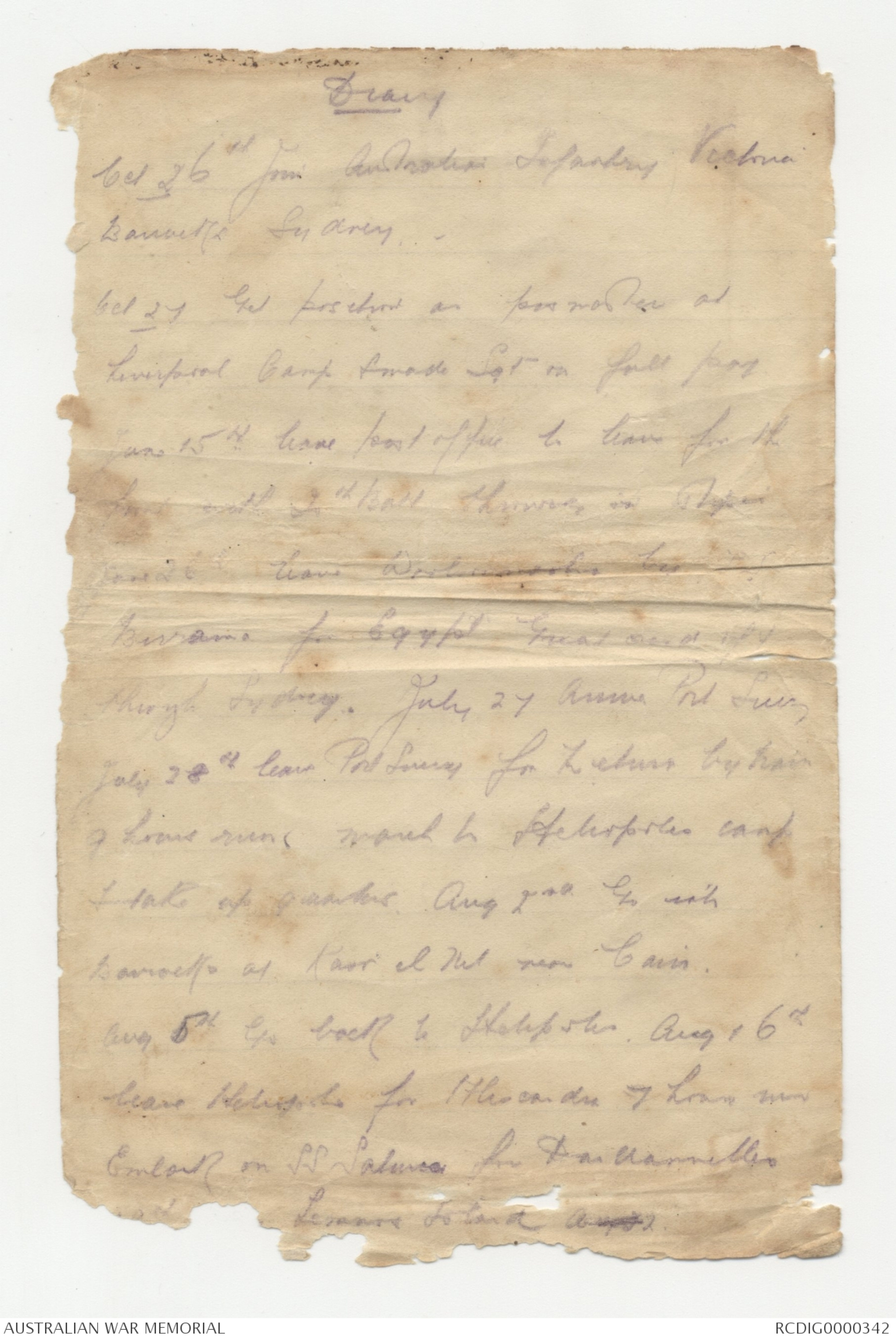 Diary of Cyril Arnold Pryor, 1914 -1916 - Part 1