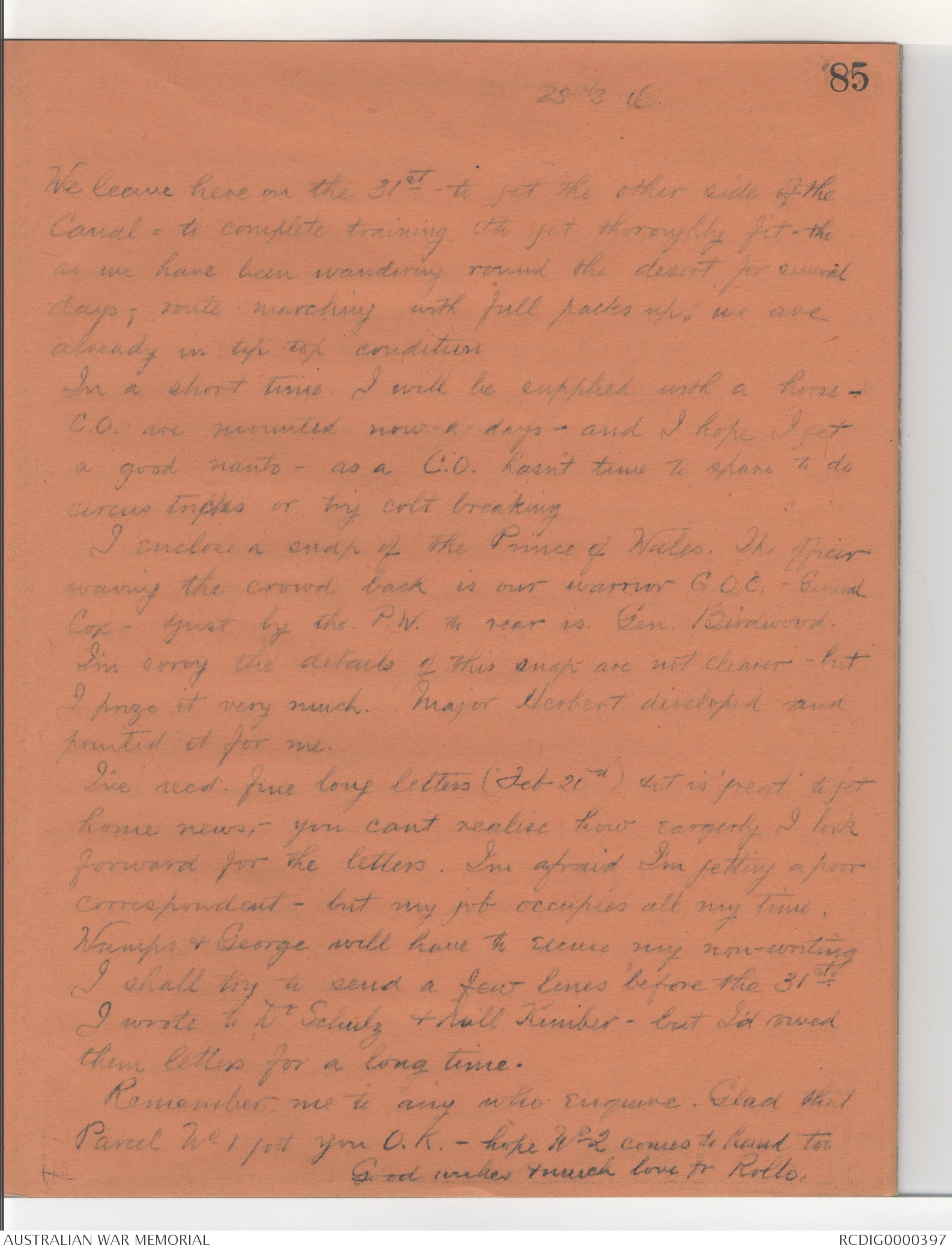 I enclose a snap of the Prince of Wales. The officer
