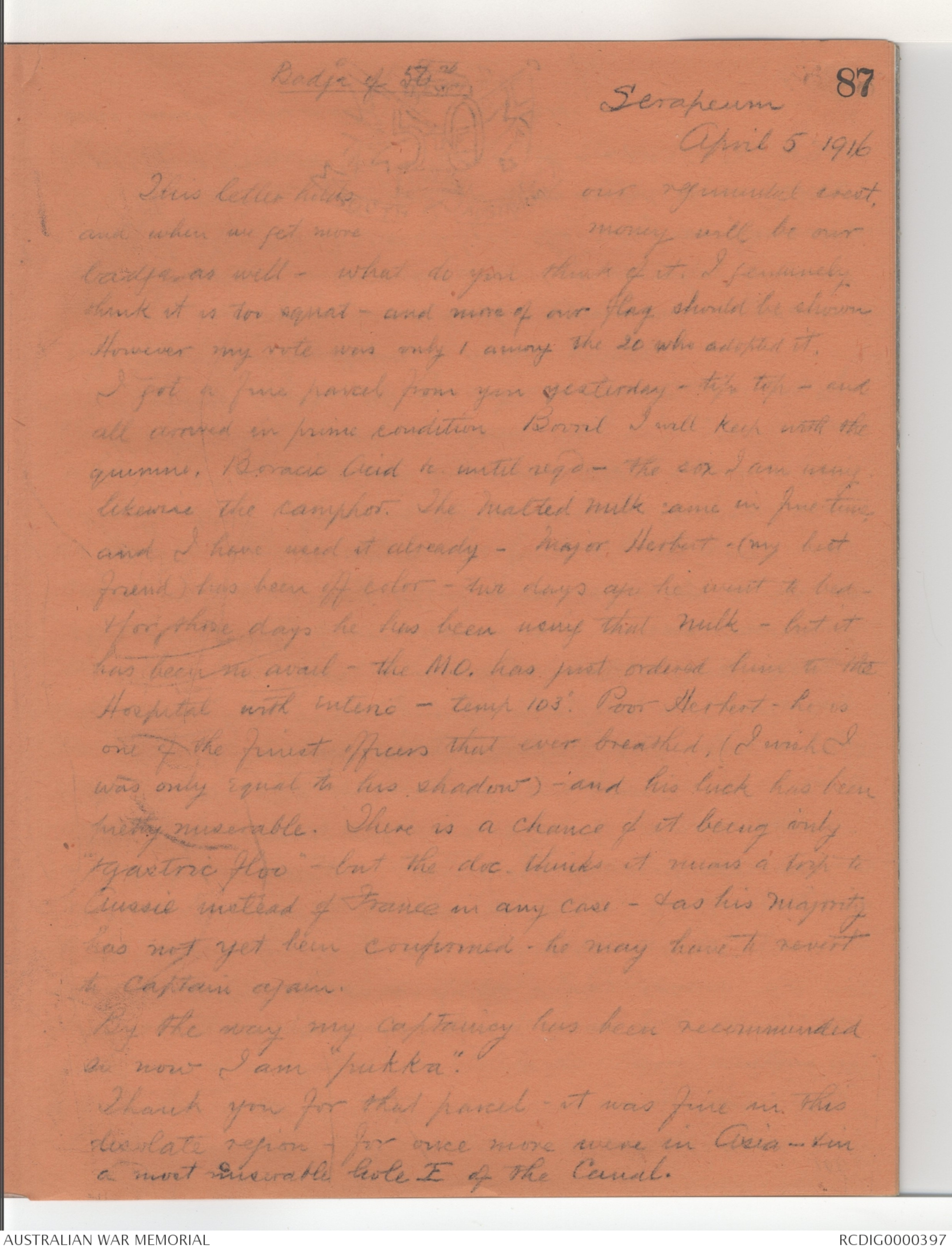 This letter holds our regimental crest