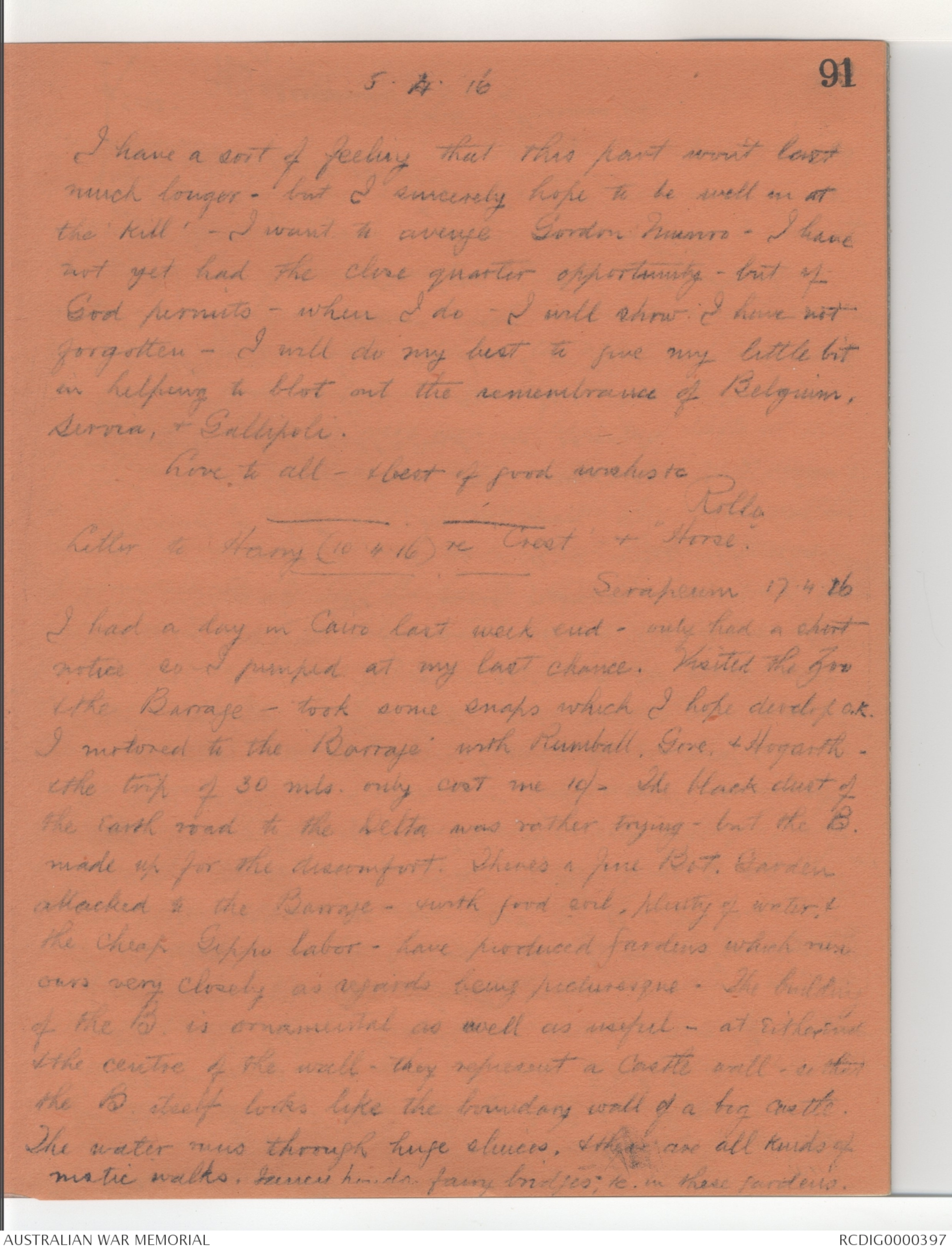 Letterbook for Harold Edwin Salisbury Armitage, 1915-1916 - Part 5