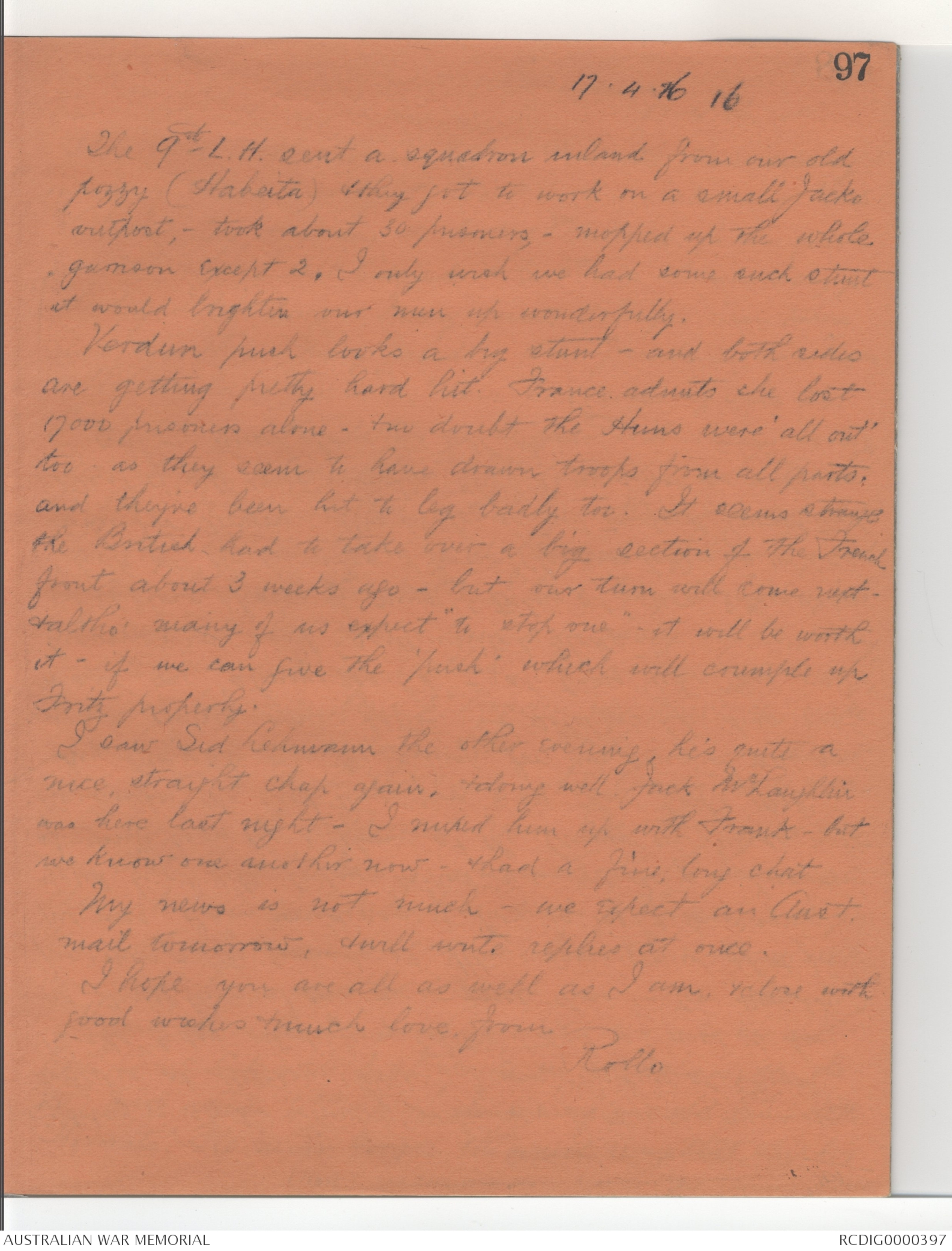 Good wishes & much love fr Rollo
