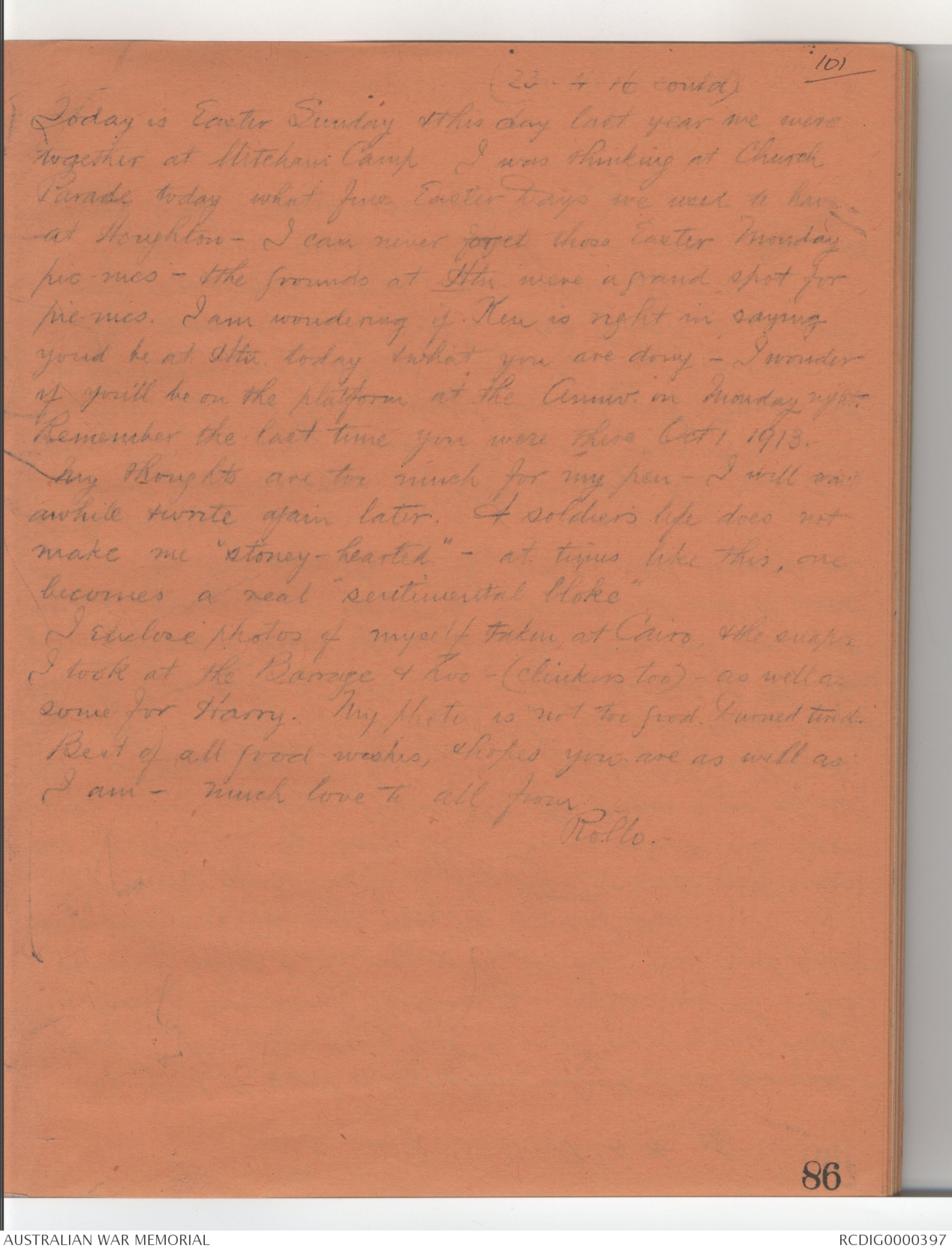 a letter he's sorry he won't see me at Easter - but I hope
