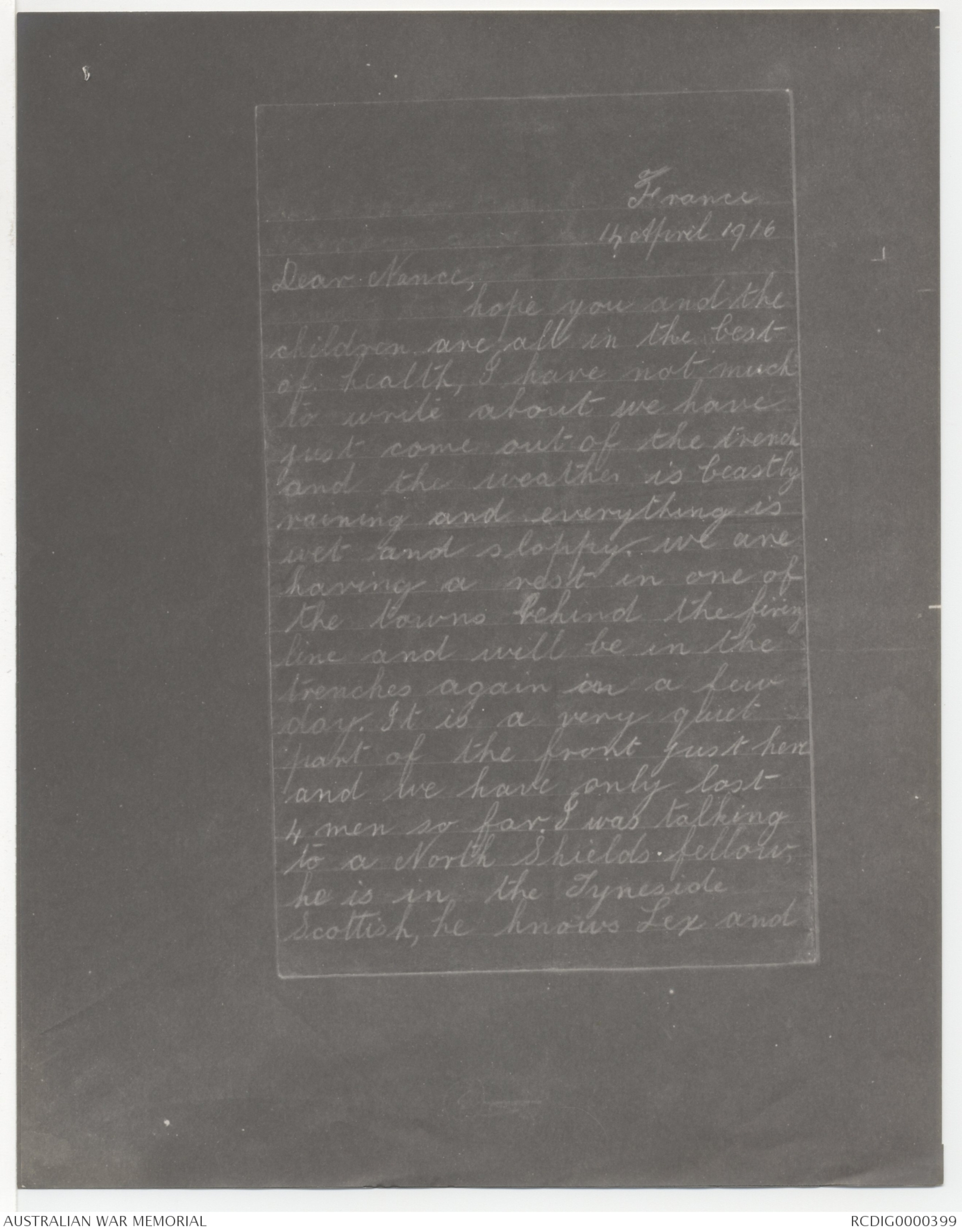 Letters from John Collingwood Angus to his Sister, 1915-1916