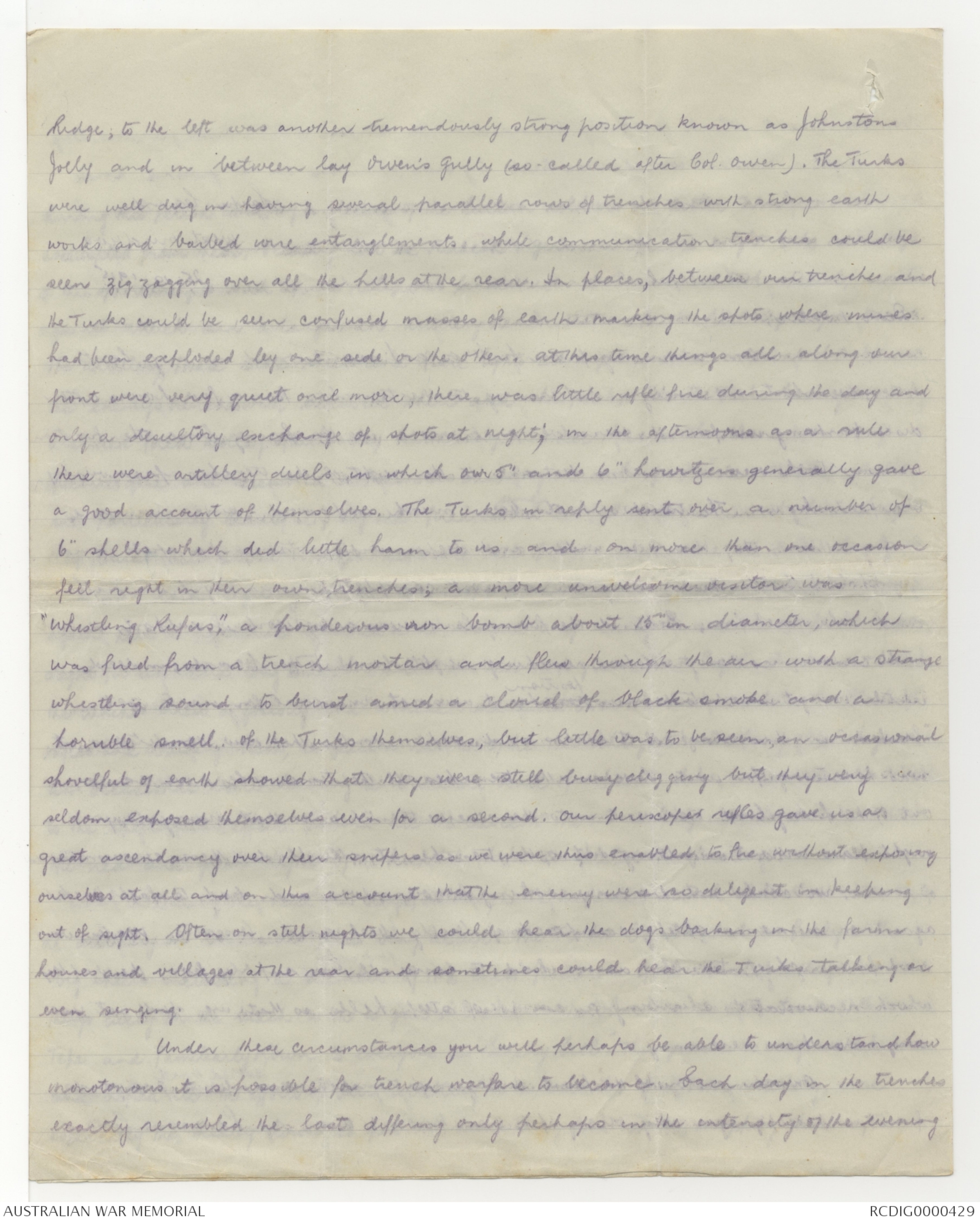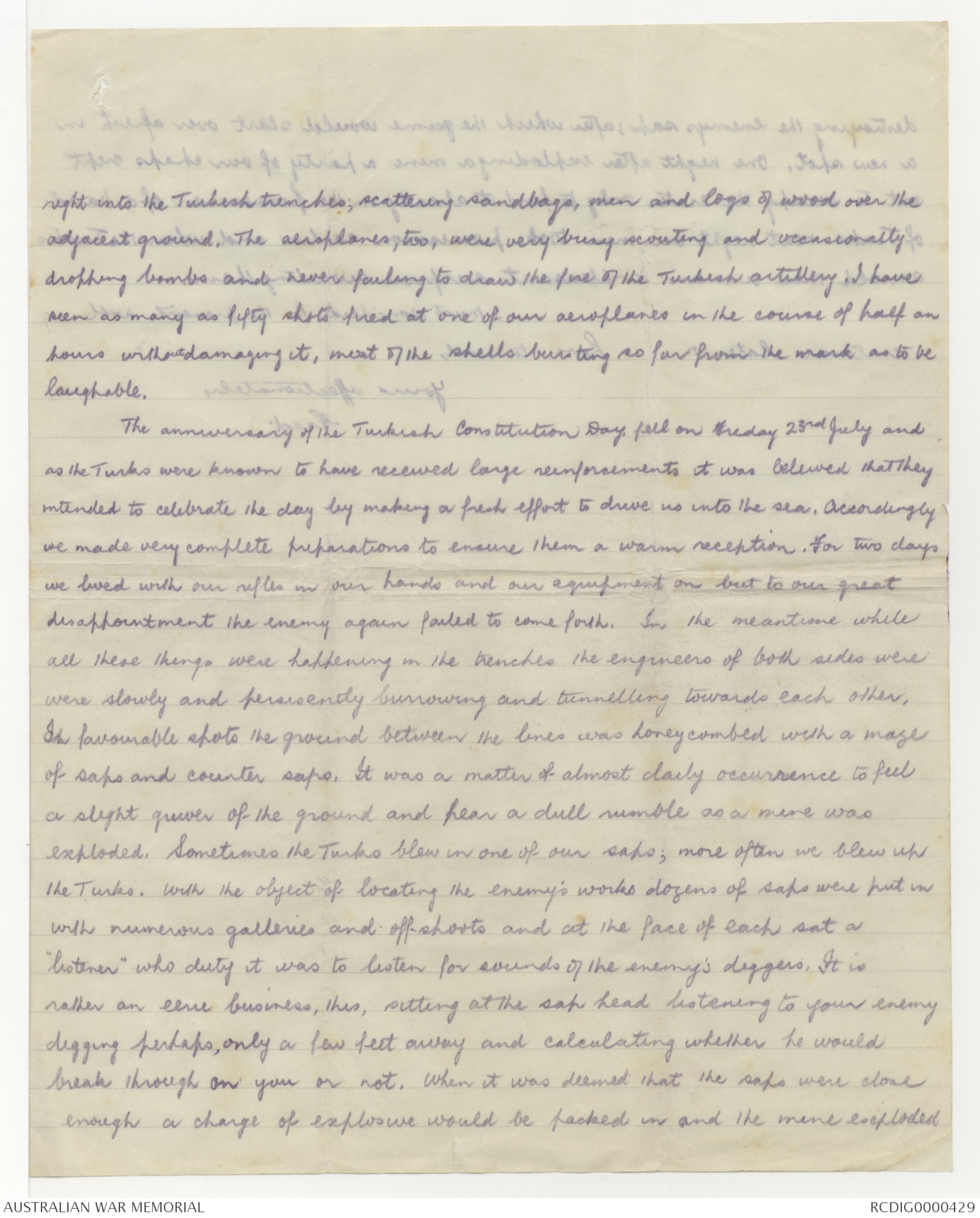 unusual activity would inevitably draw the fire of the Turkish, artillery on us most of
