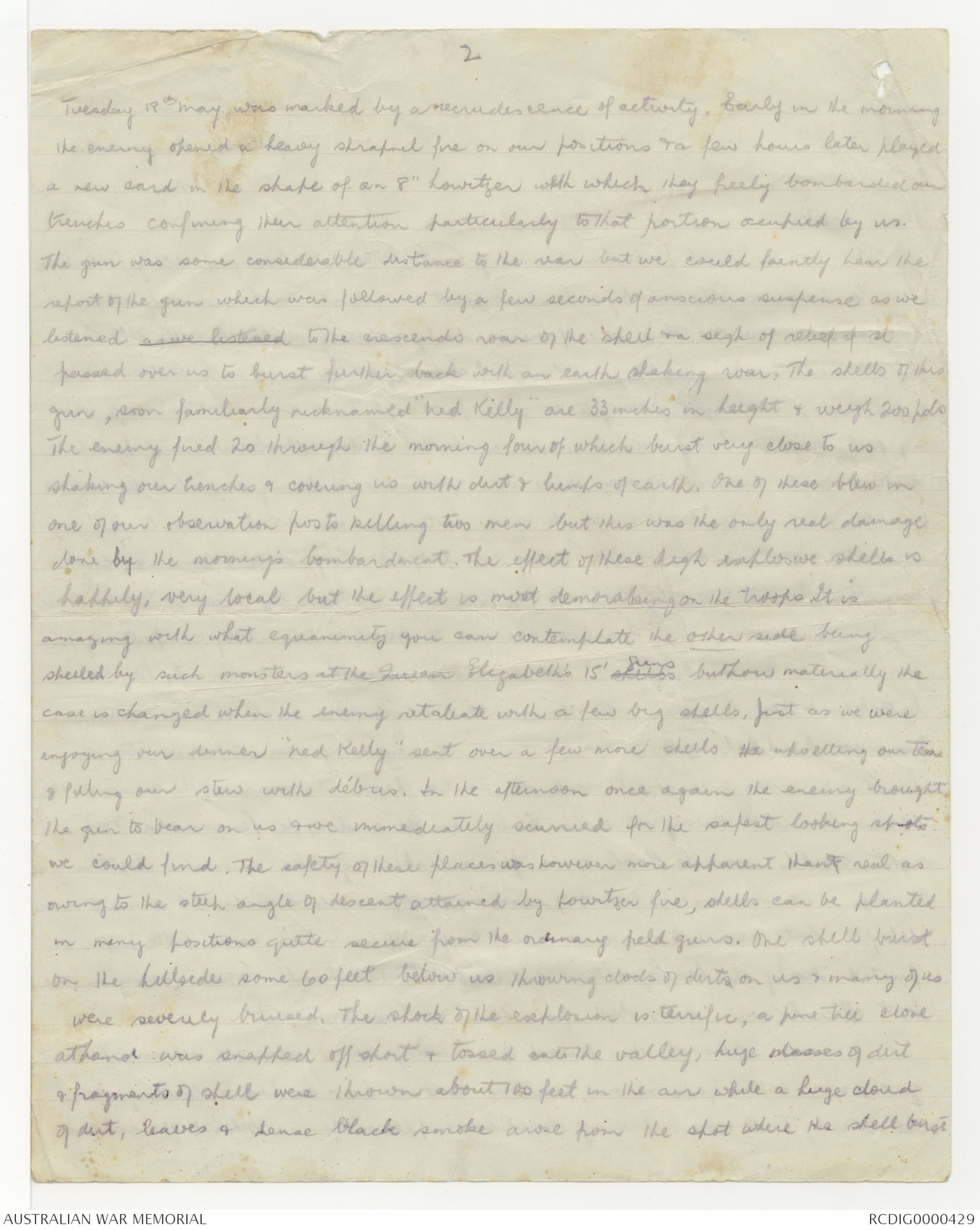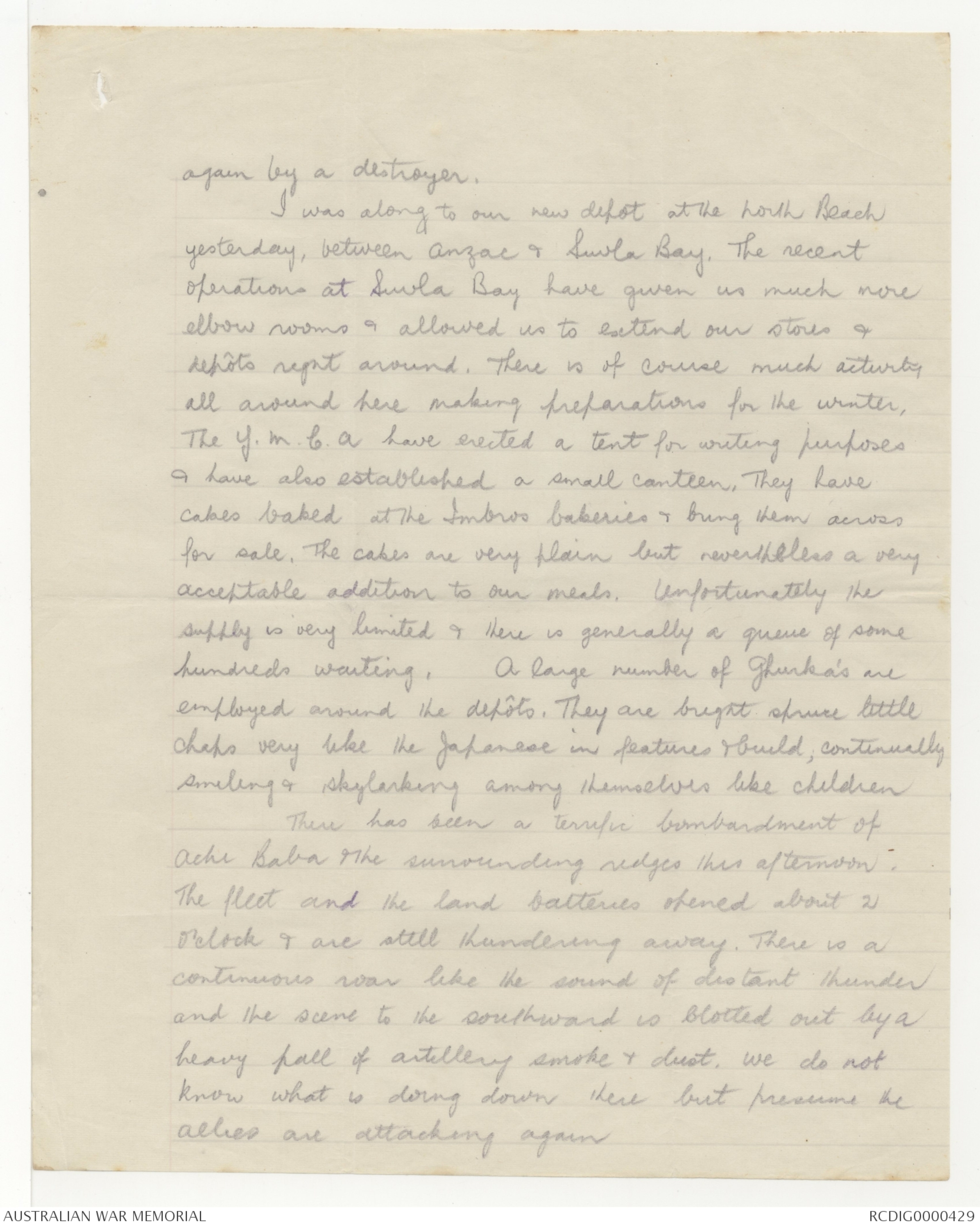 18 pounders & two 6" howitzers which did much damage to the Turkish trenches