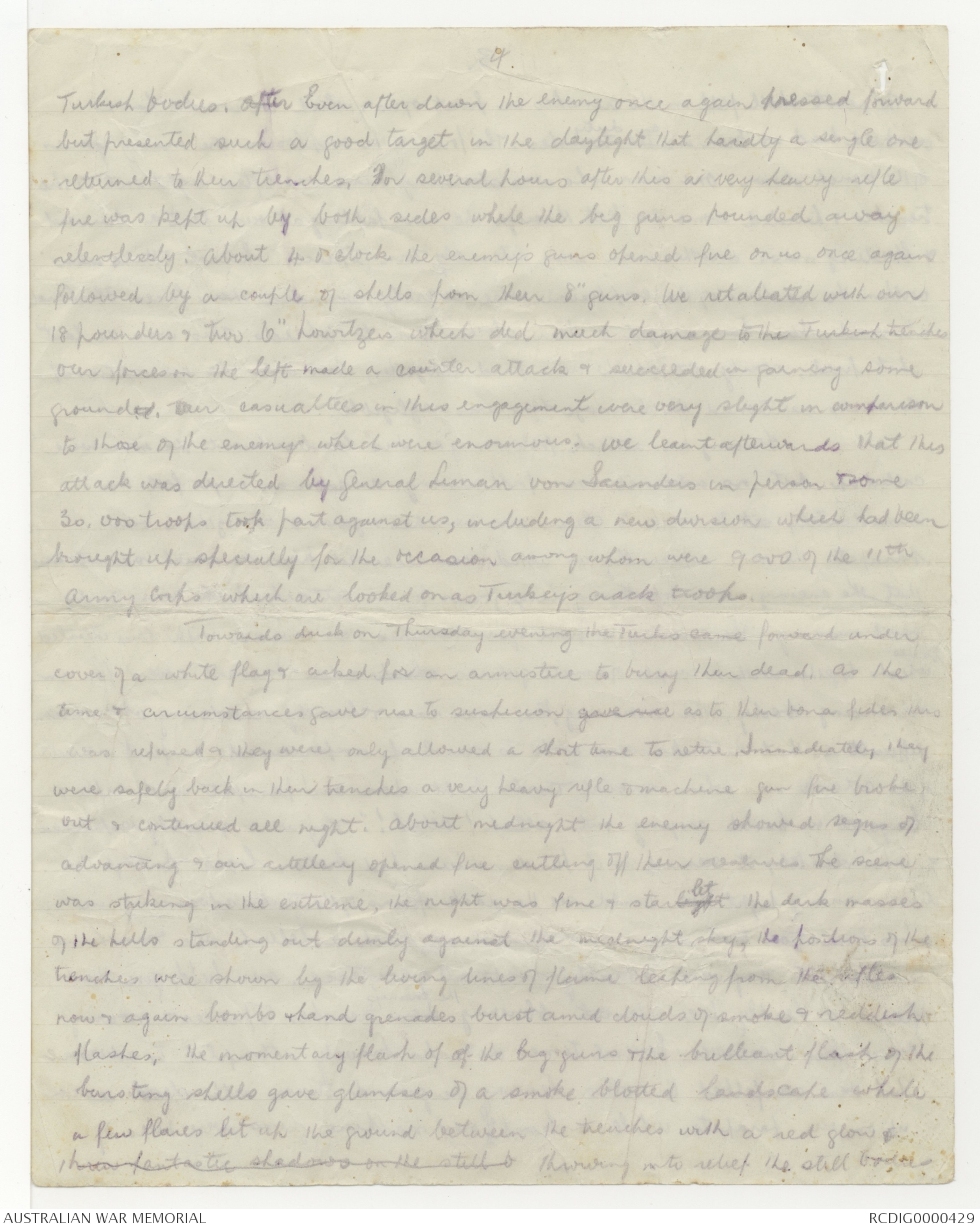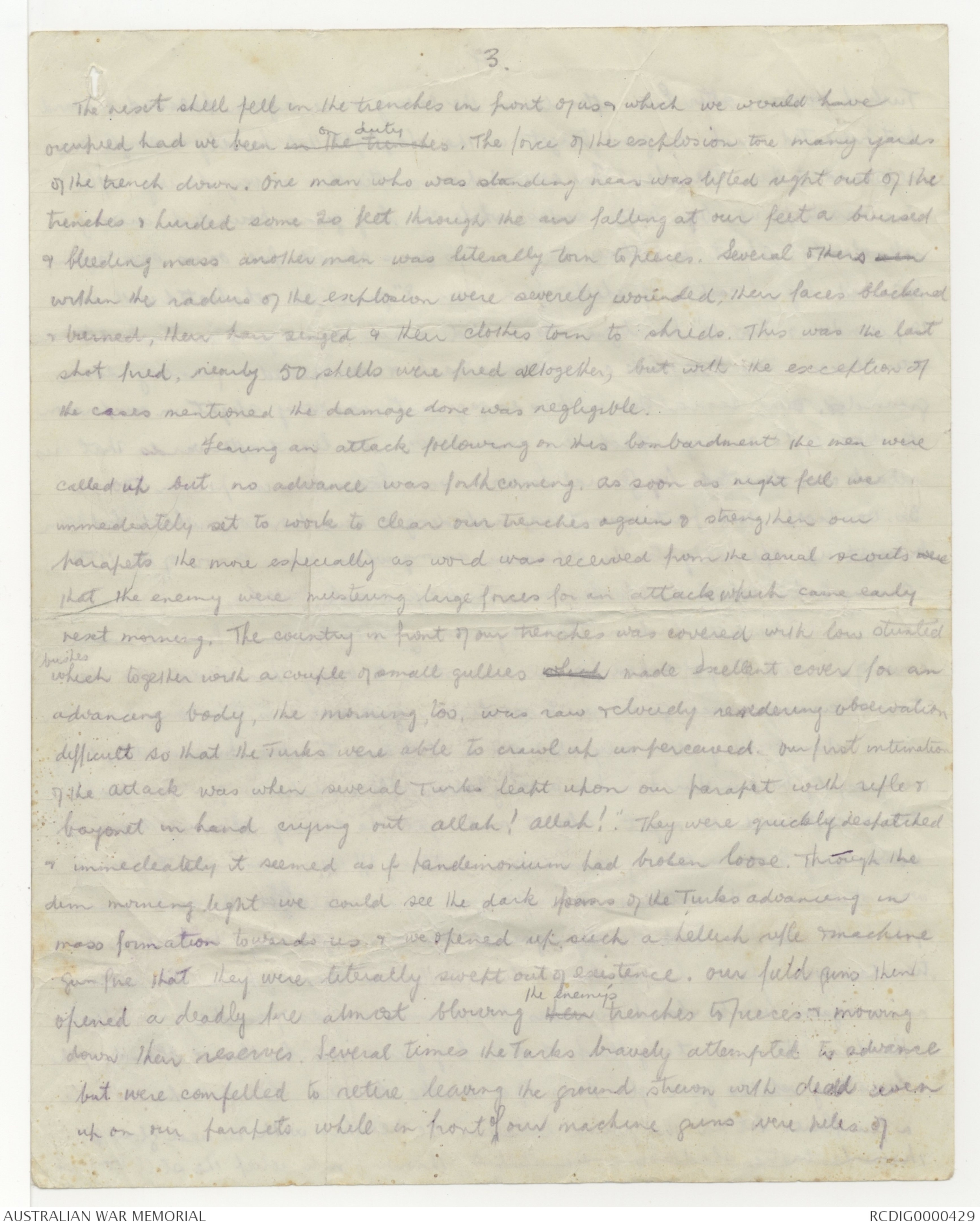 of the attack was when several Turks leapt upon our parapet with rifle &