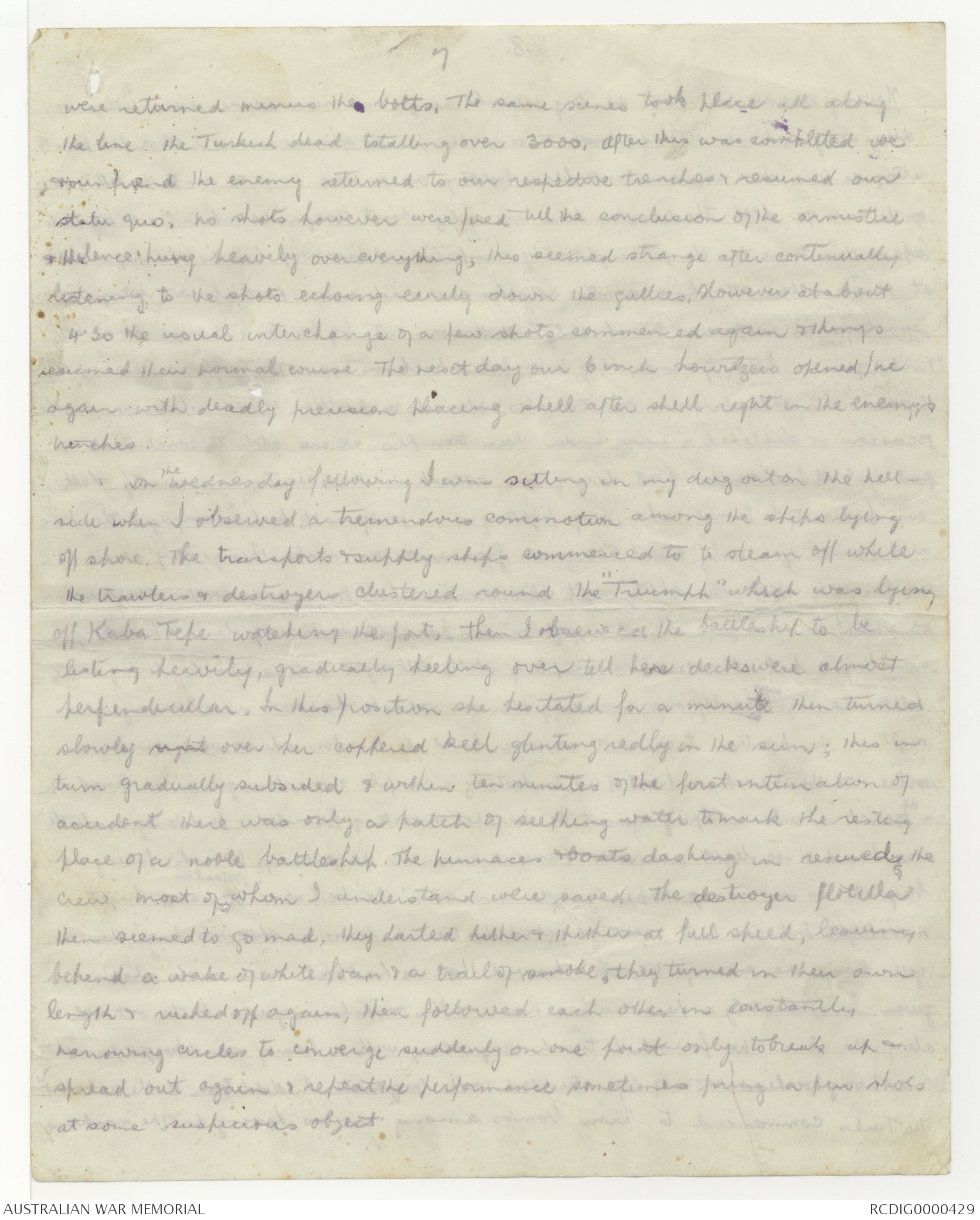 off Kaba Tepe watching the fort. Then I observed the battleship to be