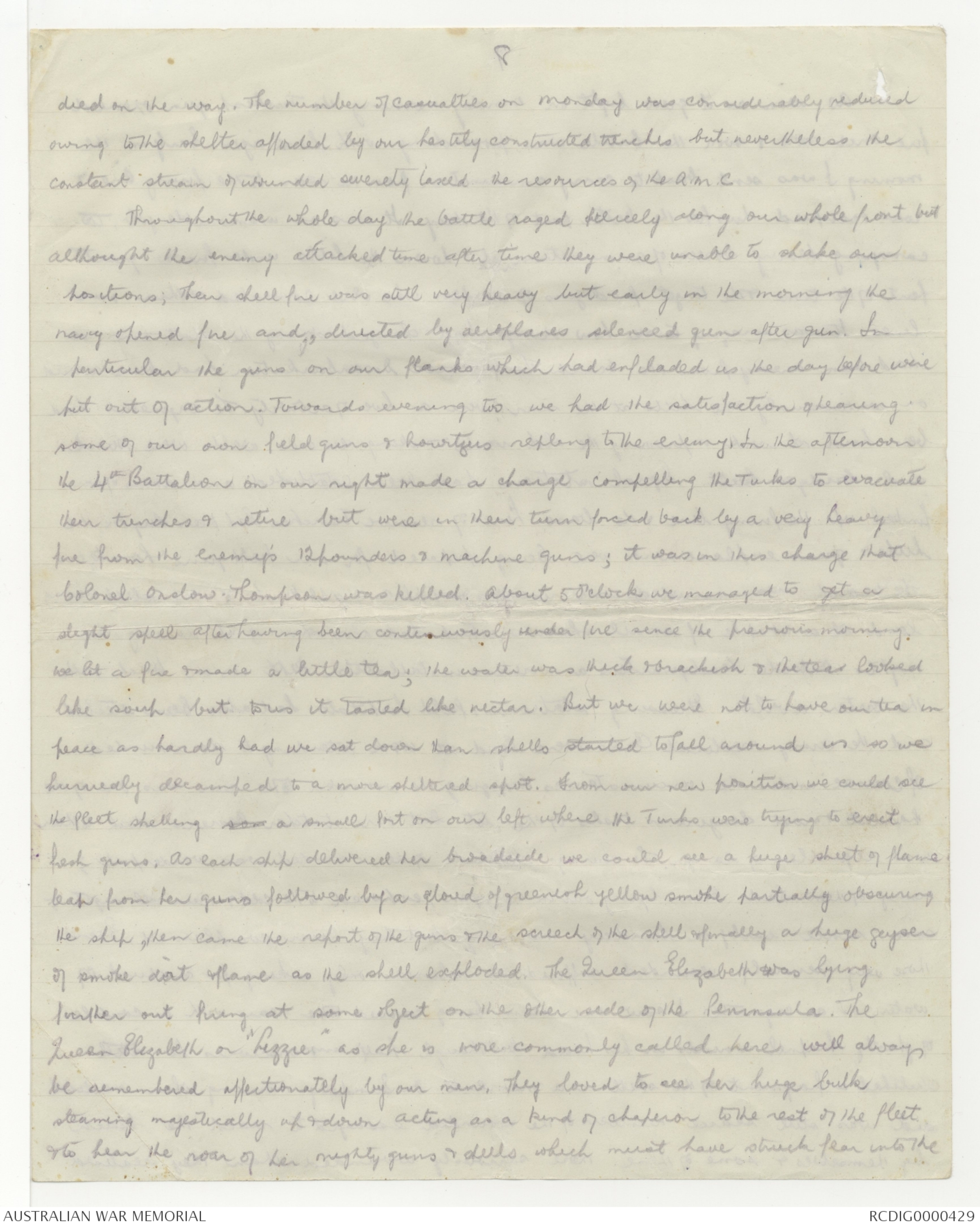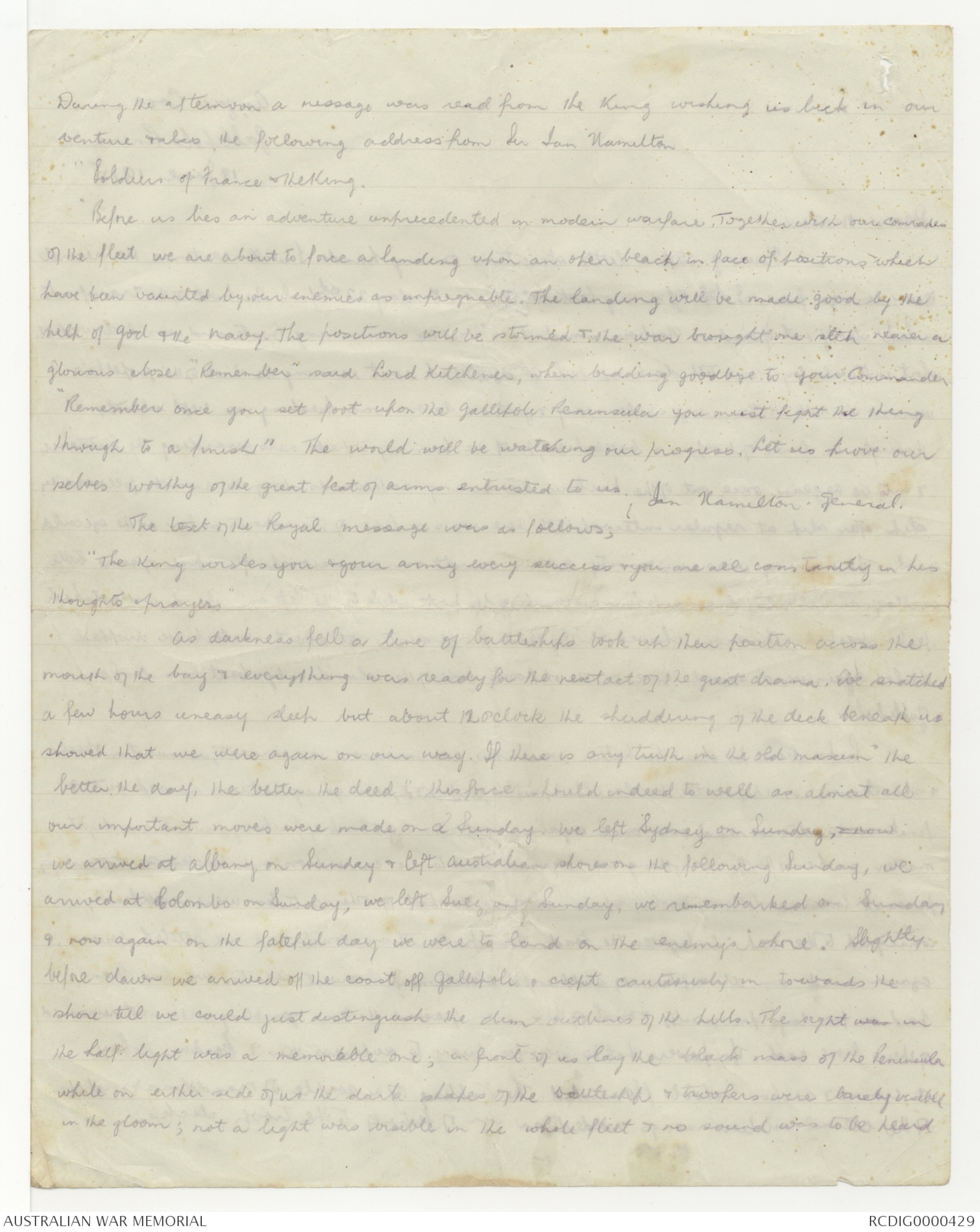 "Remember once your set foot upon the Gallipoli Peninsula you must fight the thing