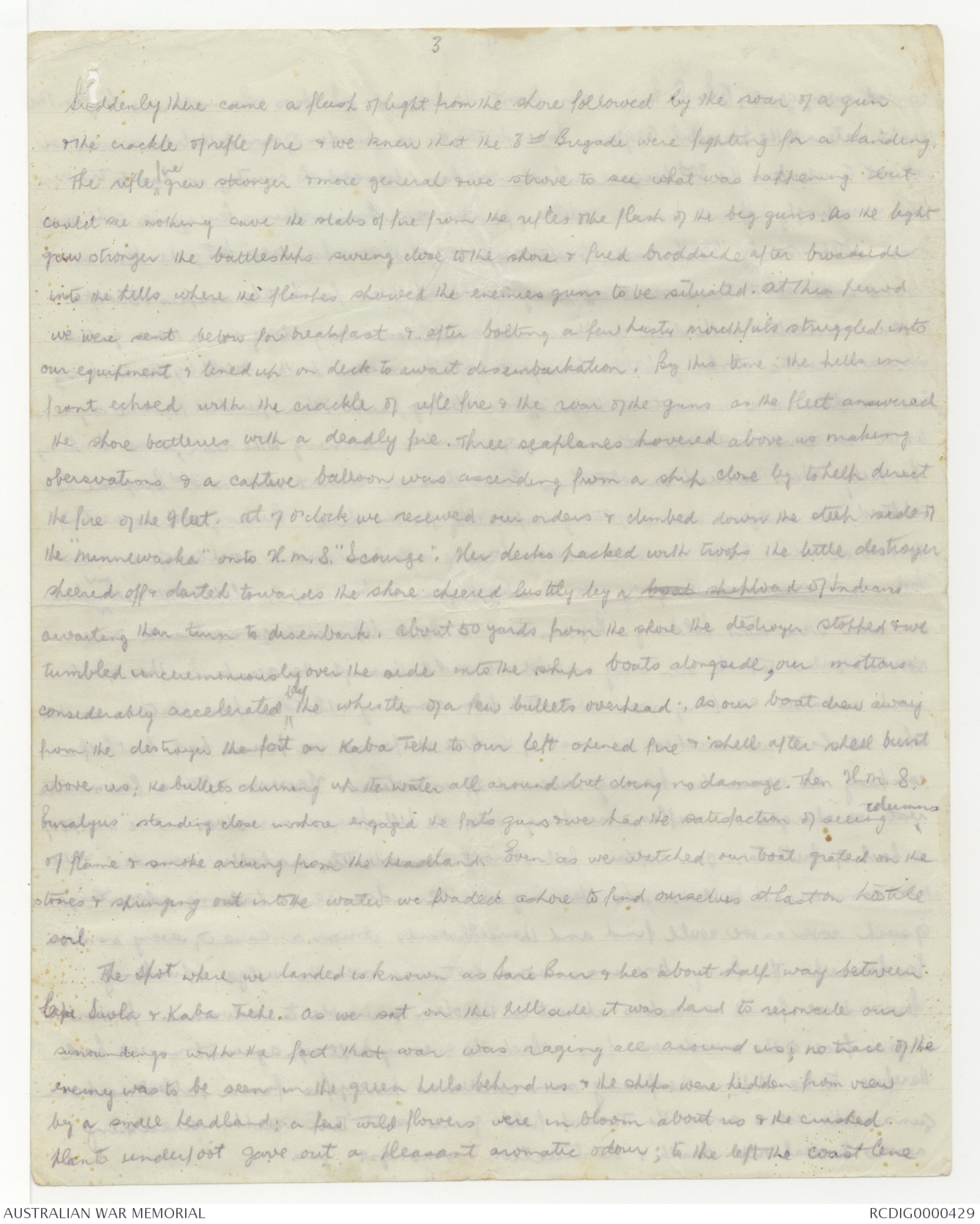 the crackle of rifle fire & we knew that the 3rd Brigade were fighting for a landing.