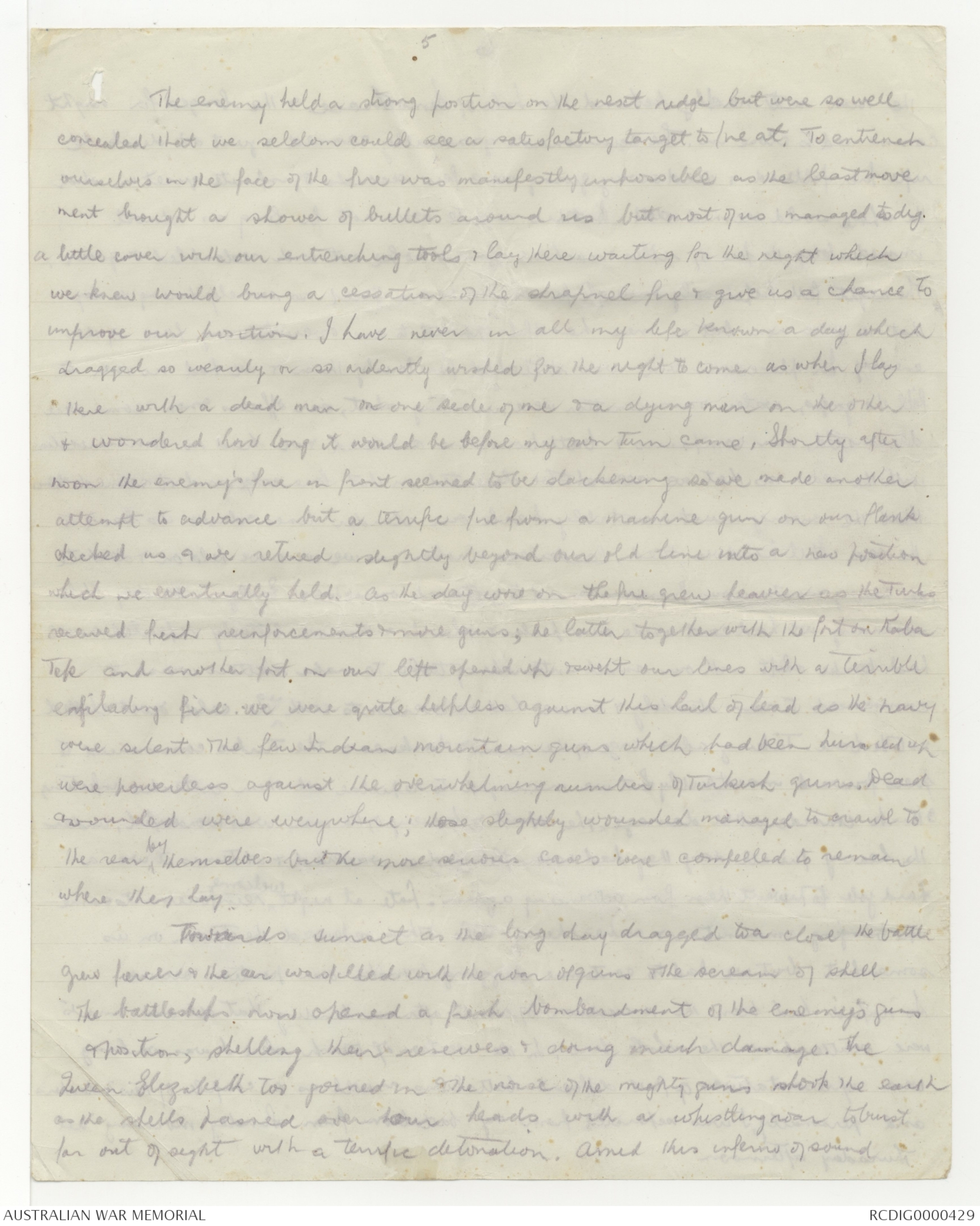 therefore to be still, in the glaring sun under a heavy fire from rifles & machine