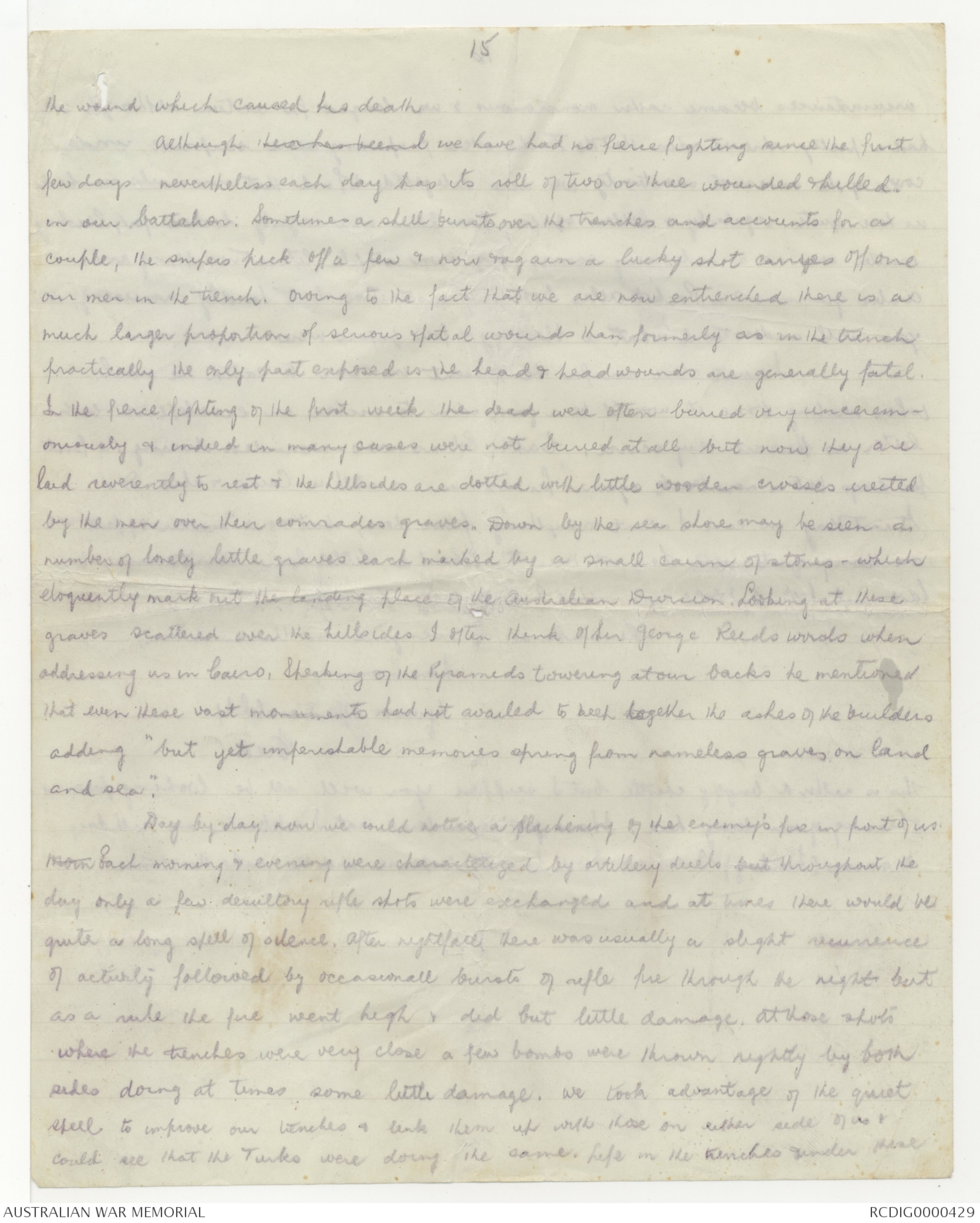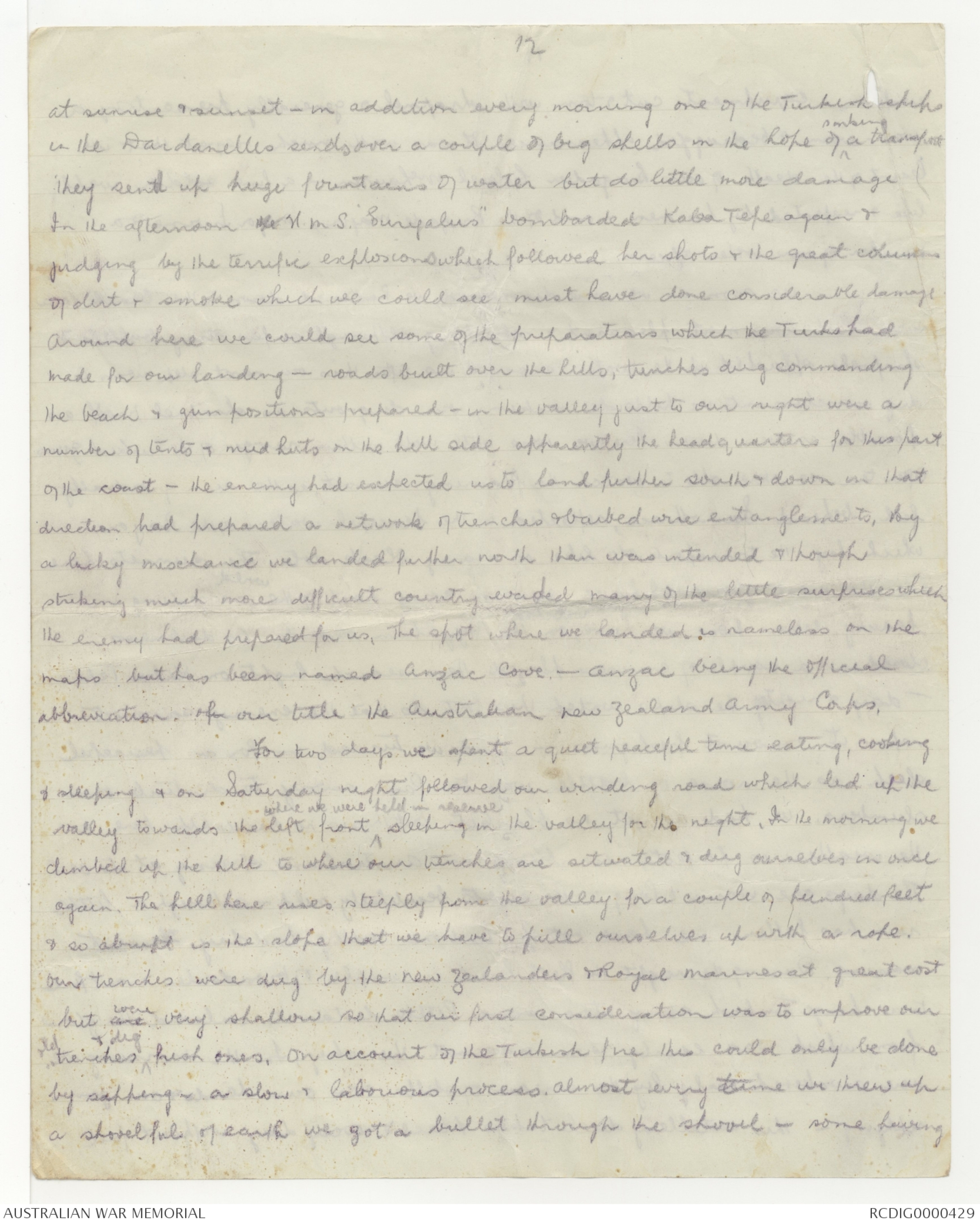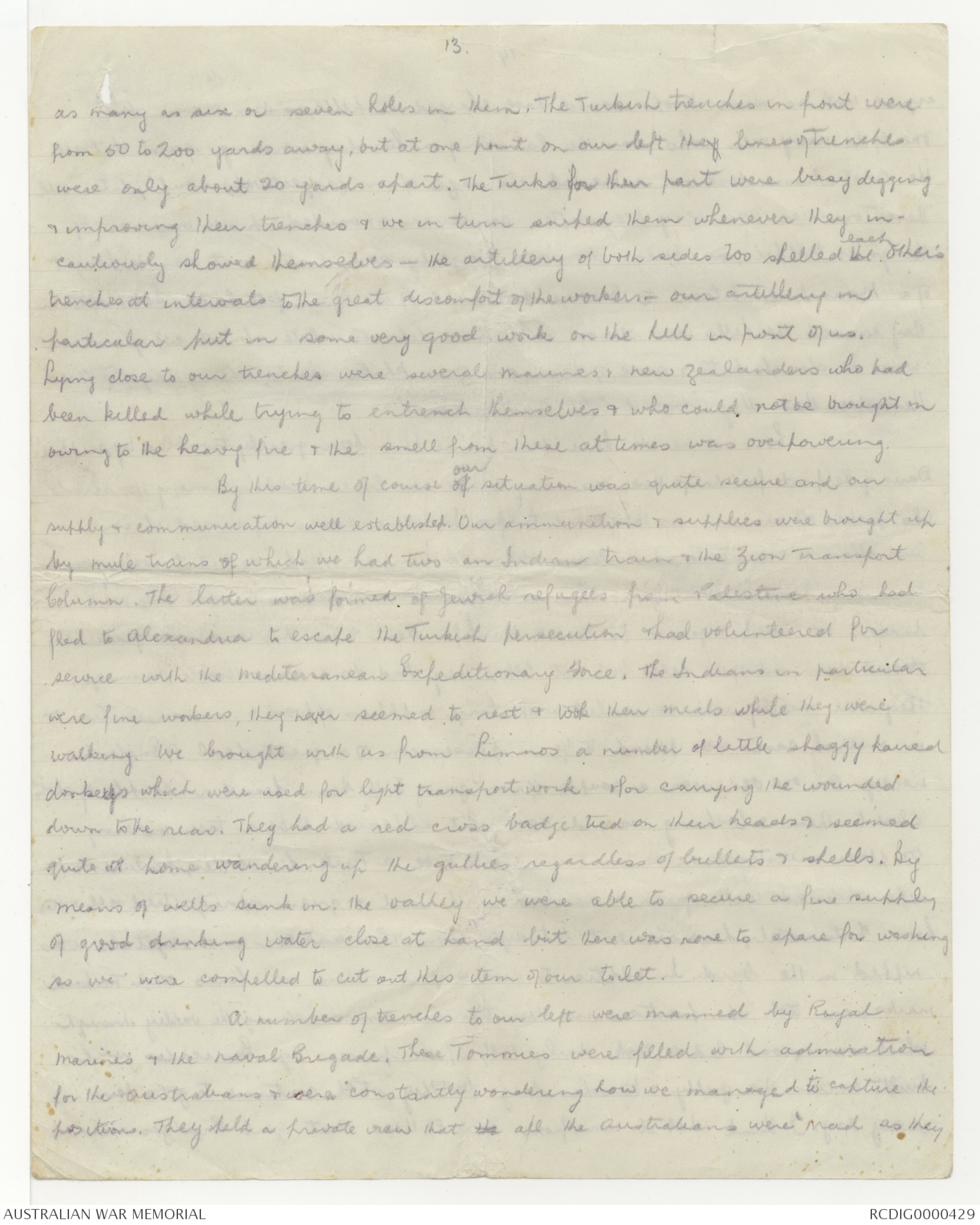 Our trenches were dug by the New Zealanders & Royal Marines at great cost