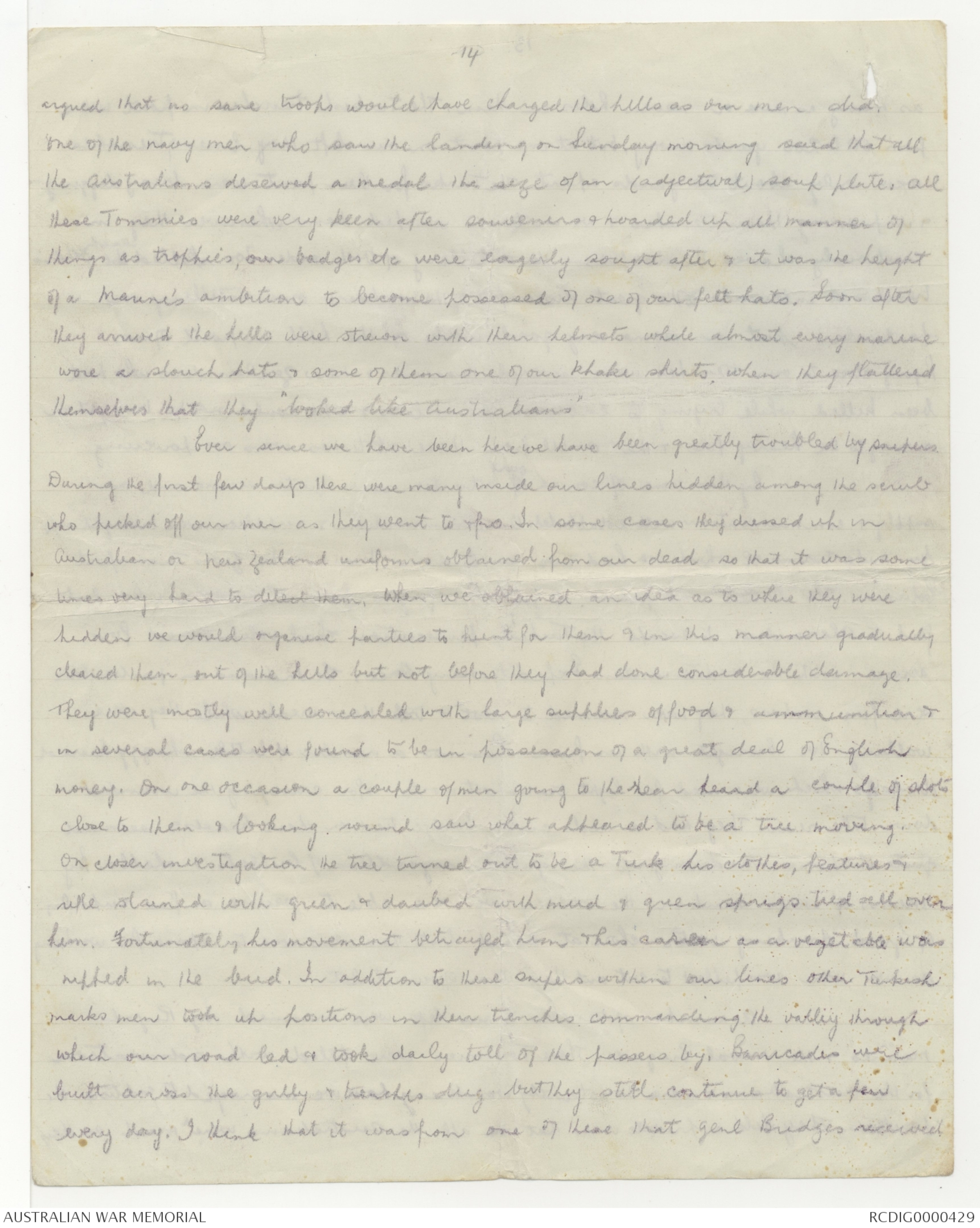 Australian or New Zealand uniforms obtained from our dead so that it was some