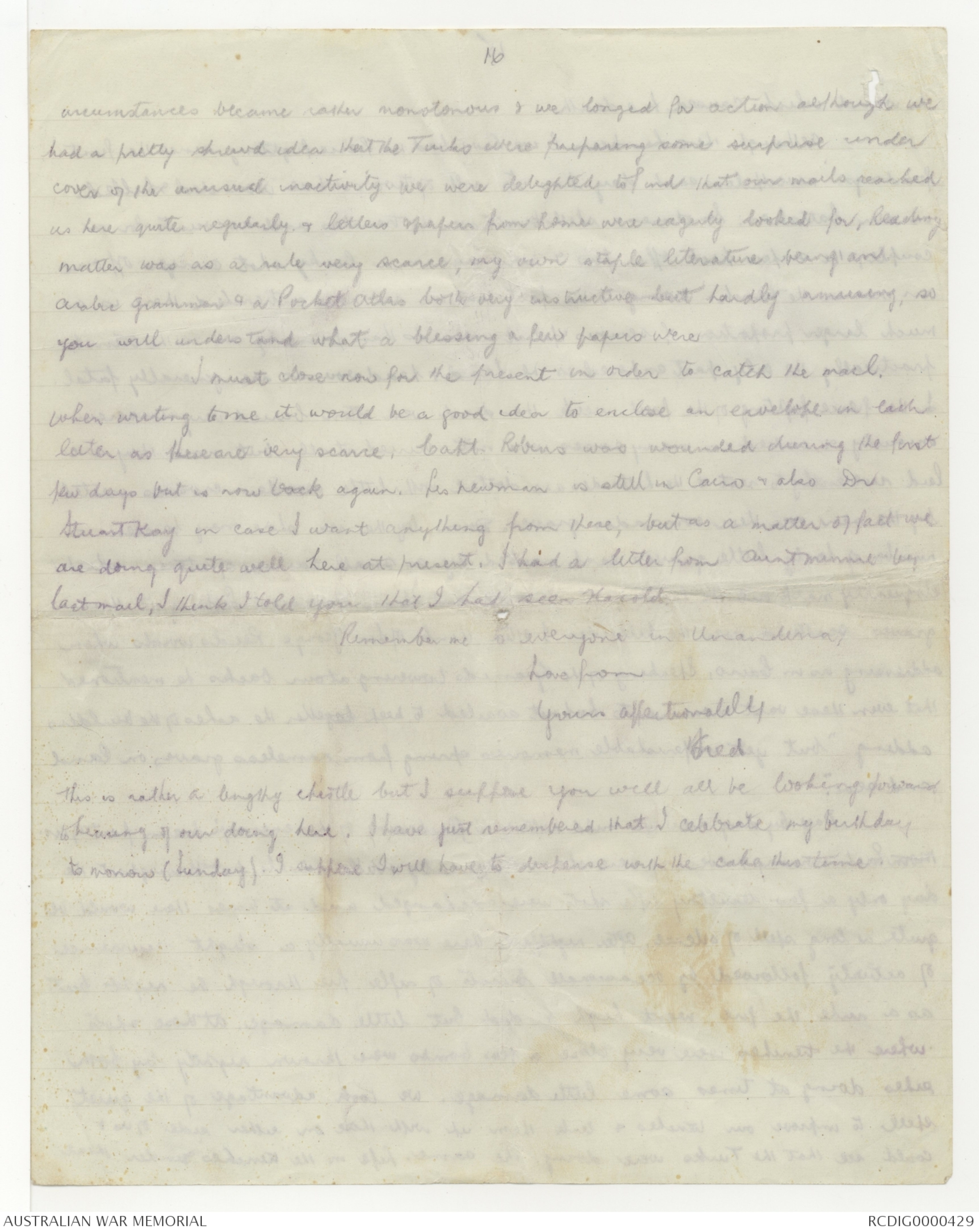 Robins has gone back to Egypt attached to the staff, where he will remain till we return. Am