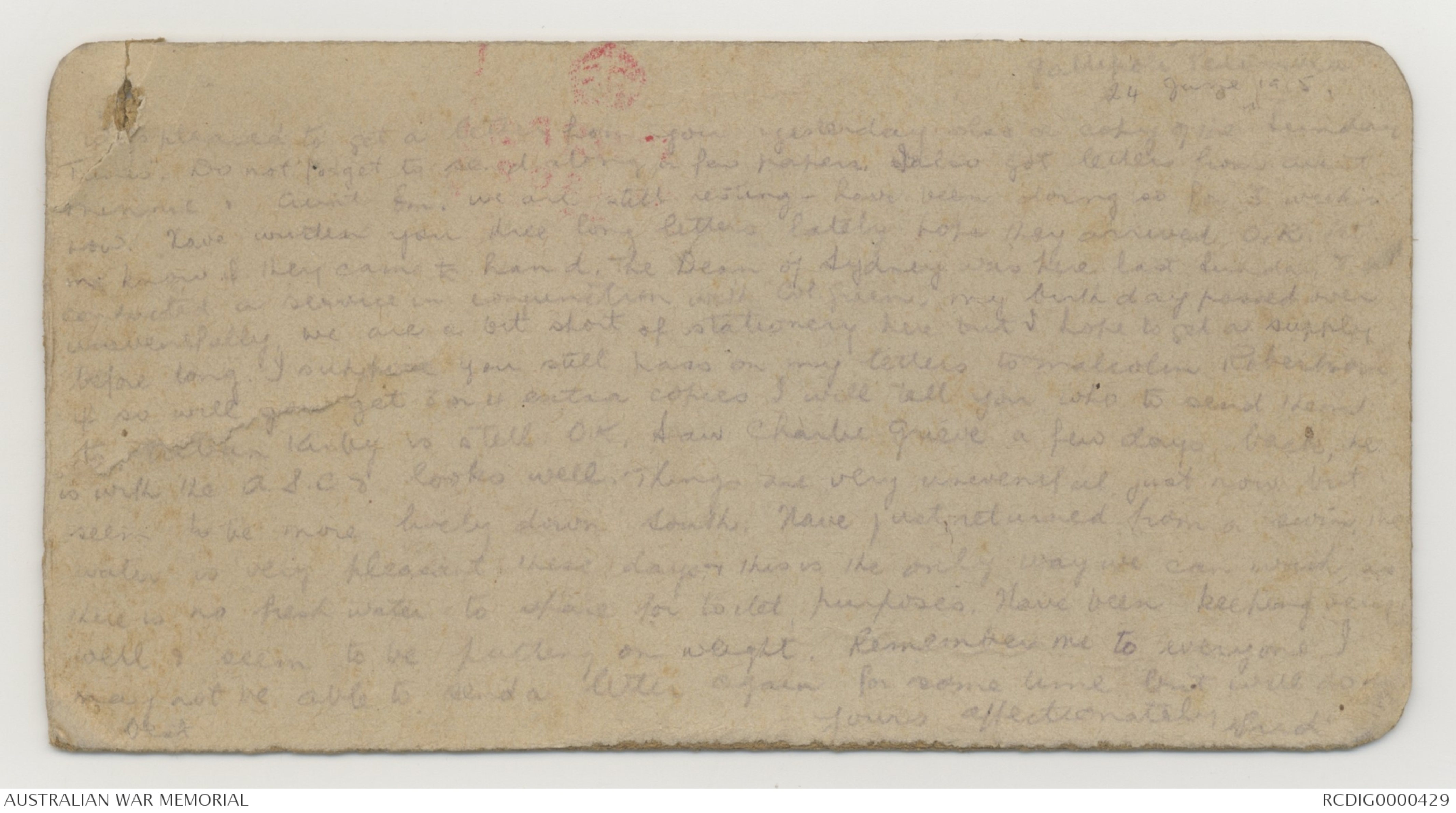So pleased to get a letter from you yesterday, also a copy of the Sunday