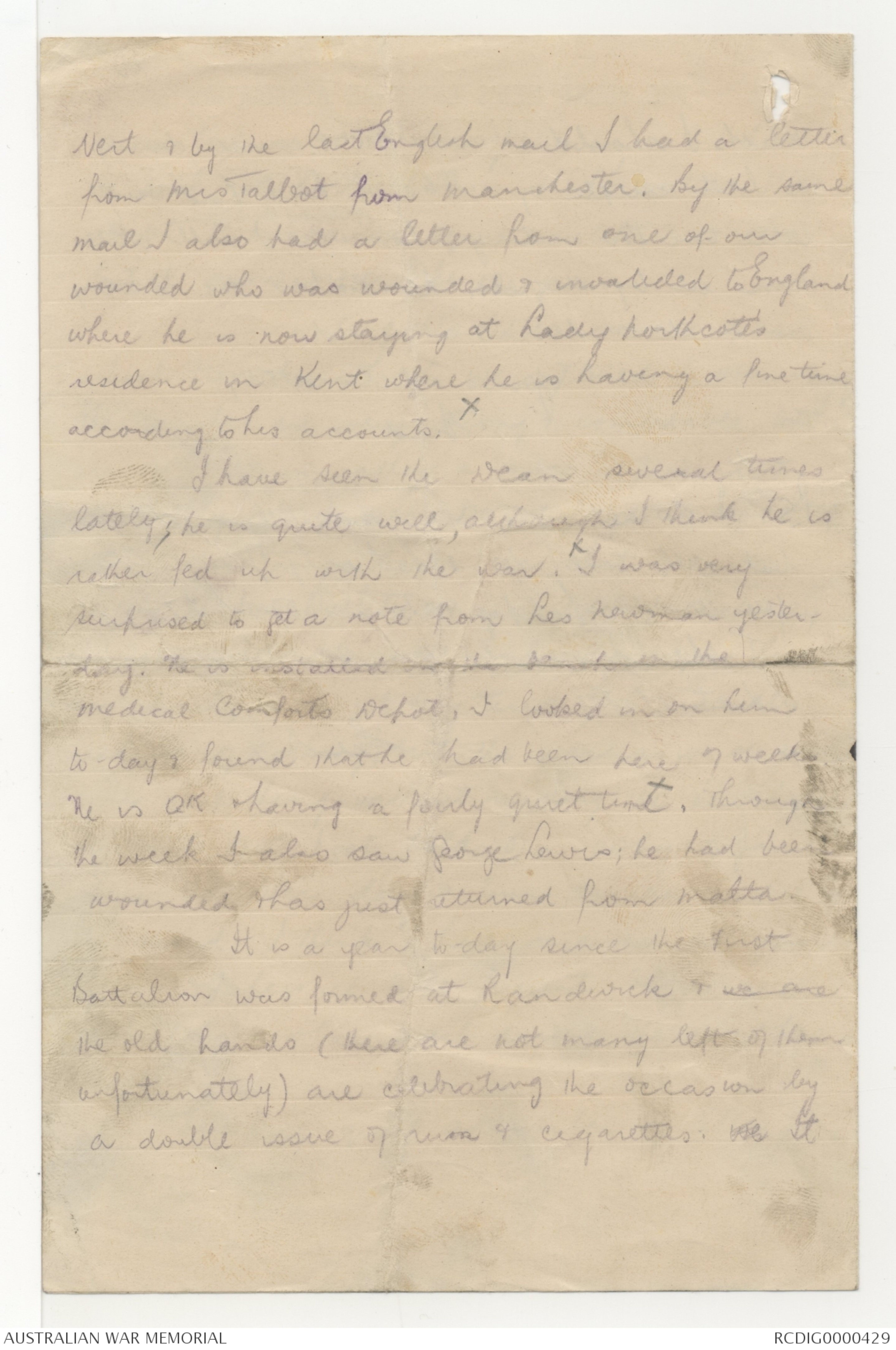 wounded & has just returned from Malta.