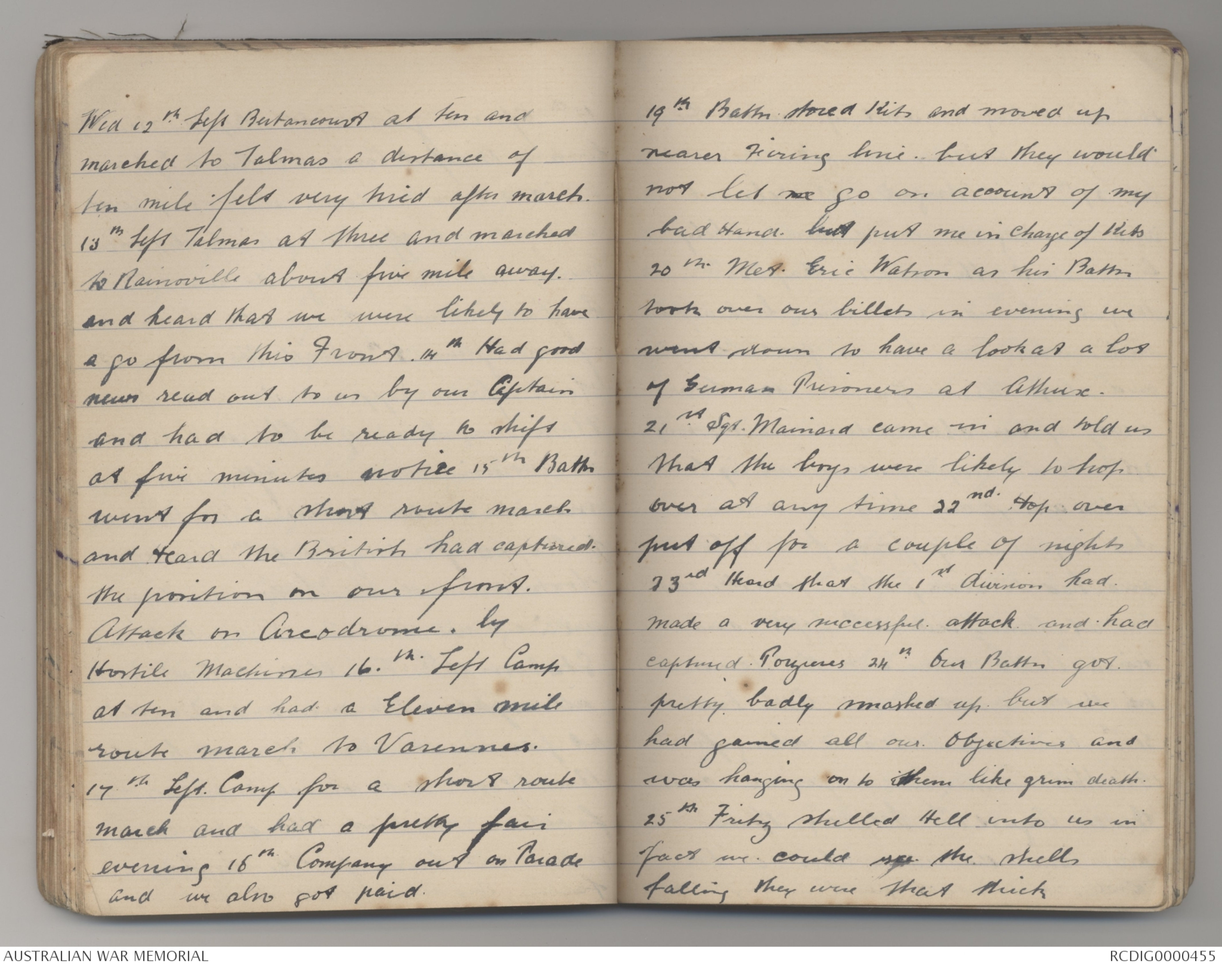 13th Left Talmas at three and marched