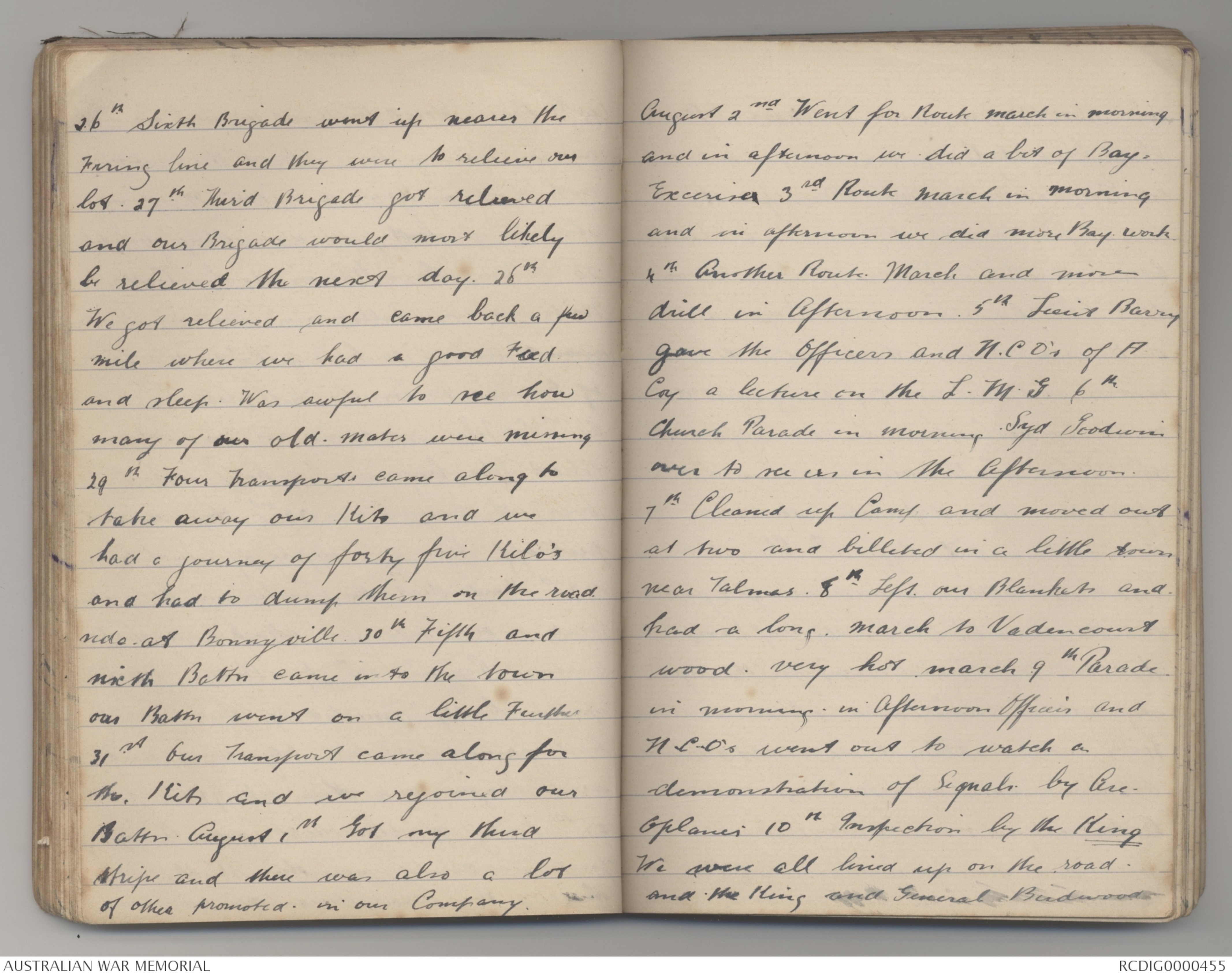 August 2nd Went for Route march in morning