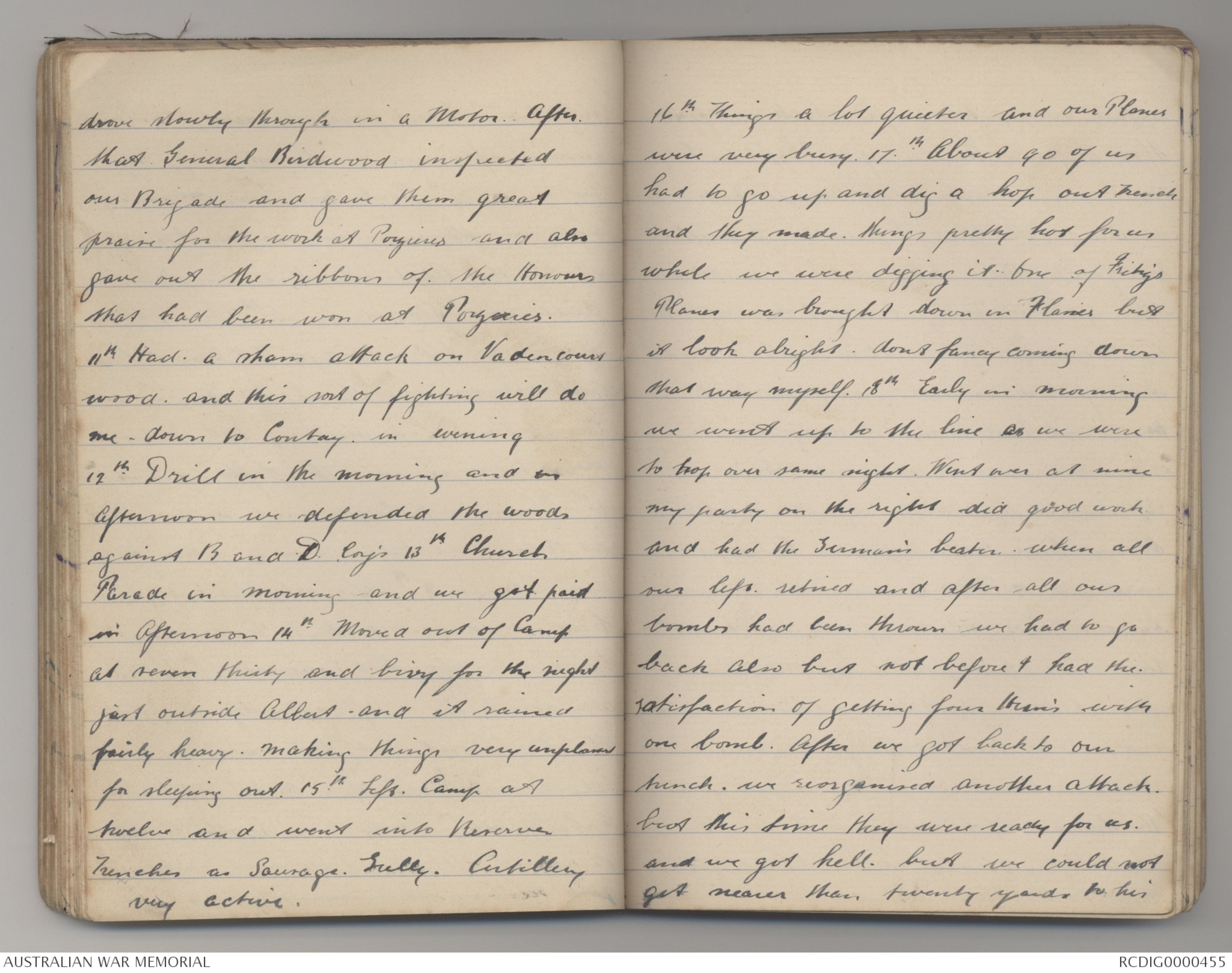 praise for the work at Pozieres and also