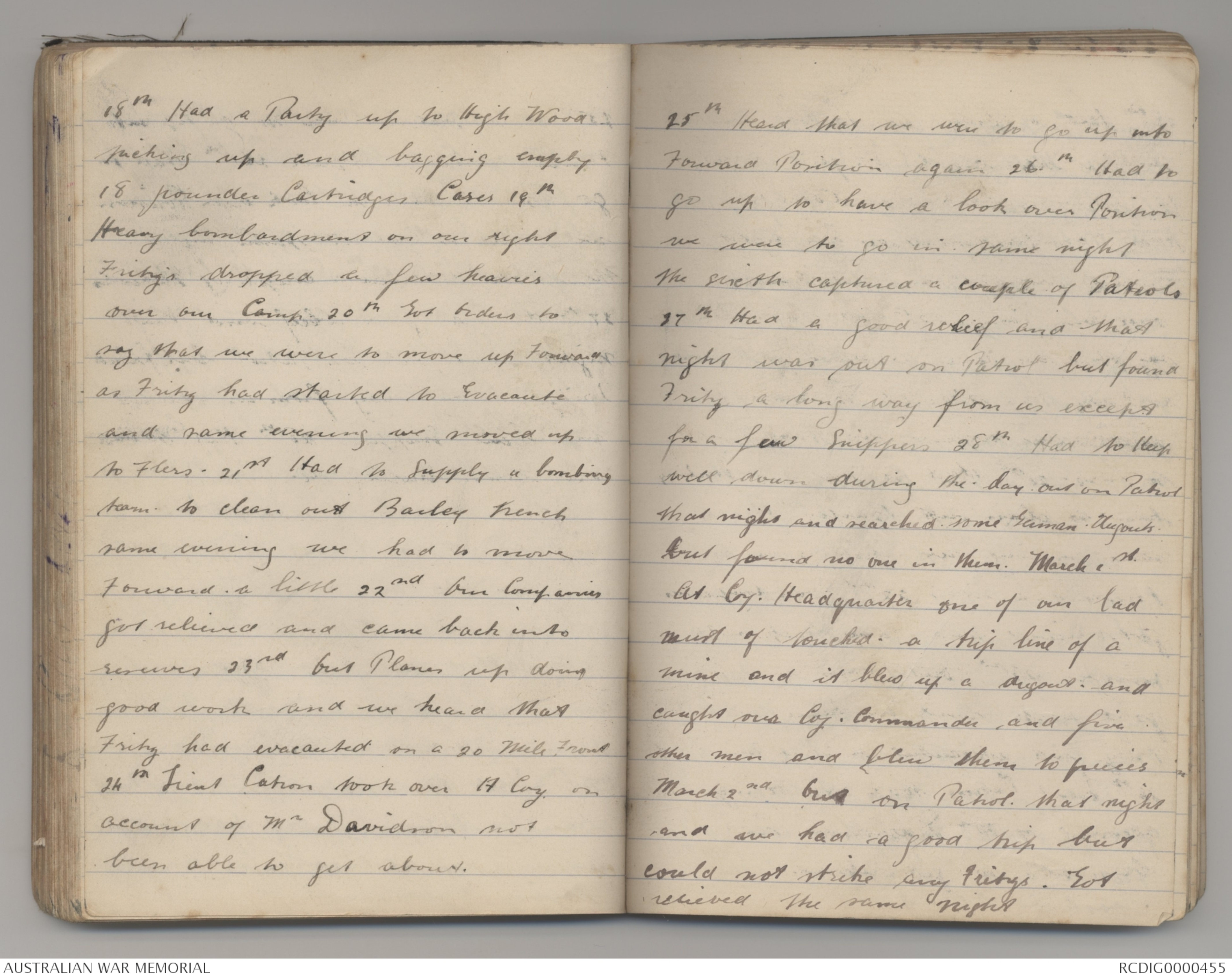 24th Lieut Catron took over A Coy on