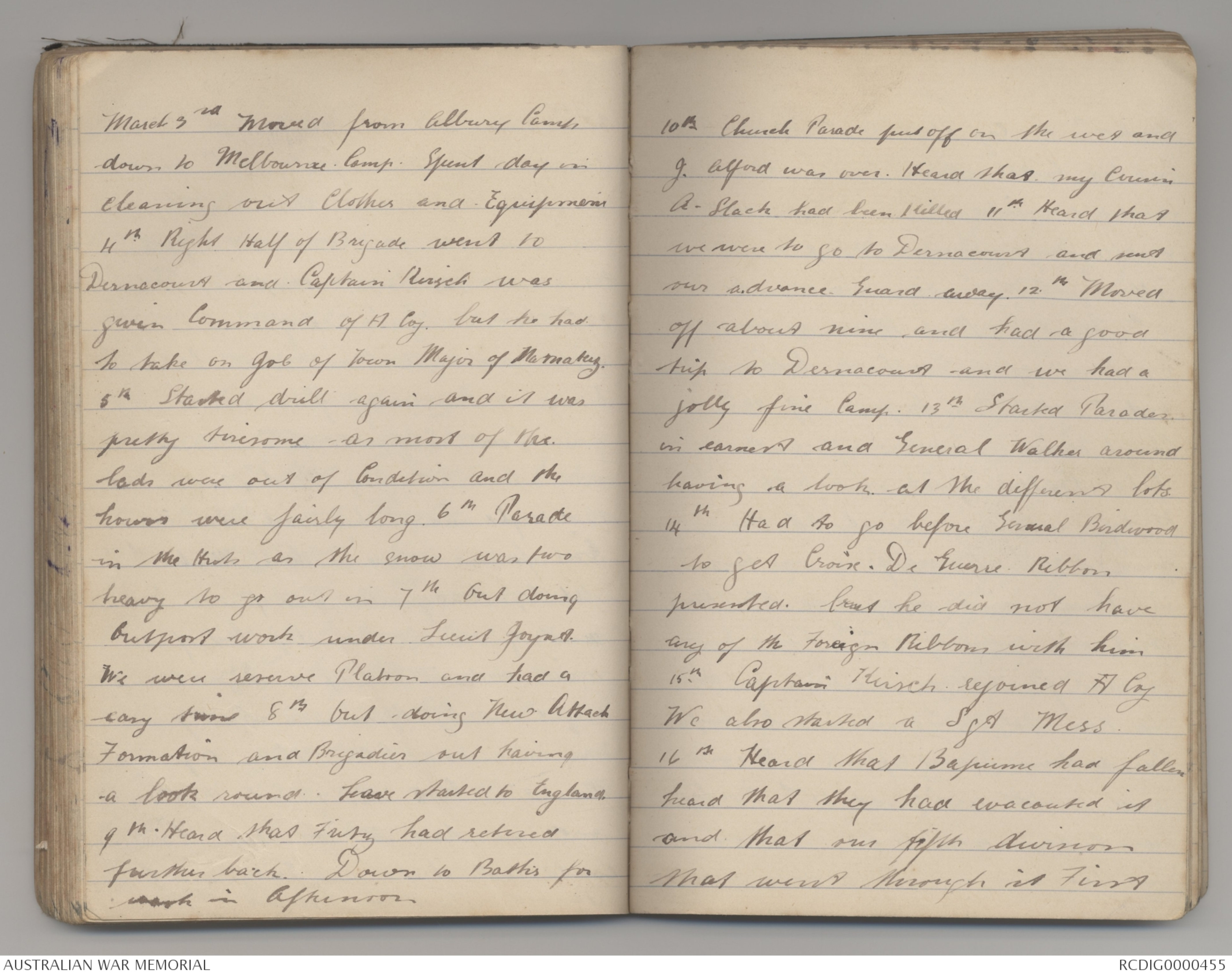 March 3rd Moved from Albury Camp