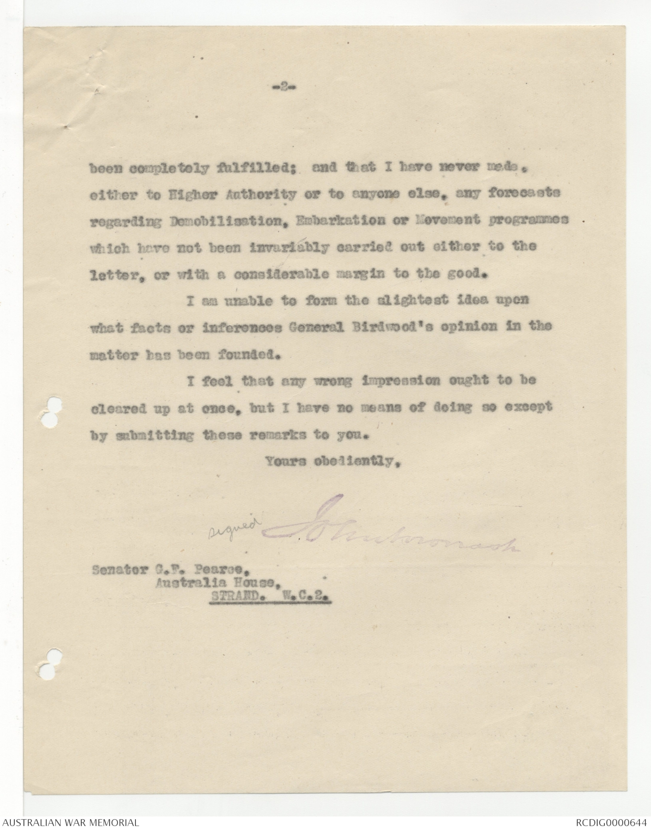 General Sir John Monash, Personal Files Book 23, 24 September - 26 December 1919, Part 5