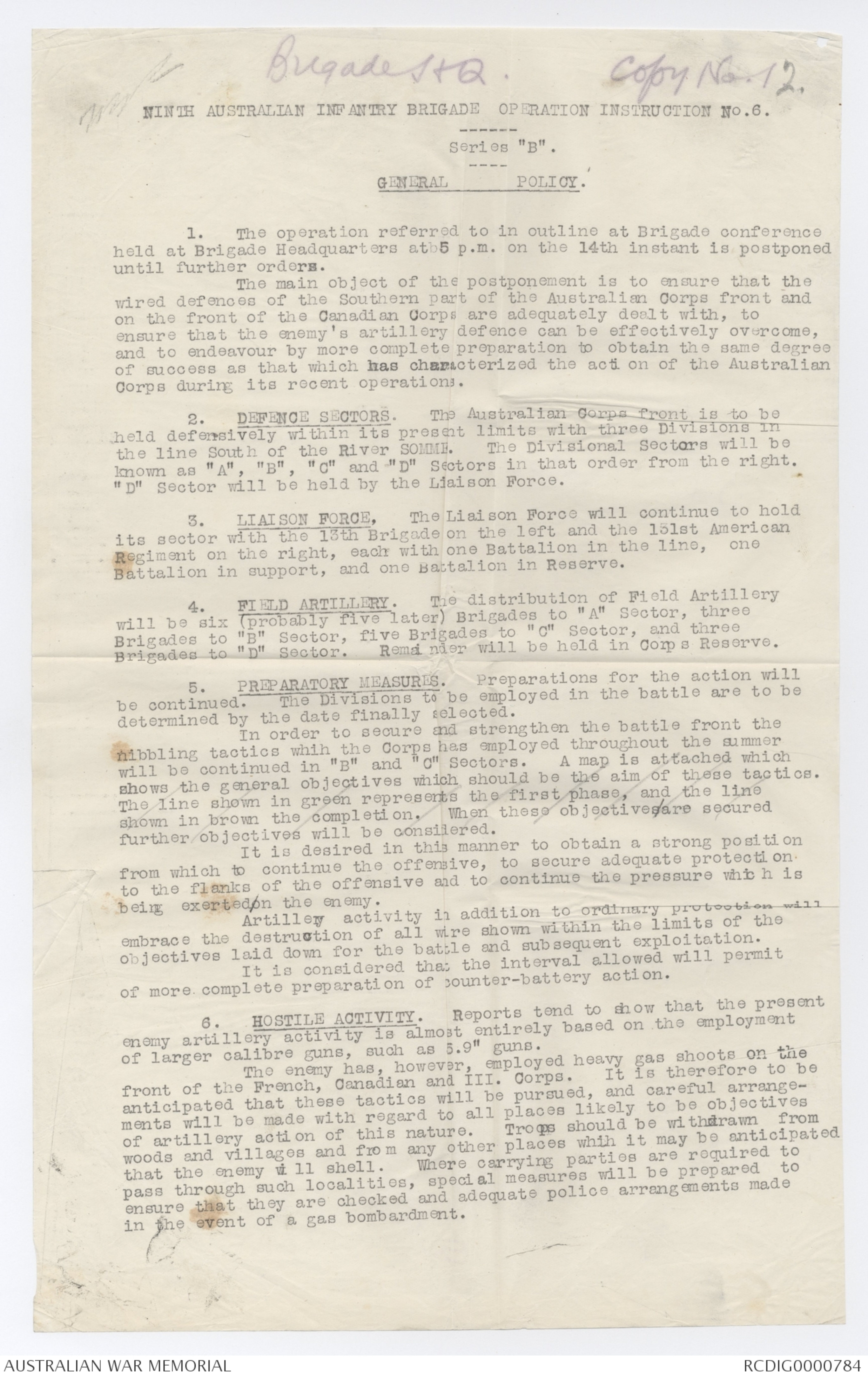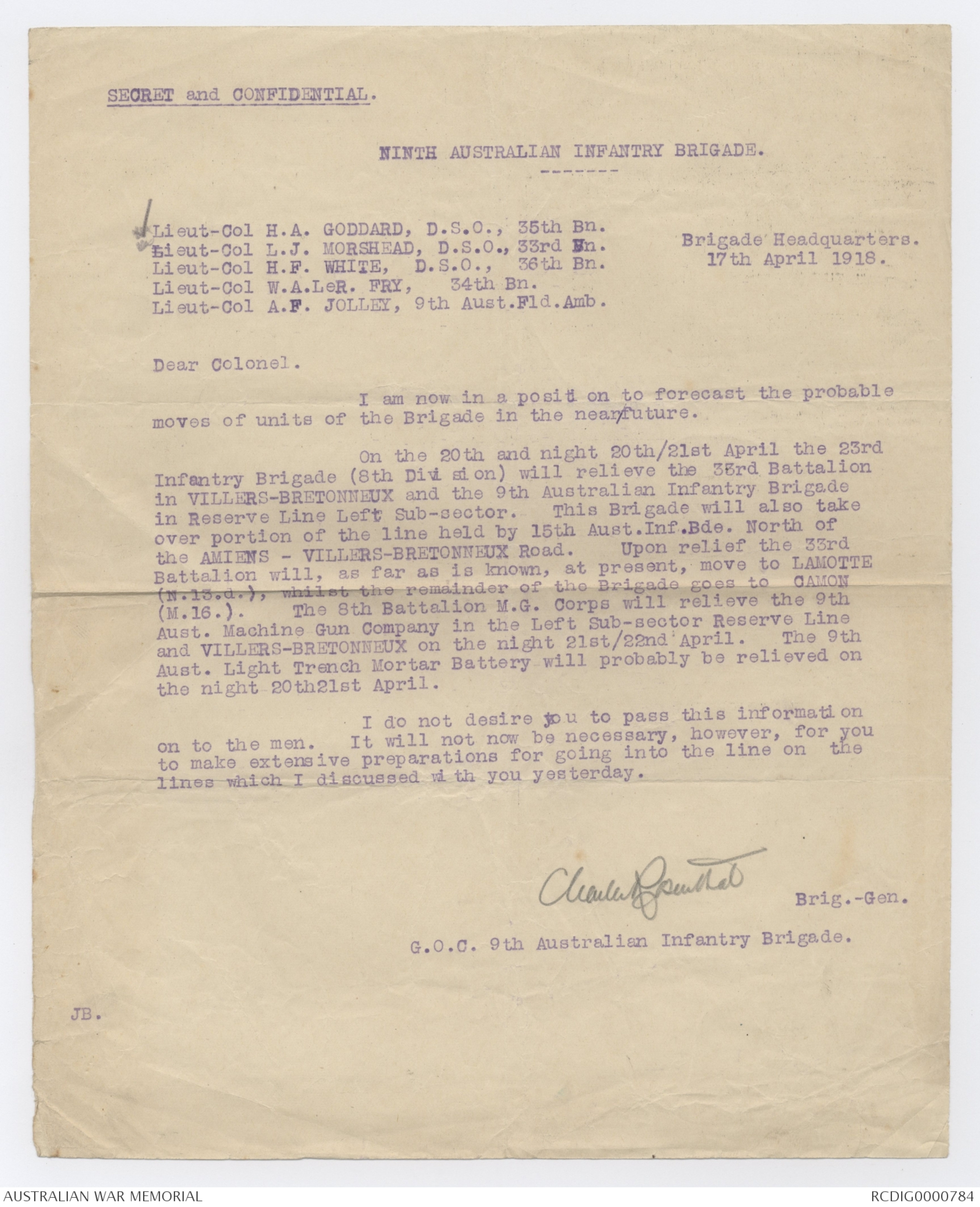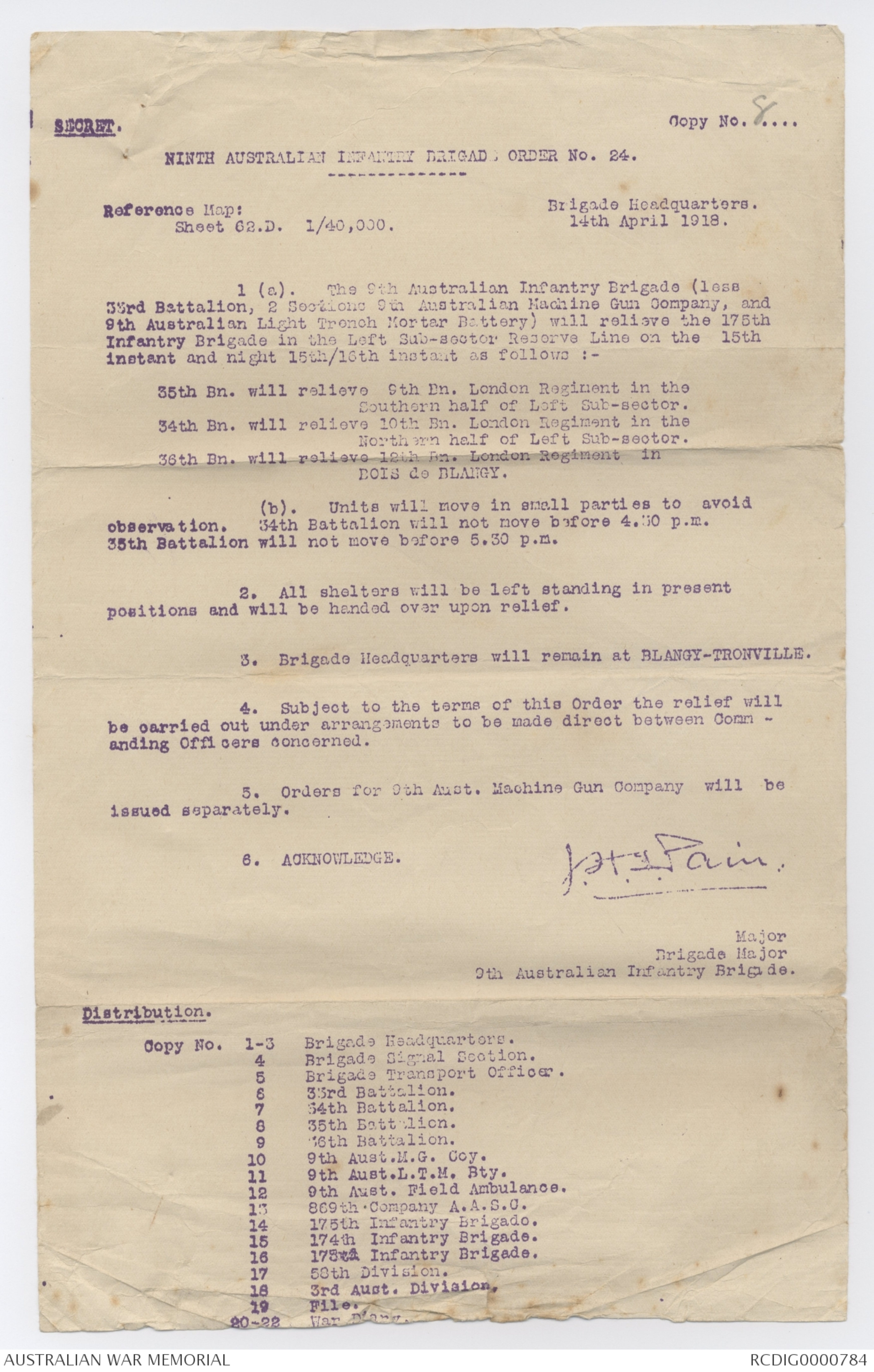 NINTH AUSTRALIAN INFANTRY BRIGADE ORDER No. 24.