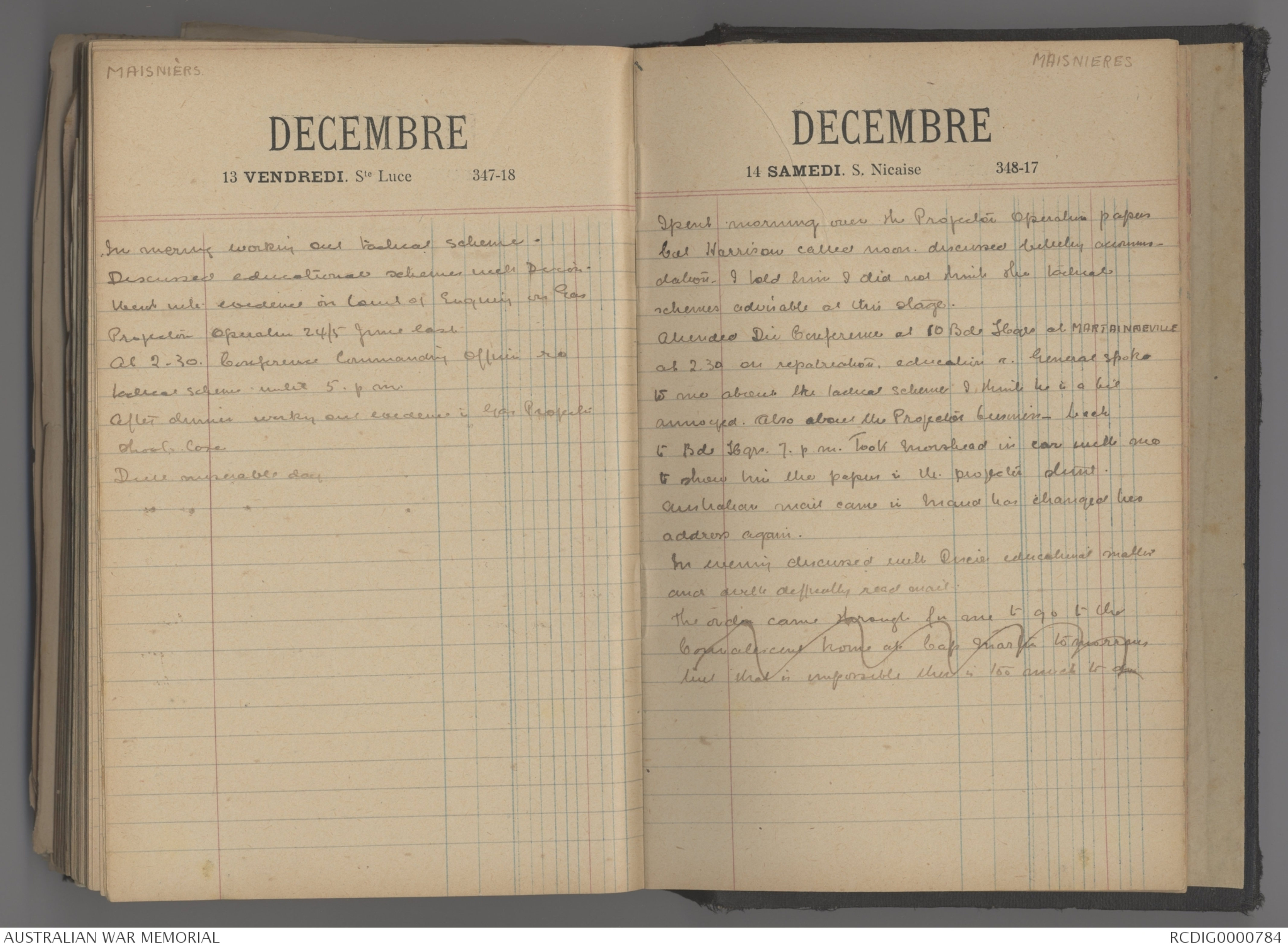 Attended Die Bereference at 10 Bde Hqrs at MARTAINNEVILLE
