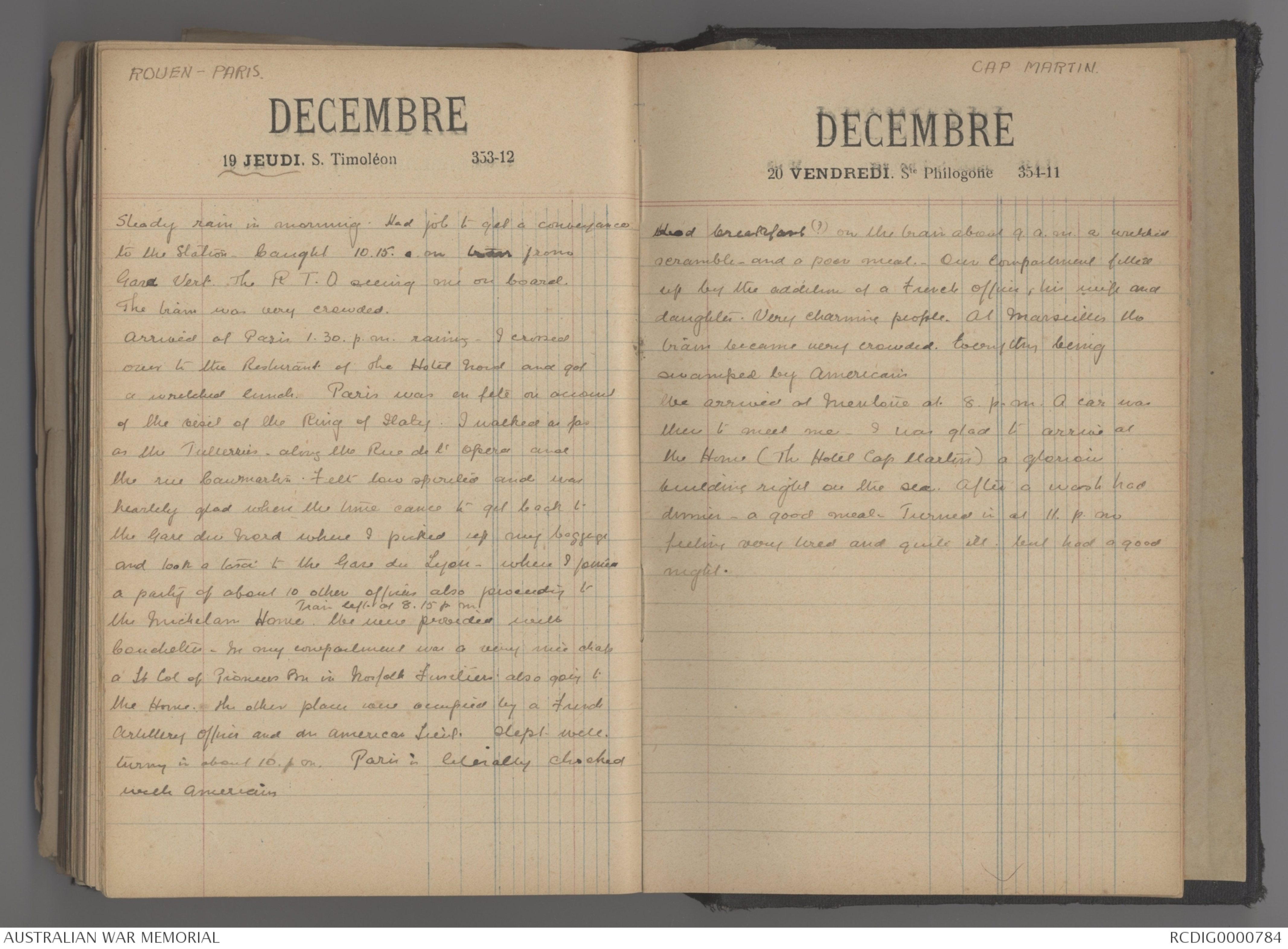 Arrived at Paris 1.30. p.m. raining. I crossed