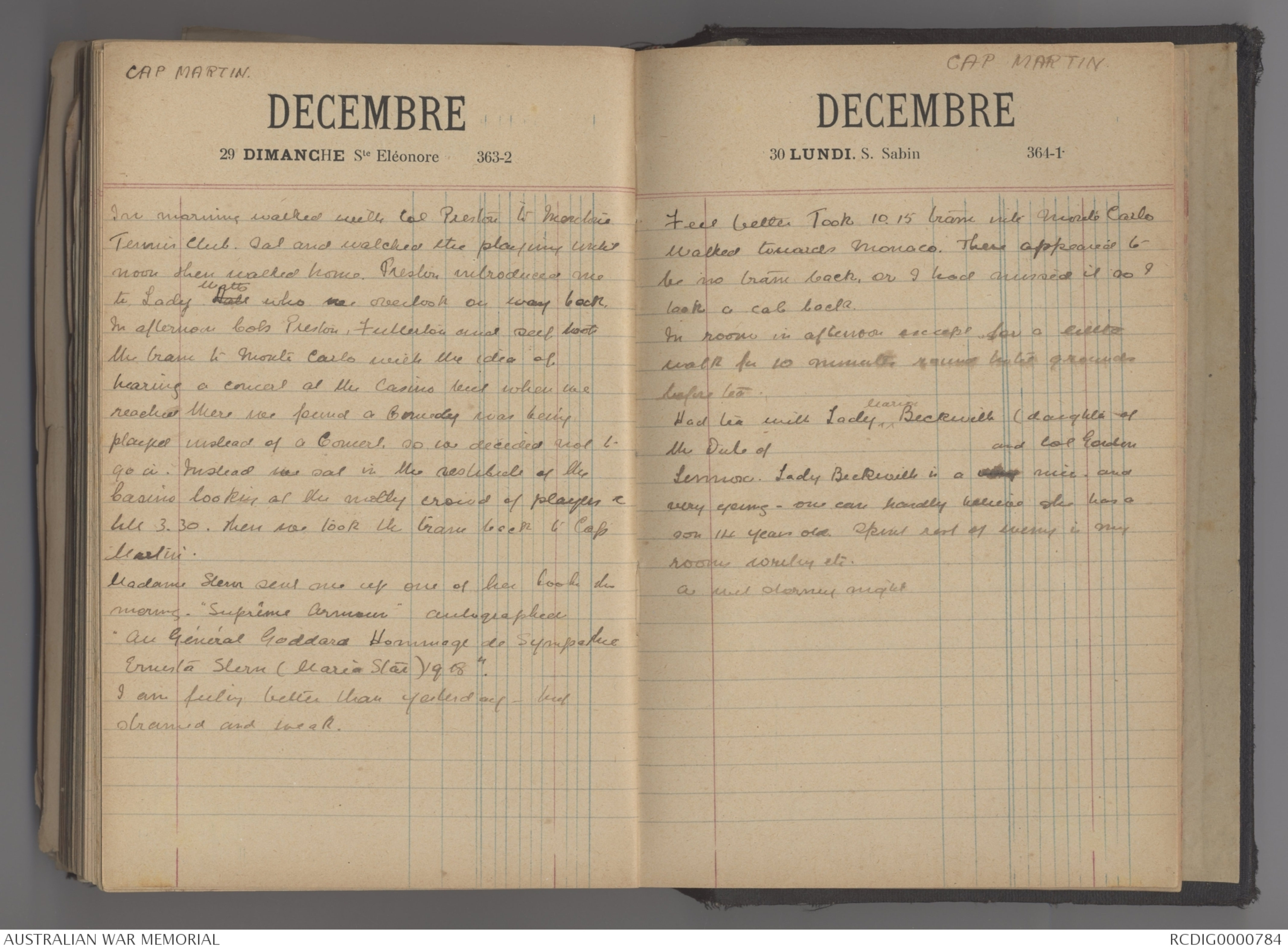 and with difficulty read mail.The order came through for me to go to theConvalescent home at Cap Martin tomorrowbut that is impossible there is too much to do