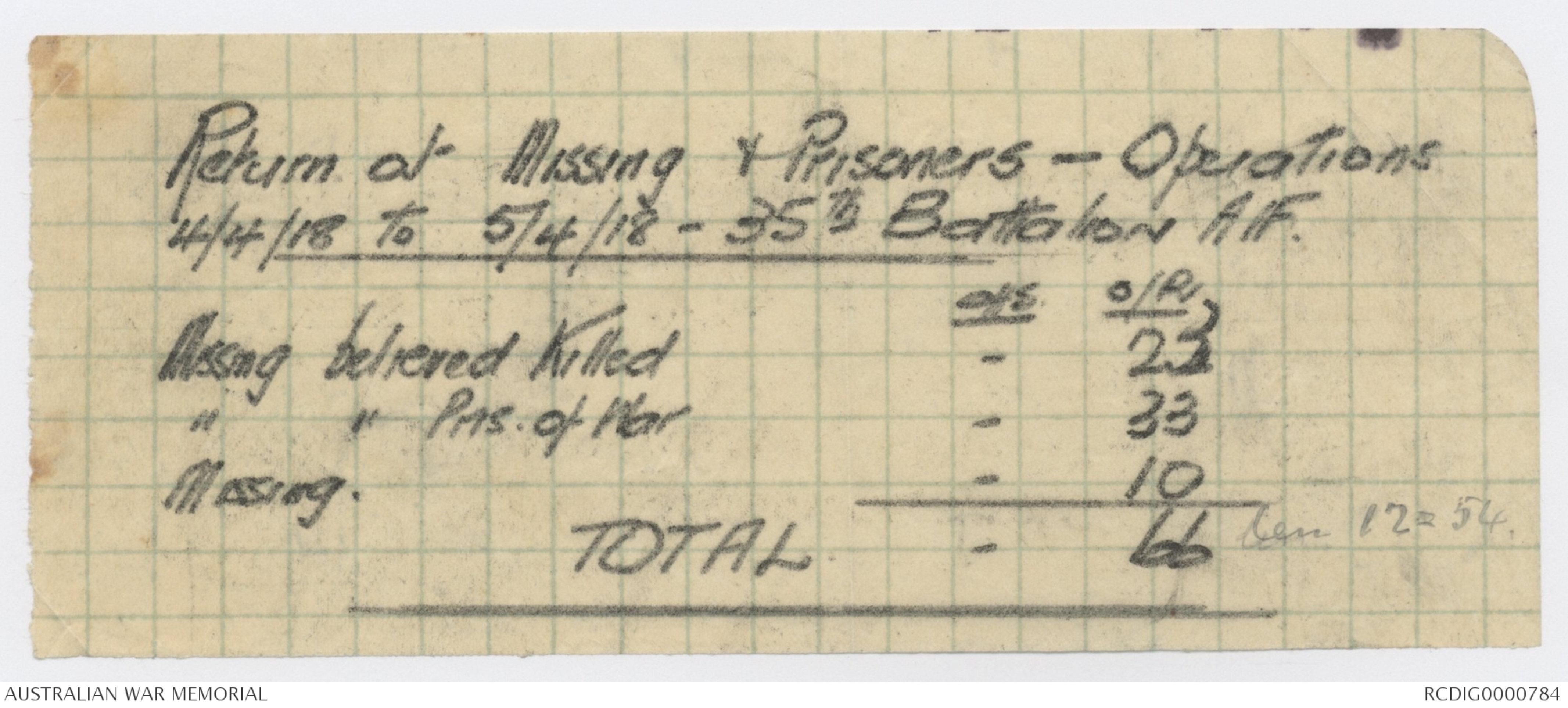 | 4/4/18 to 5/4/18 - 35th Battalion AIF. | |||