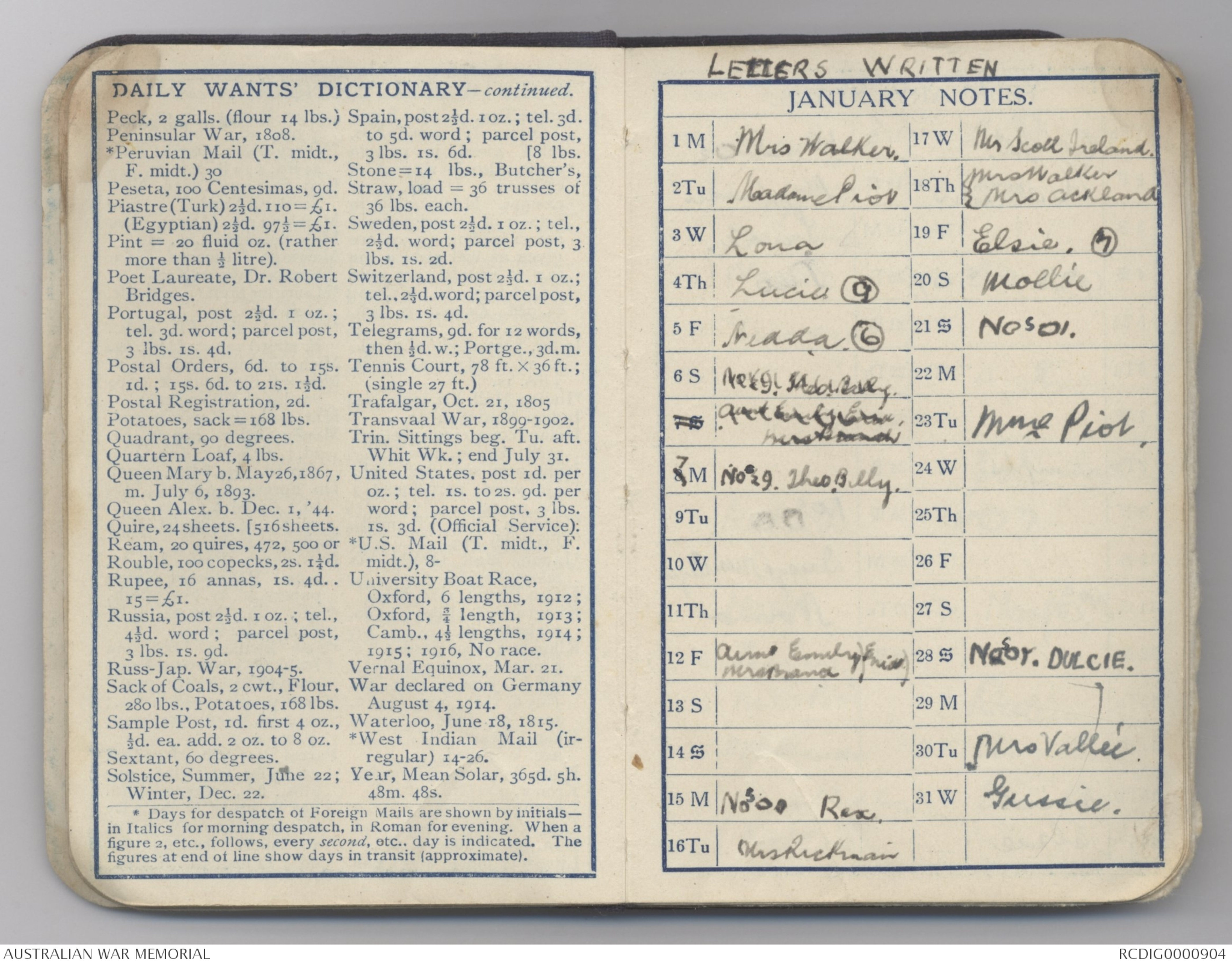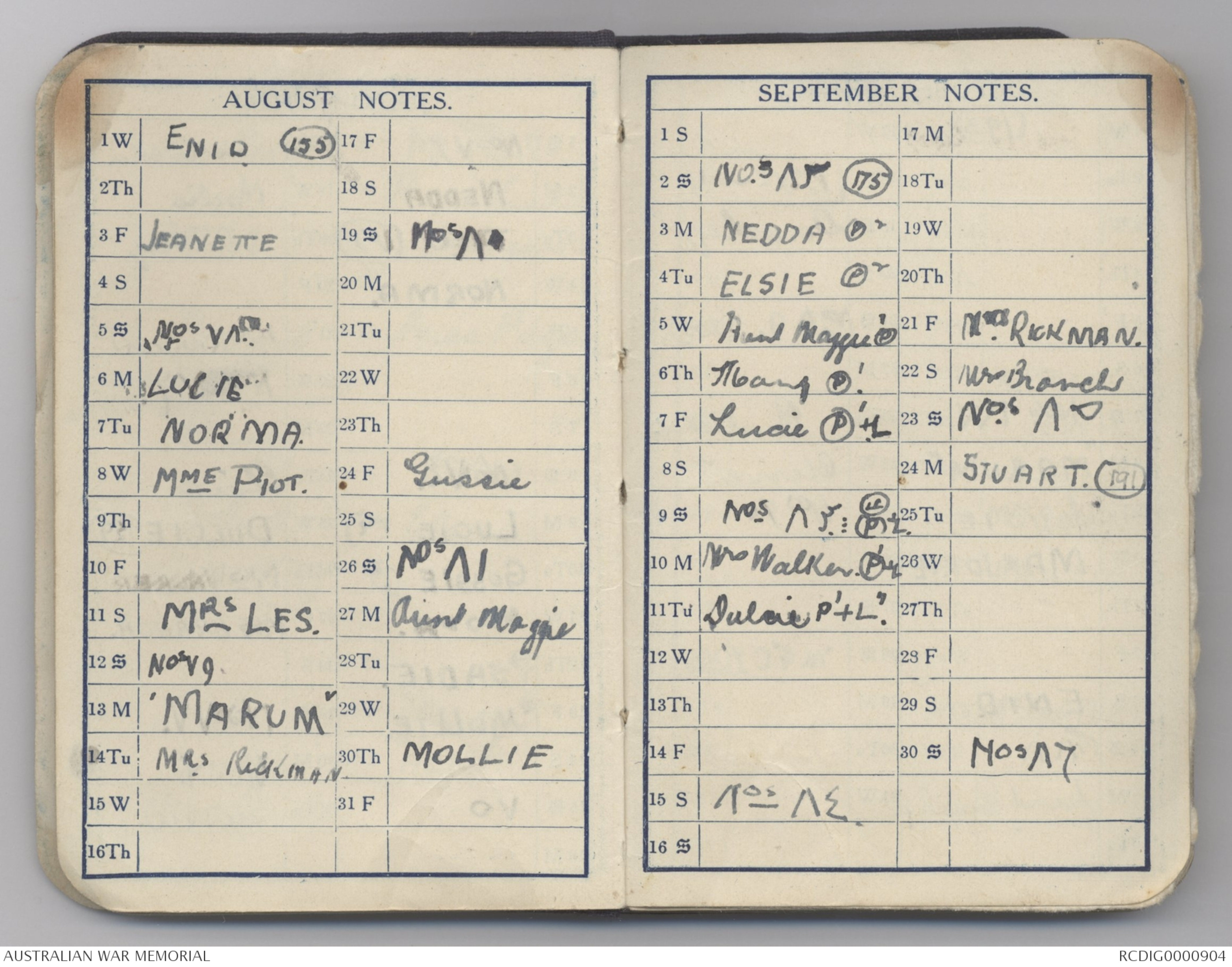 | 8 S | Nos [*shorthand*] | 24 Tu | Elsie |