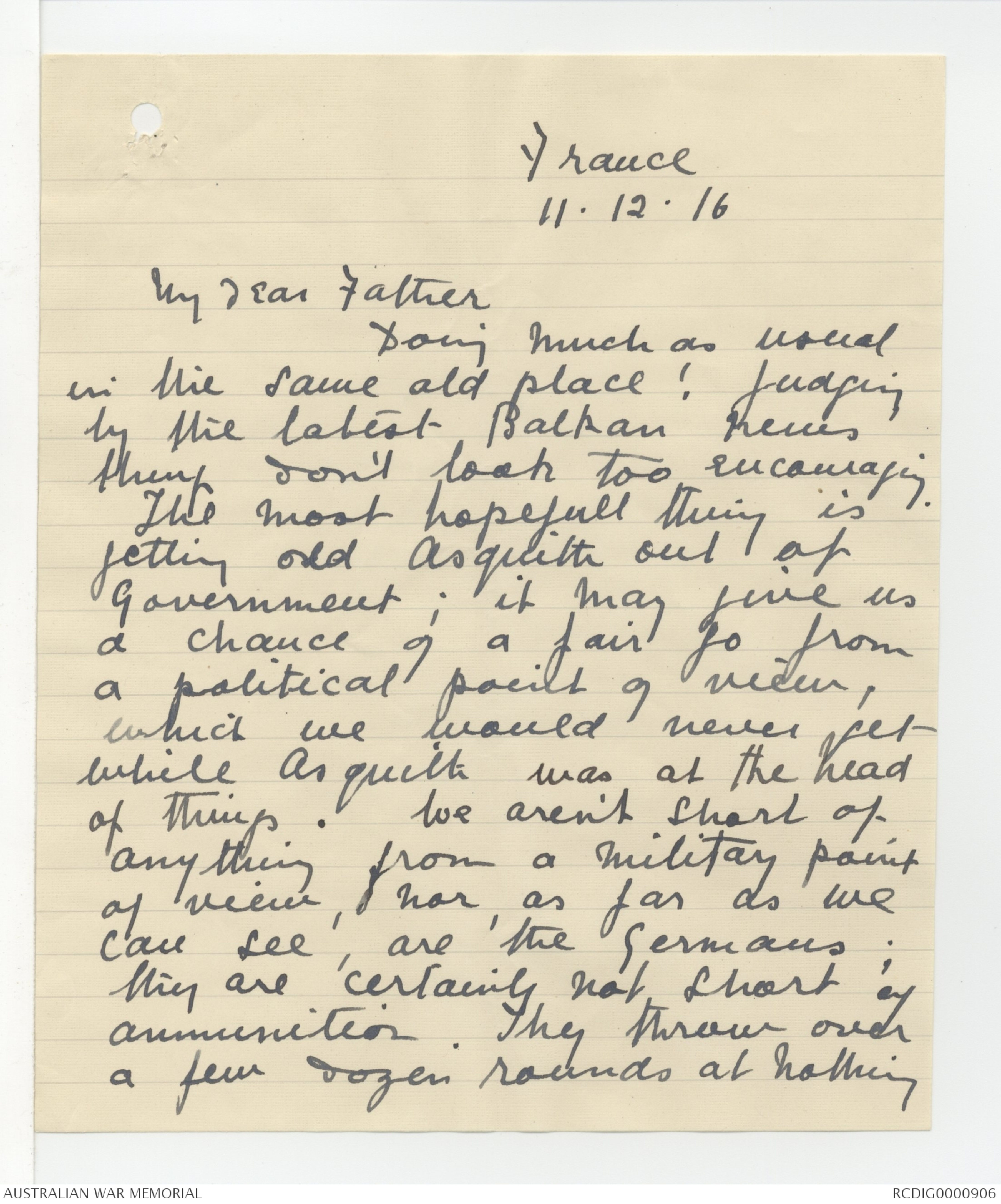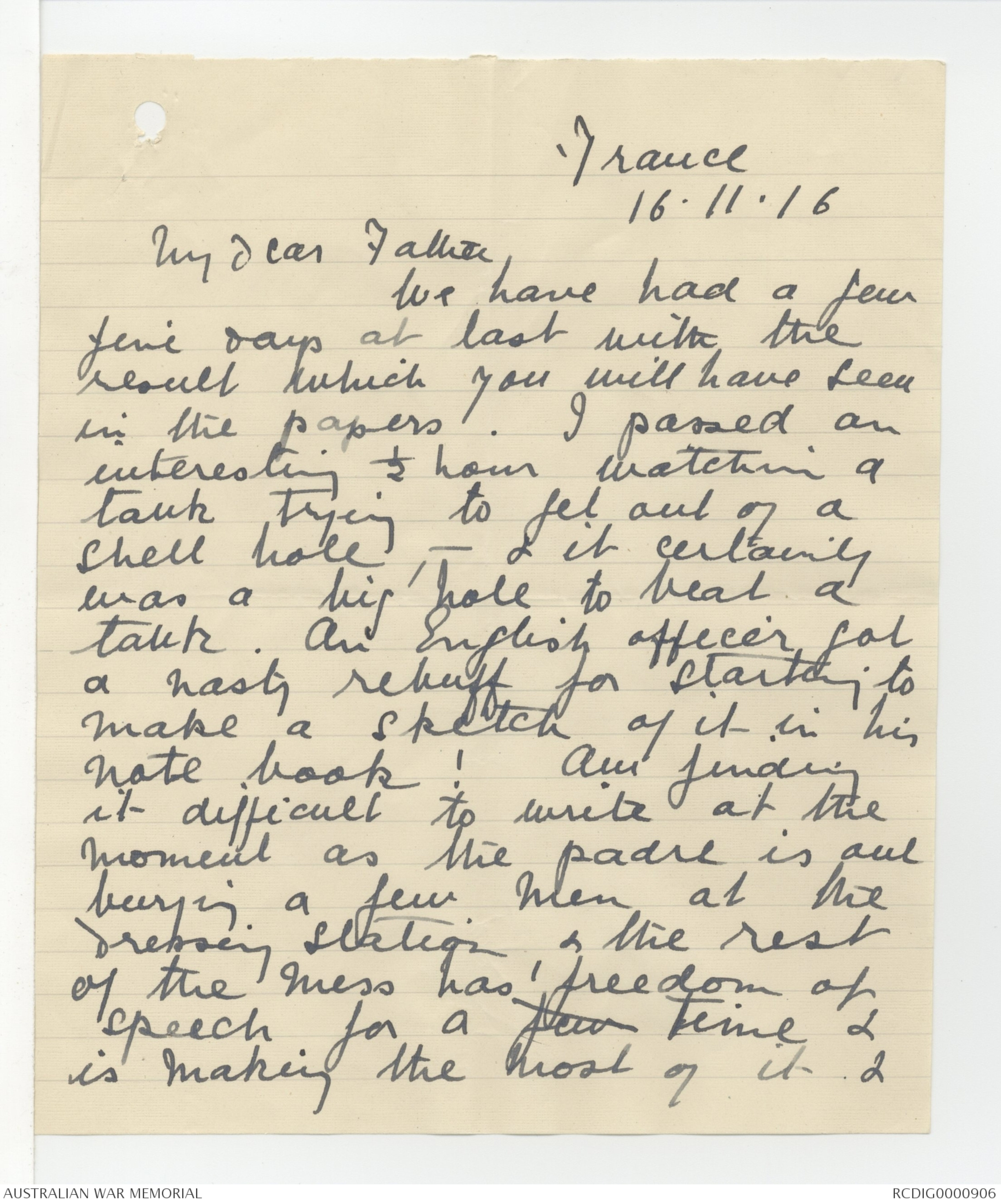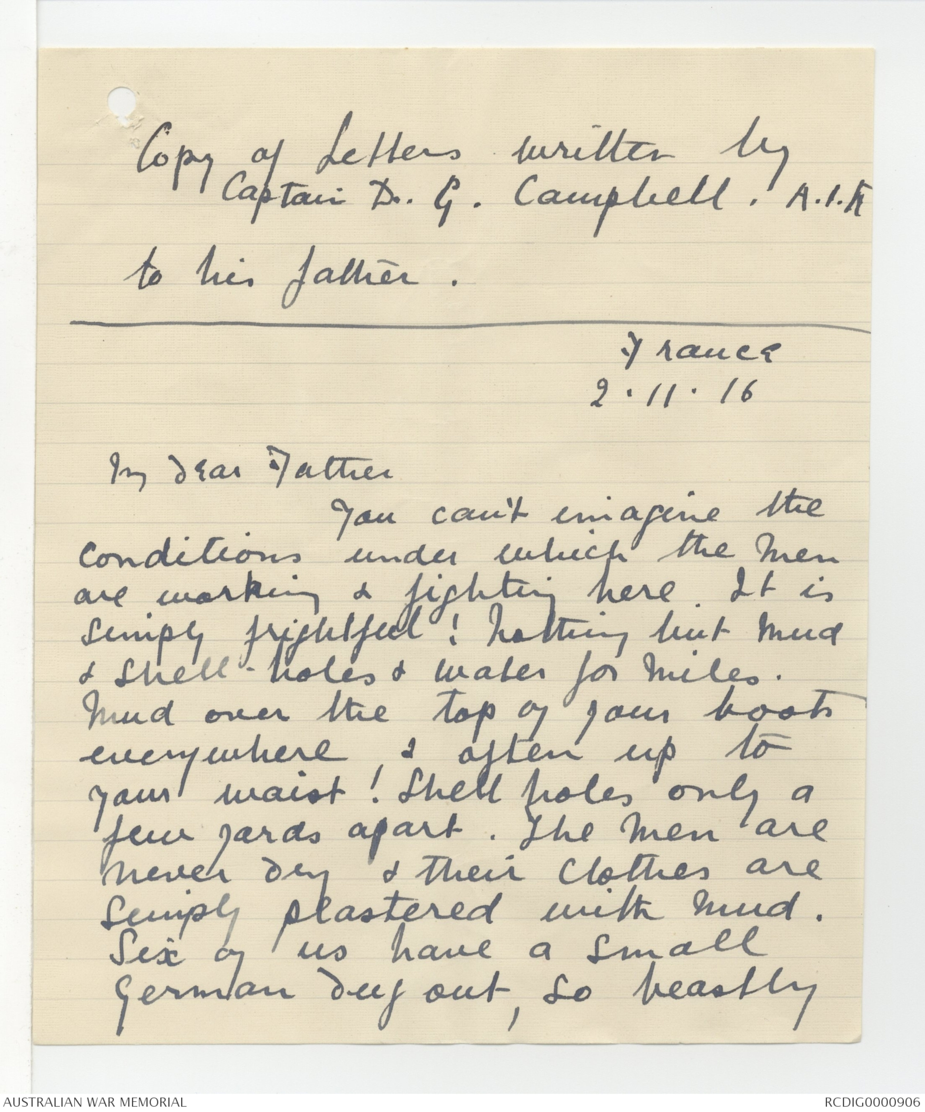 Transcribed letters from Douglas Gordon Campbell to his Father, 1915-1917 - Part 1