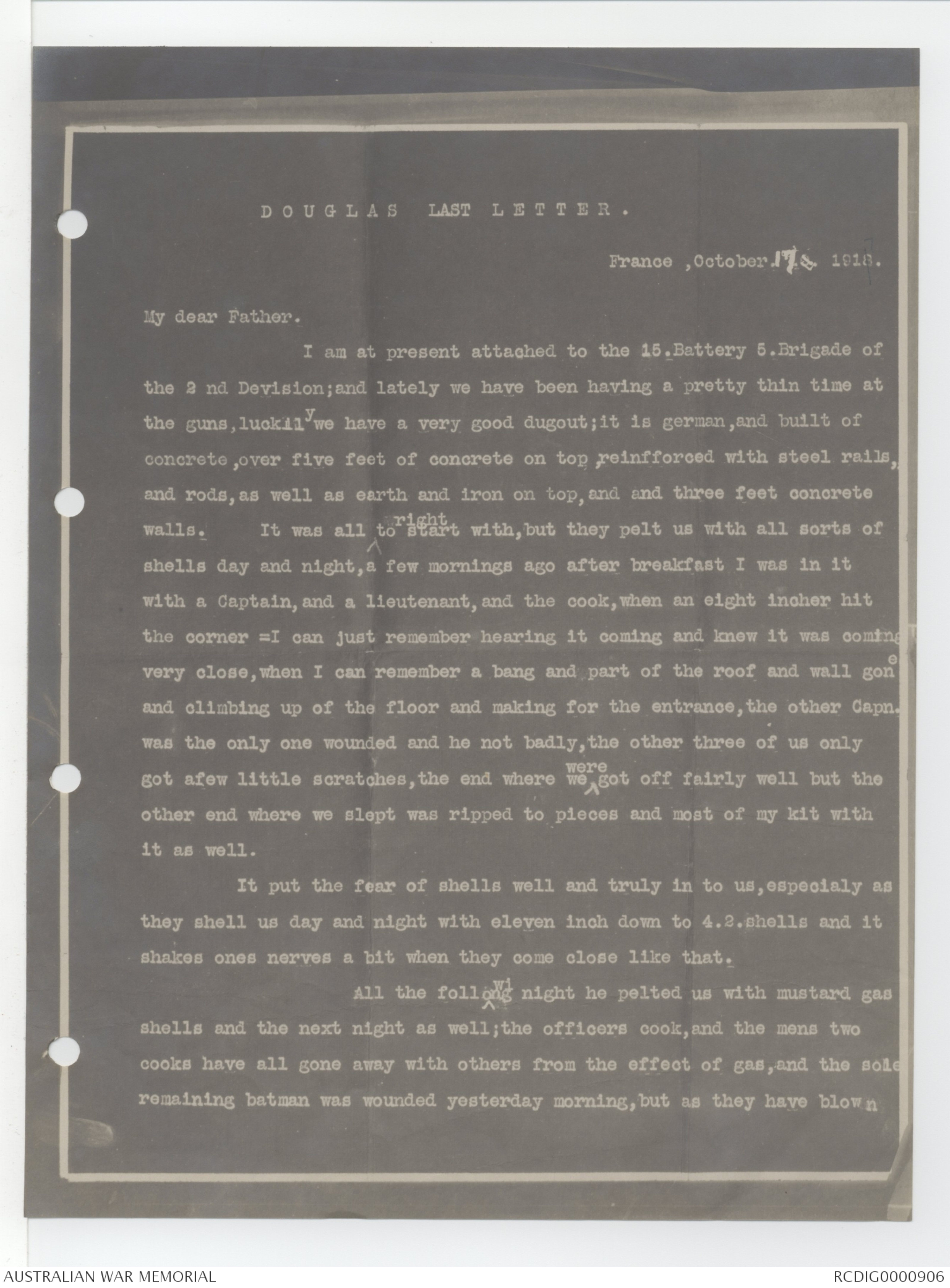 Transcribed letters from Douglas Gordon Campbell to his Father, 1915-1917 - Part 2