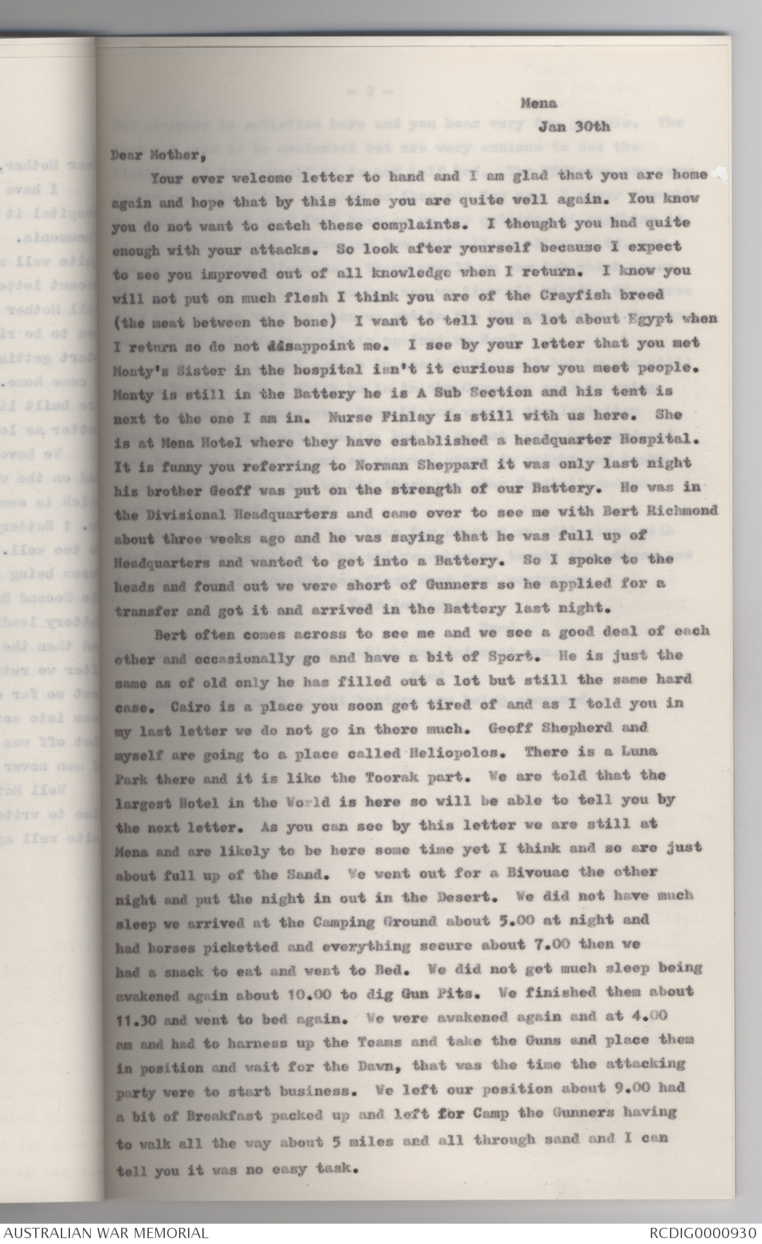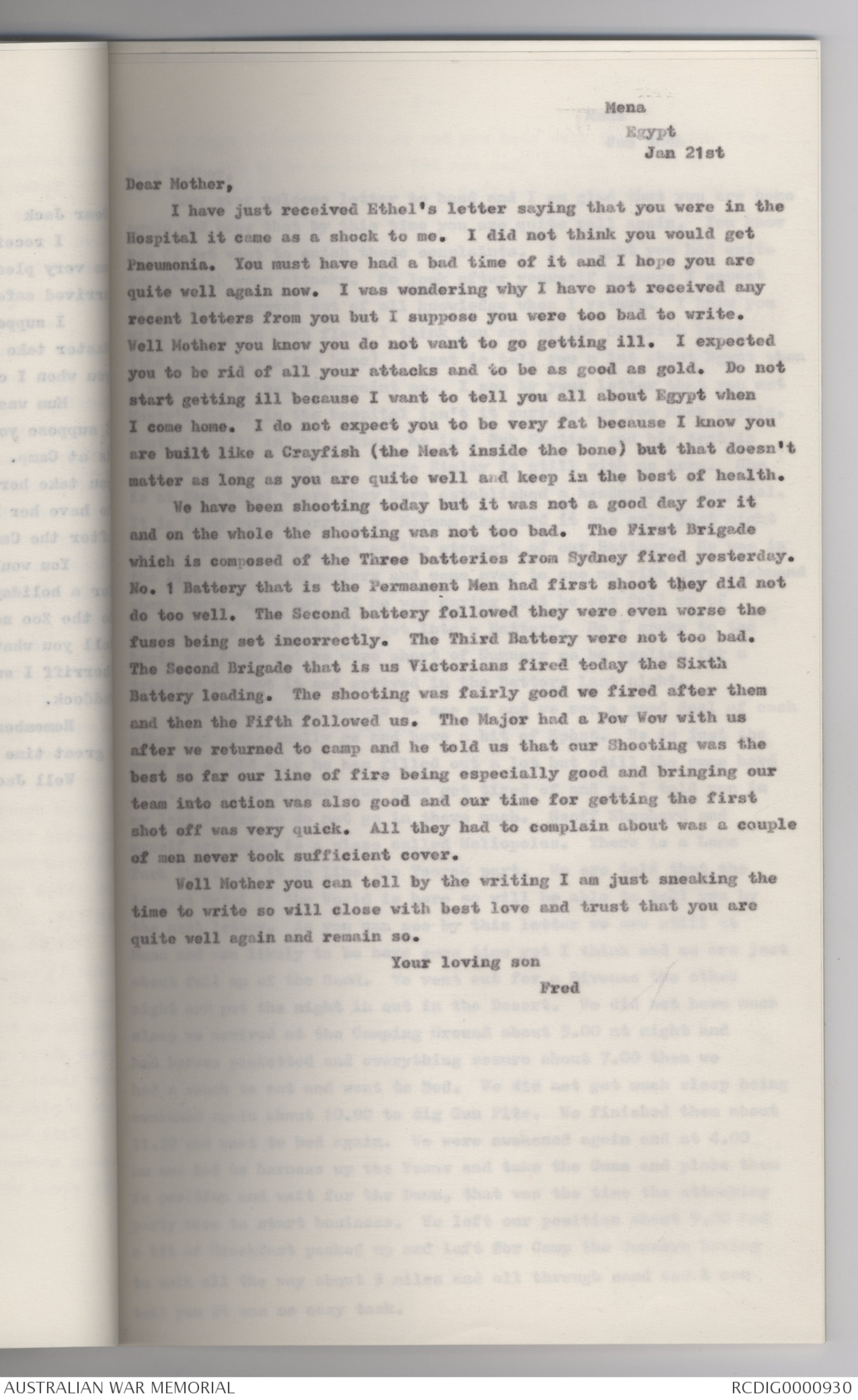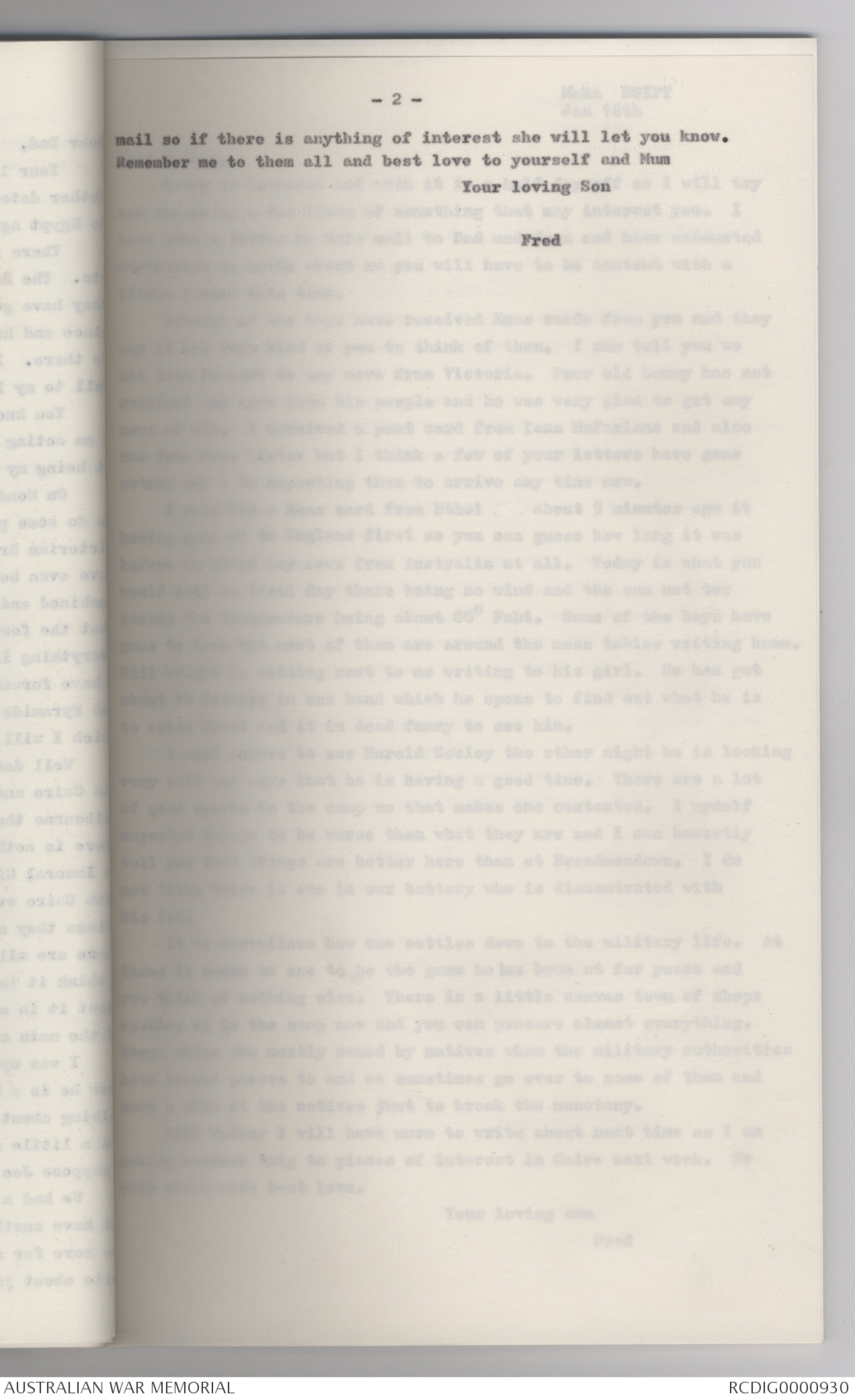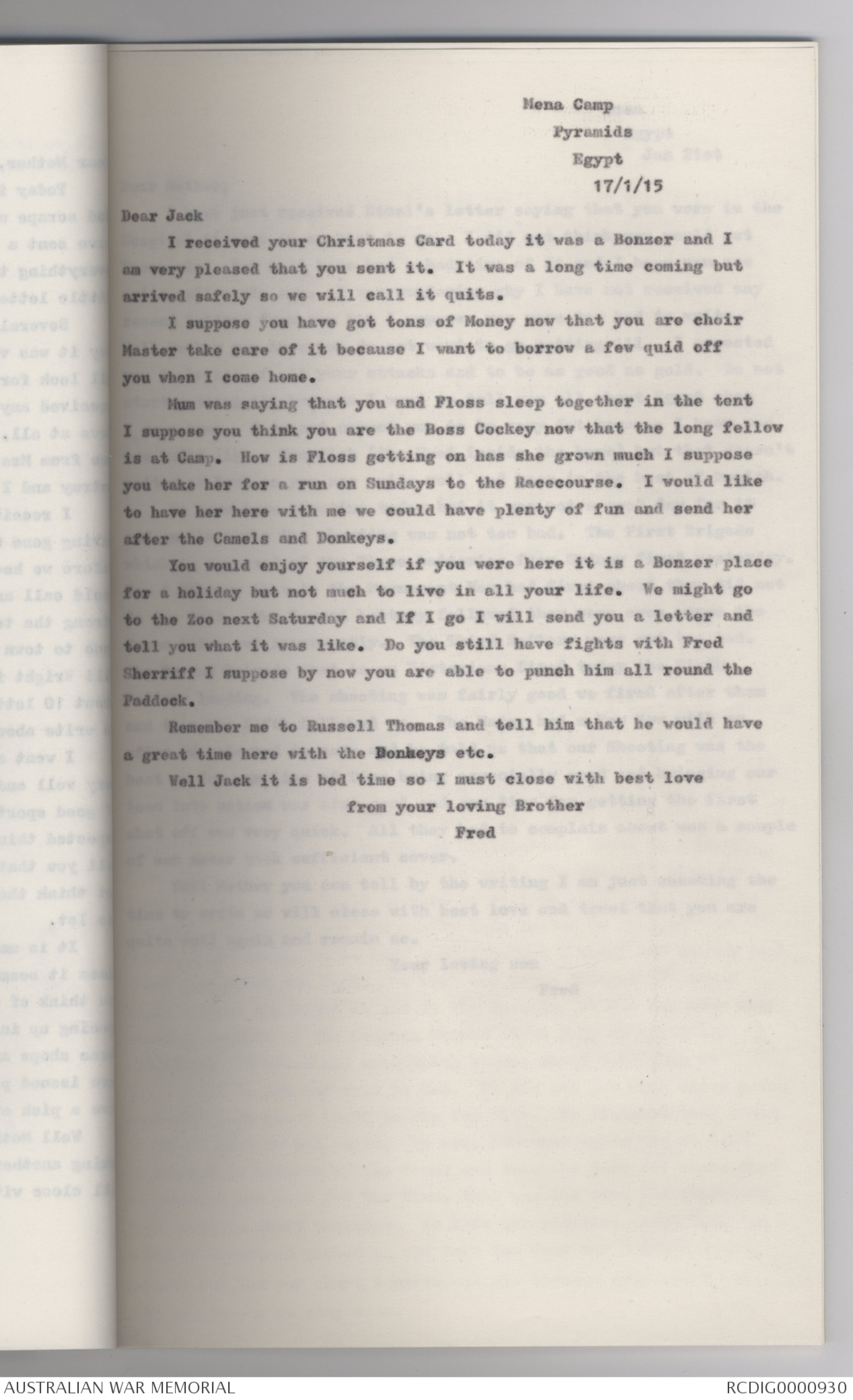 Typed copy of letters from Frederick William Rowe to his family, 1914-1915 - Part 2